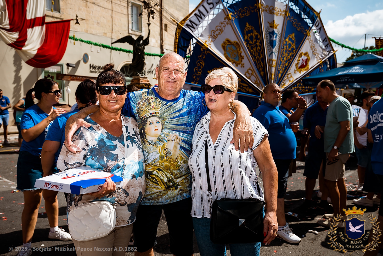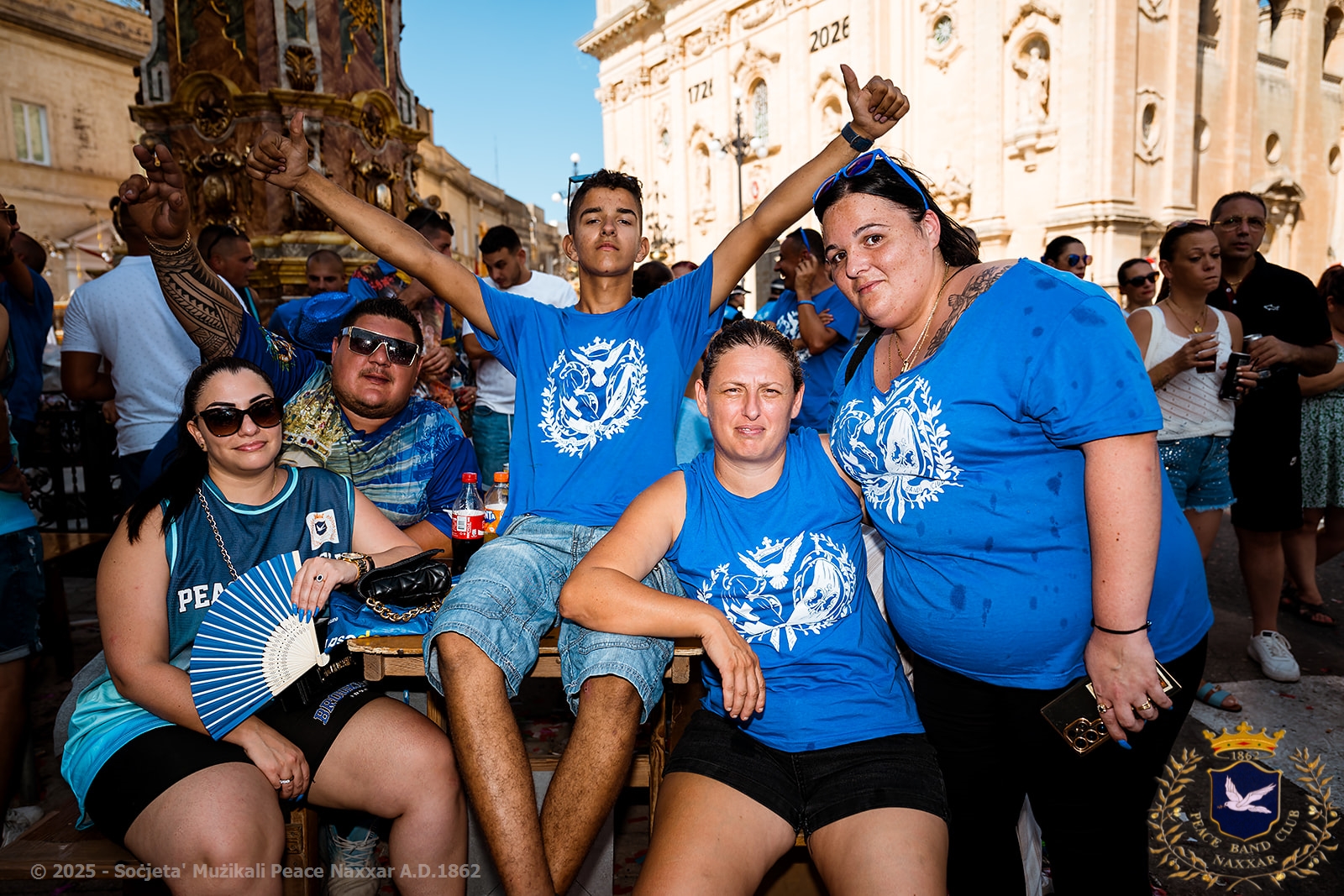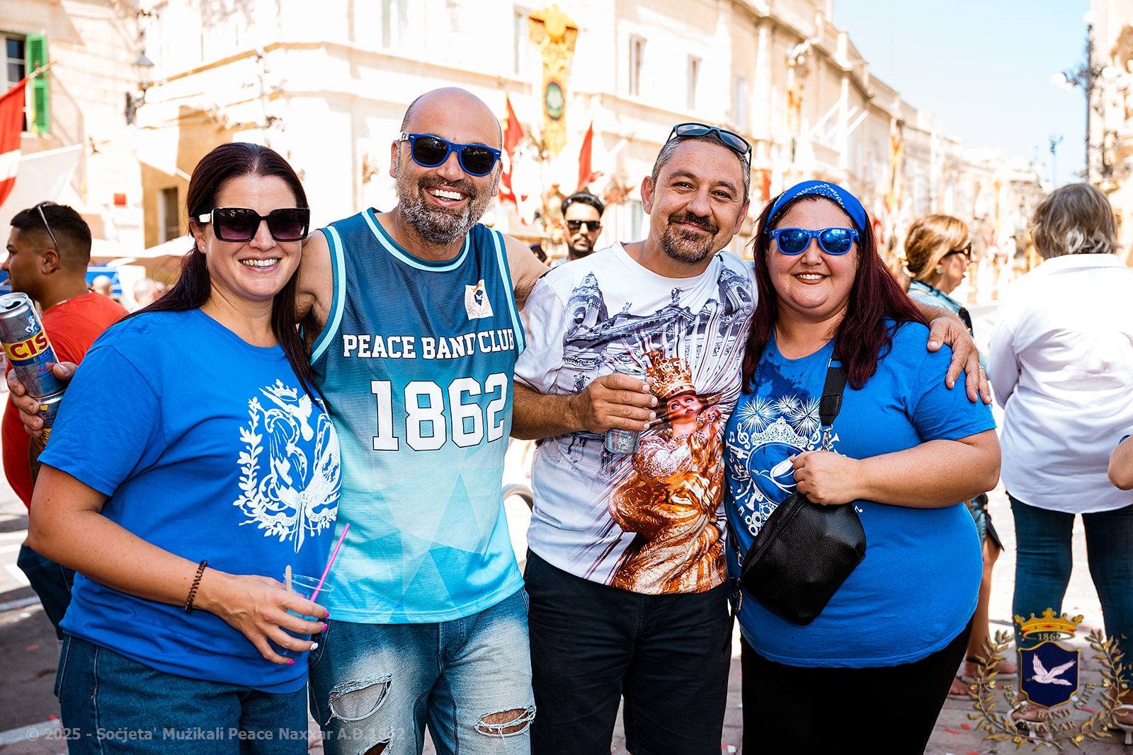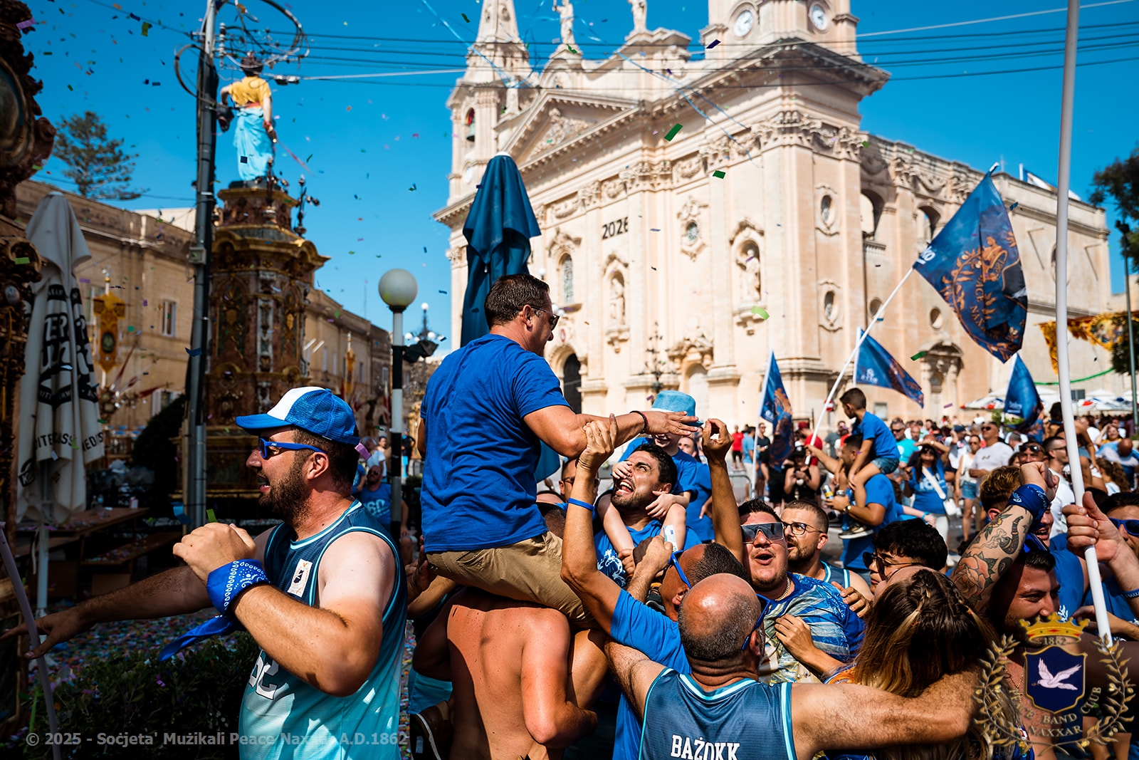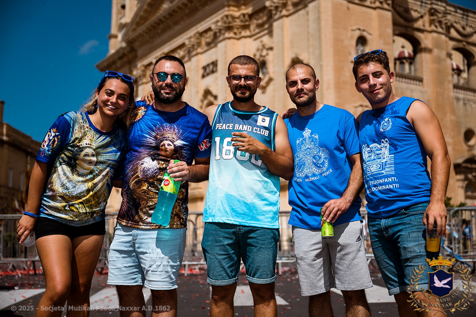 Nhar it-8 ta' Settembru filgħodu f'jum il-Festa ta' Marija Bambina ġewwa l-Pjazza Naxxarijja fost il-ferħ tal-partitarji tas-Soċjeta' Mużikali Peace.