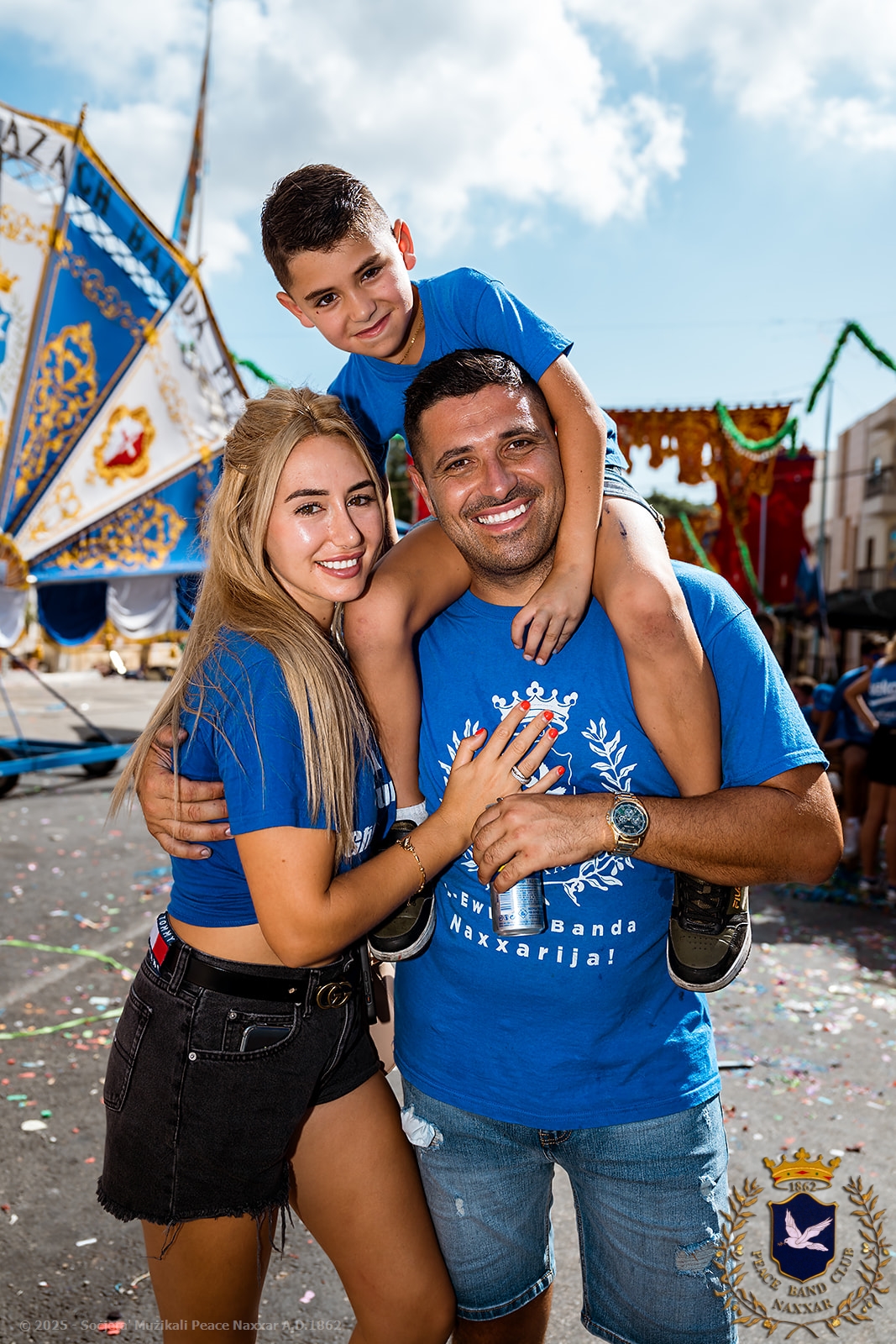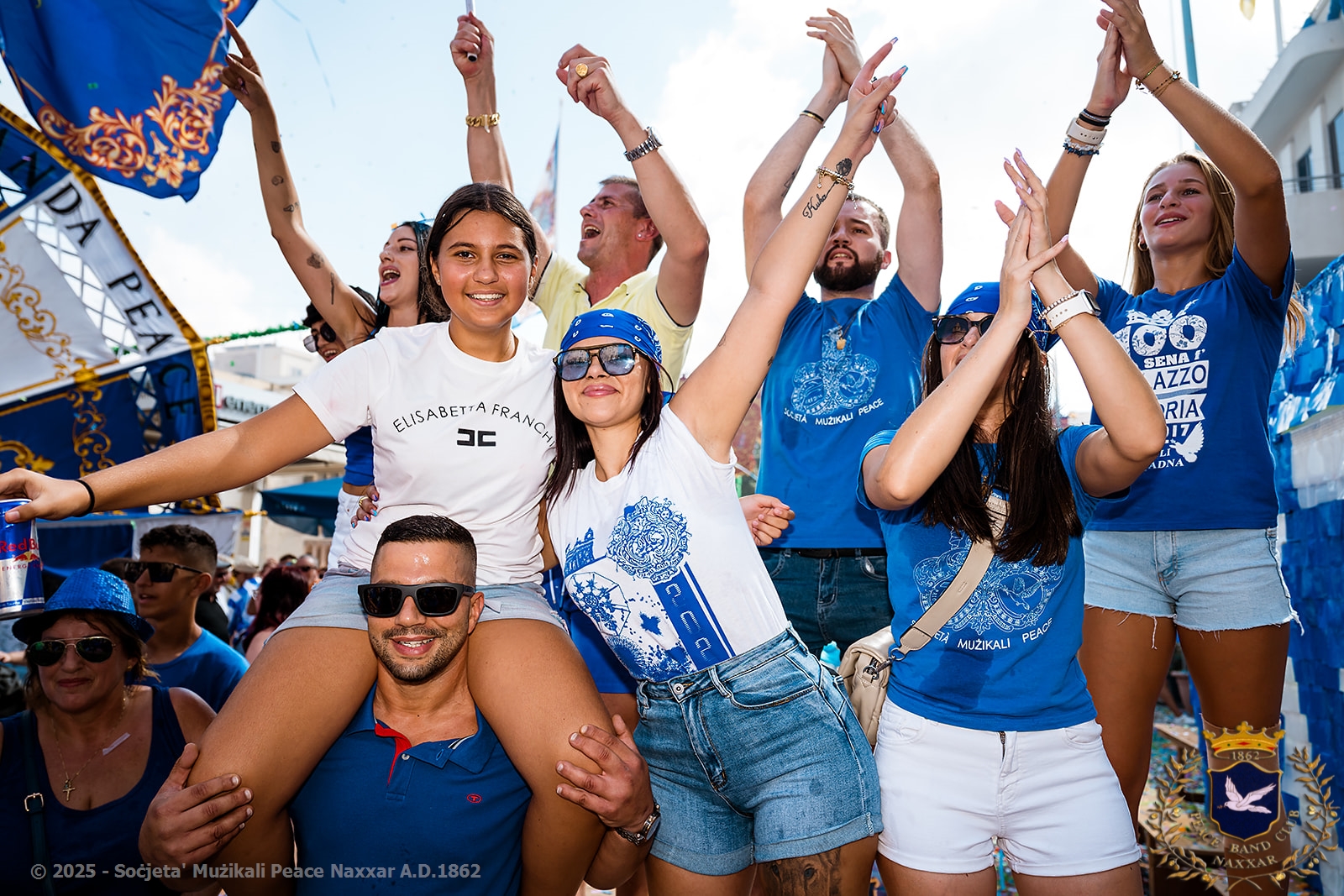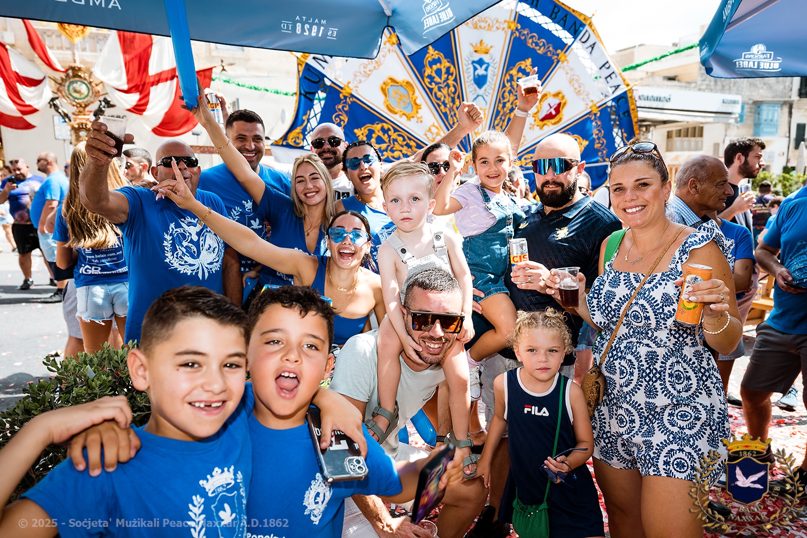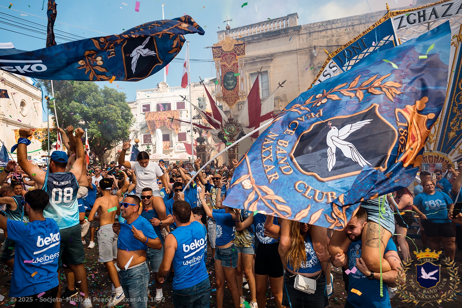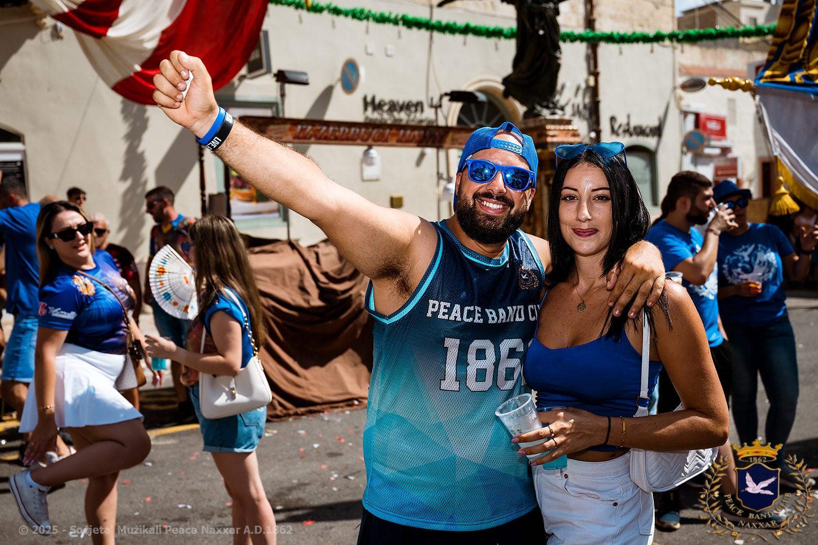 Nhar it-8 ta' Settembru filgħodu f'jum il-Festa ta' Marija Bambina ġewwa l-Pjazza Naxxarijja fost il-ferħ tal-partitarji tas-Soċjeta' Mużikali Peace.