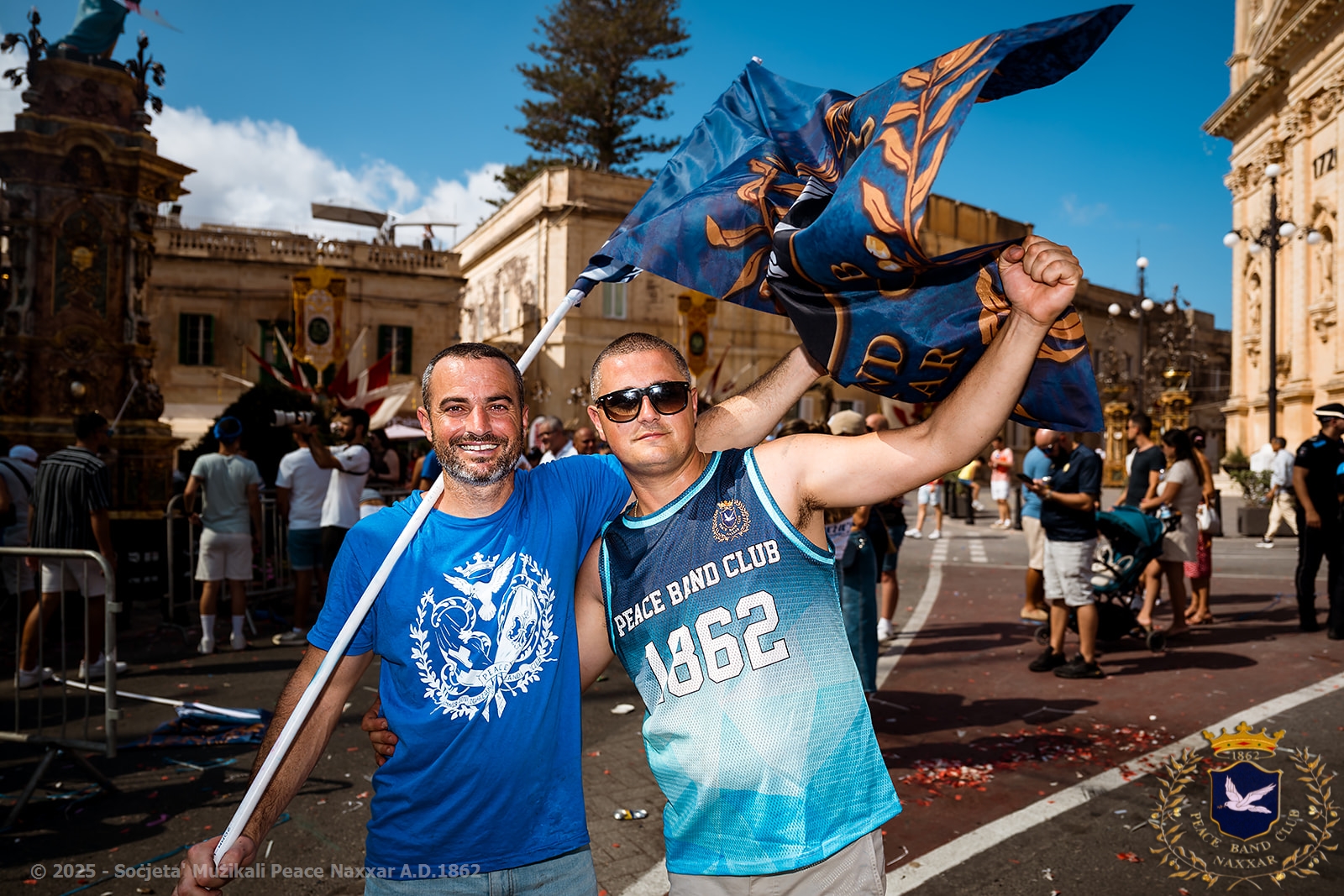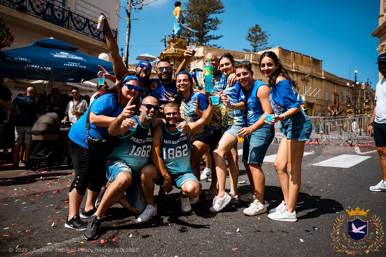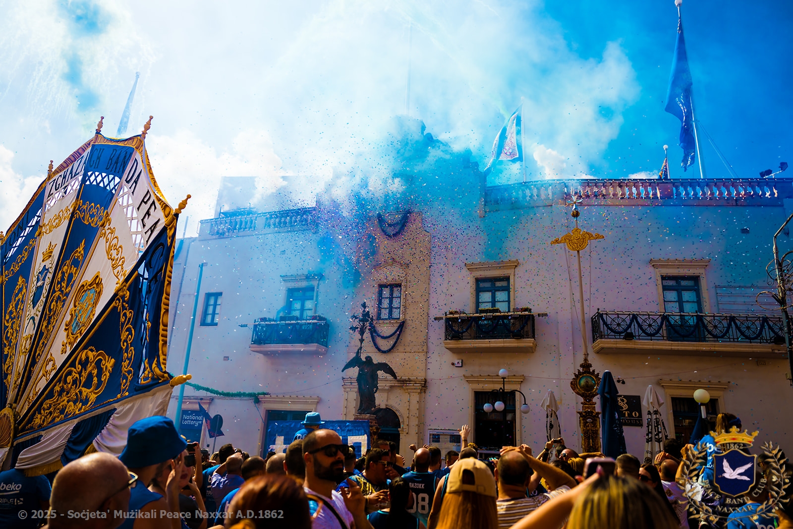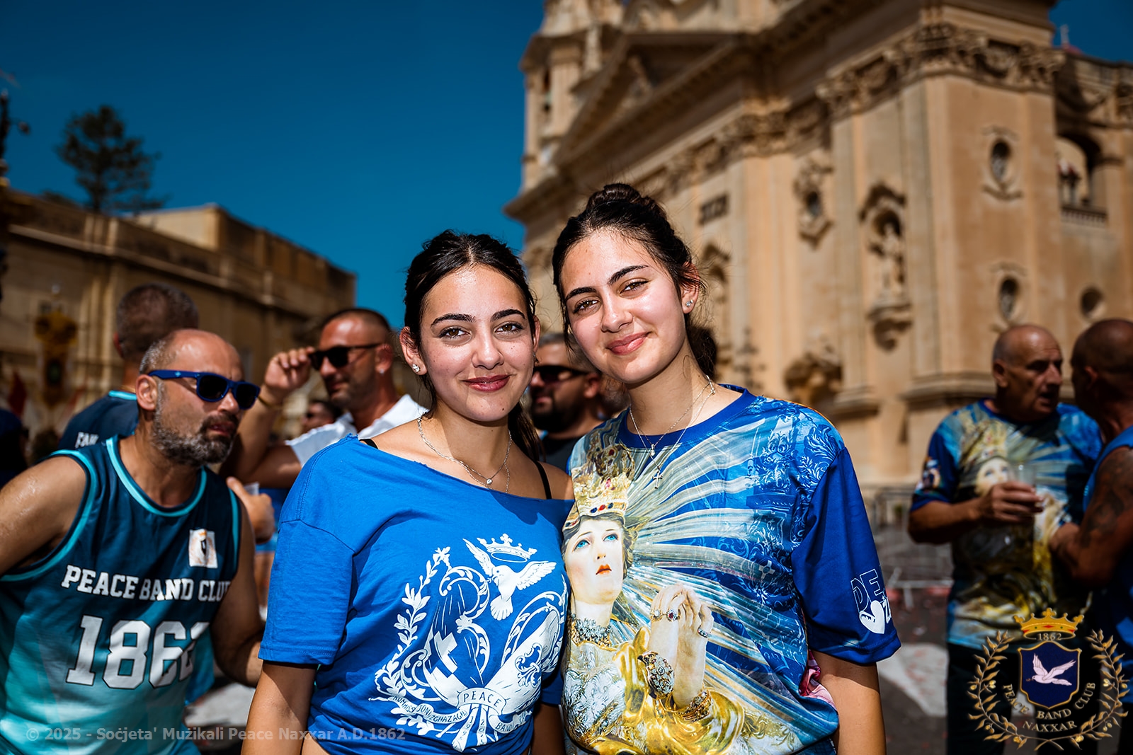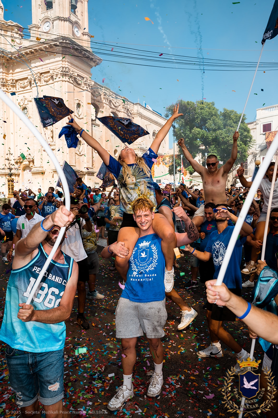 Nhar it-8 ta' Settembru filgħodu f'jum il-Festa ta' Marija Bambina ġewwa l-Pjazza Naxxarijja fost il-ferħ tal-partitarji tas-Soċjeta' Mużikali Peace.