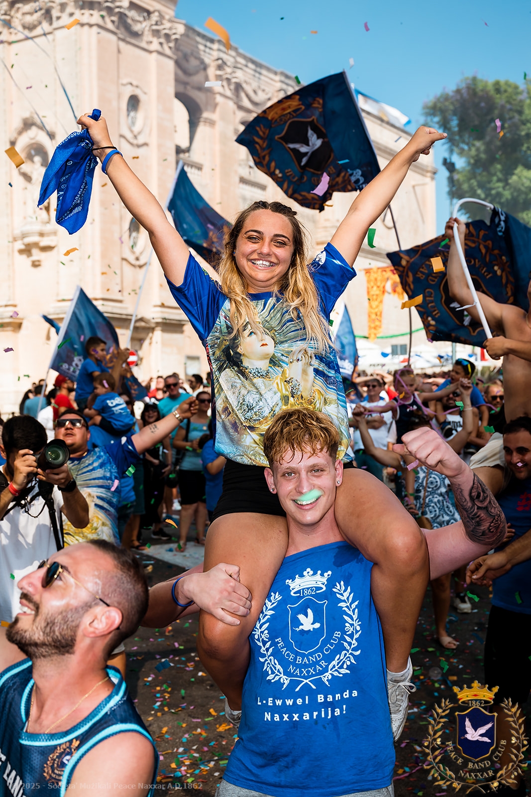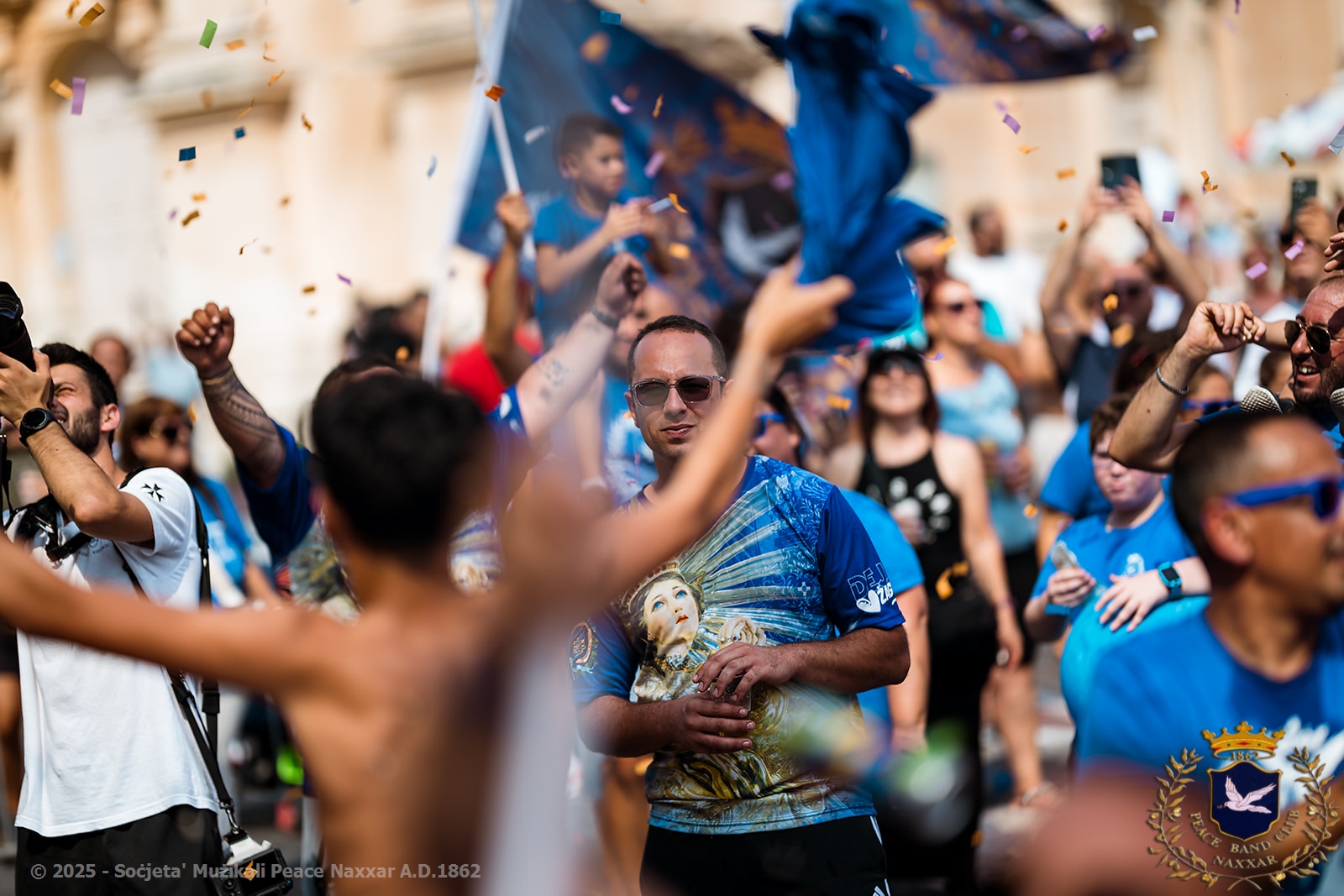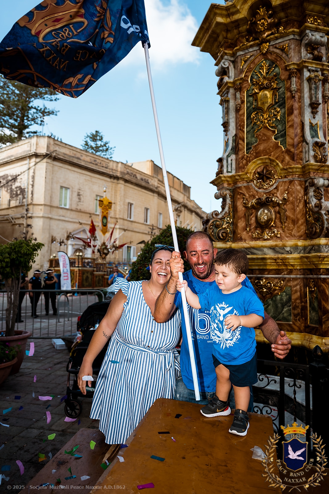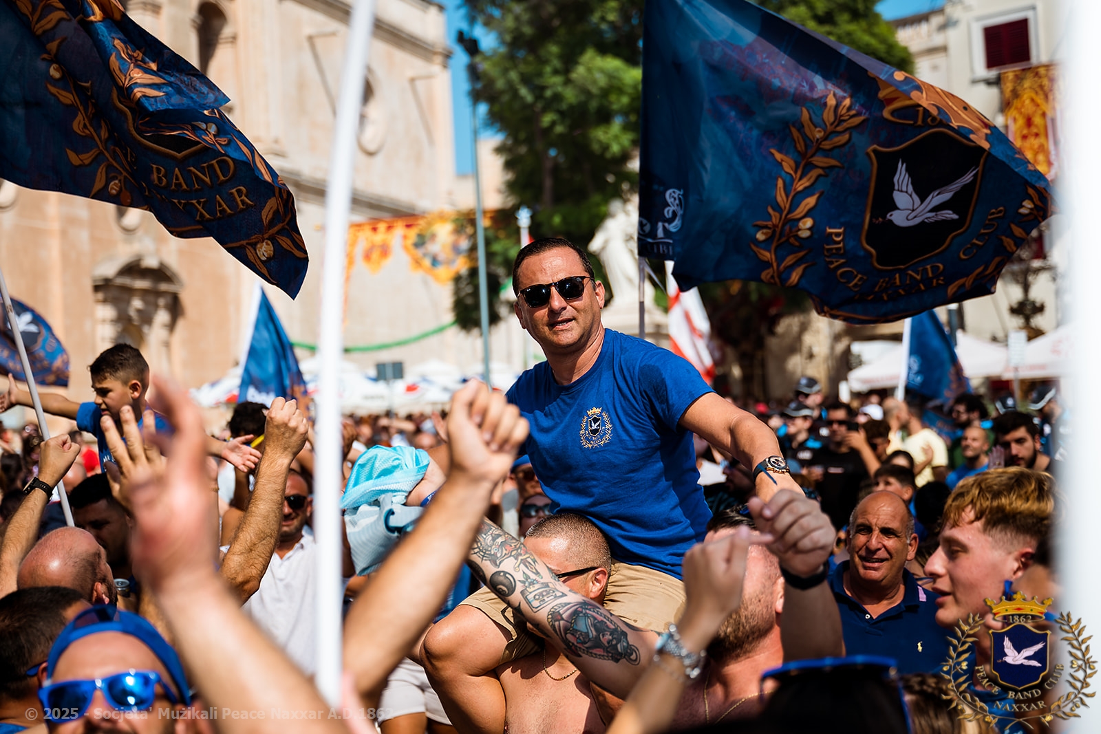 Nhar it-8 ta' Settembru filgħodu f'jum il-Festa ta' Marija Bambina ġewwa l-Pjazza Naxxarijja fost il-ferħ tal-partitarji tas-Soċjeta' Mużikali Peace.