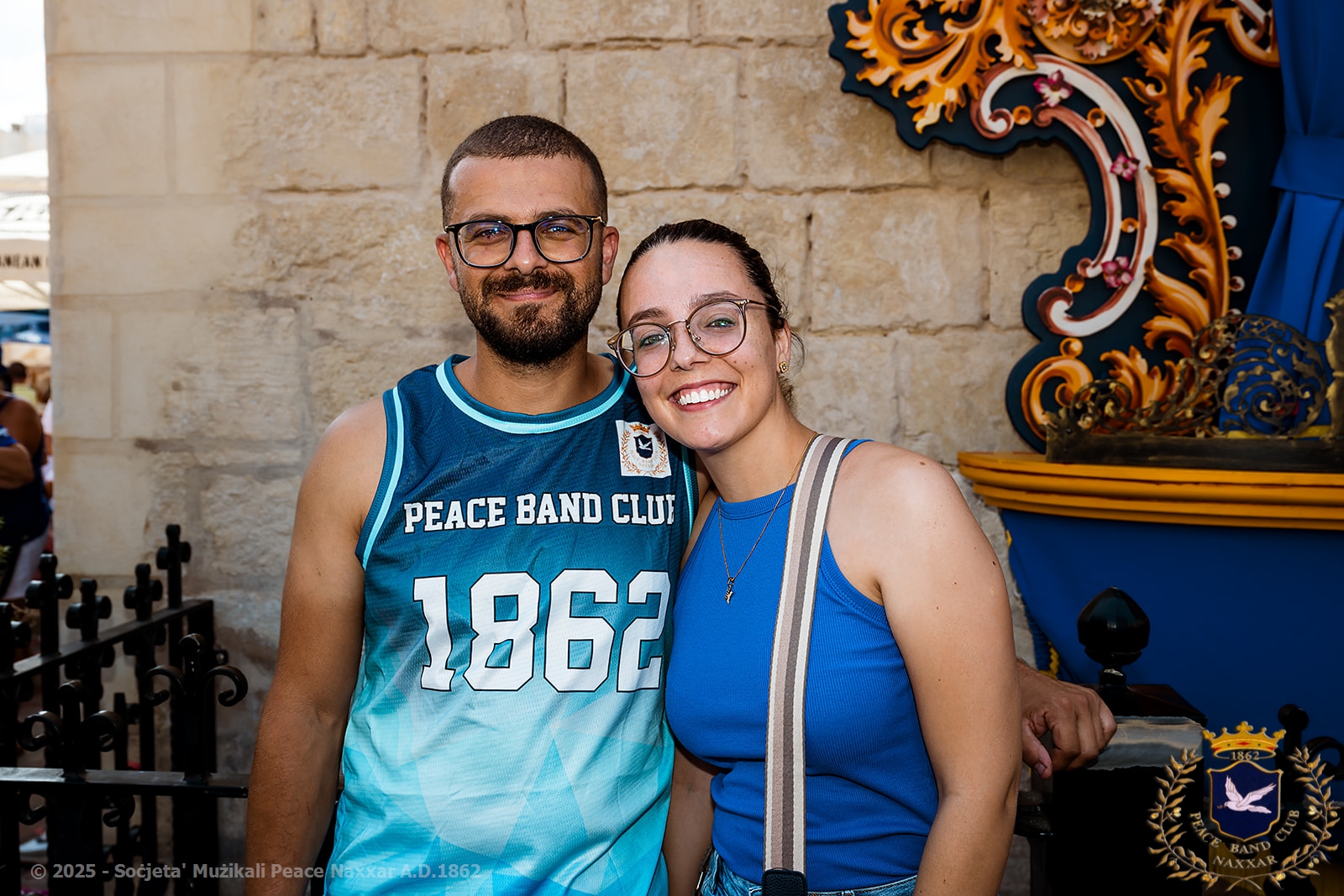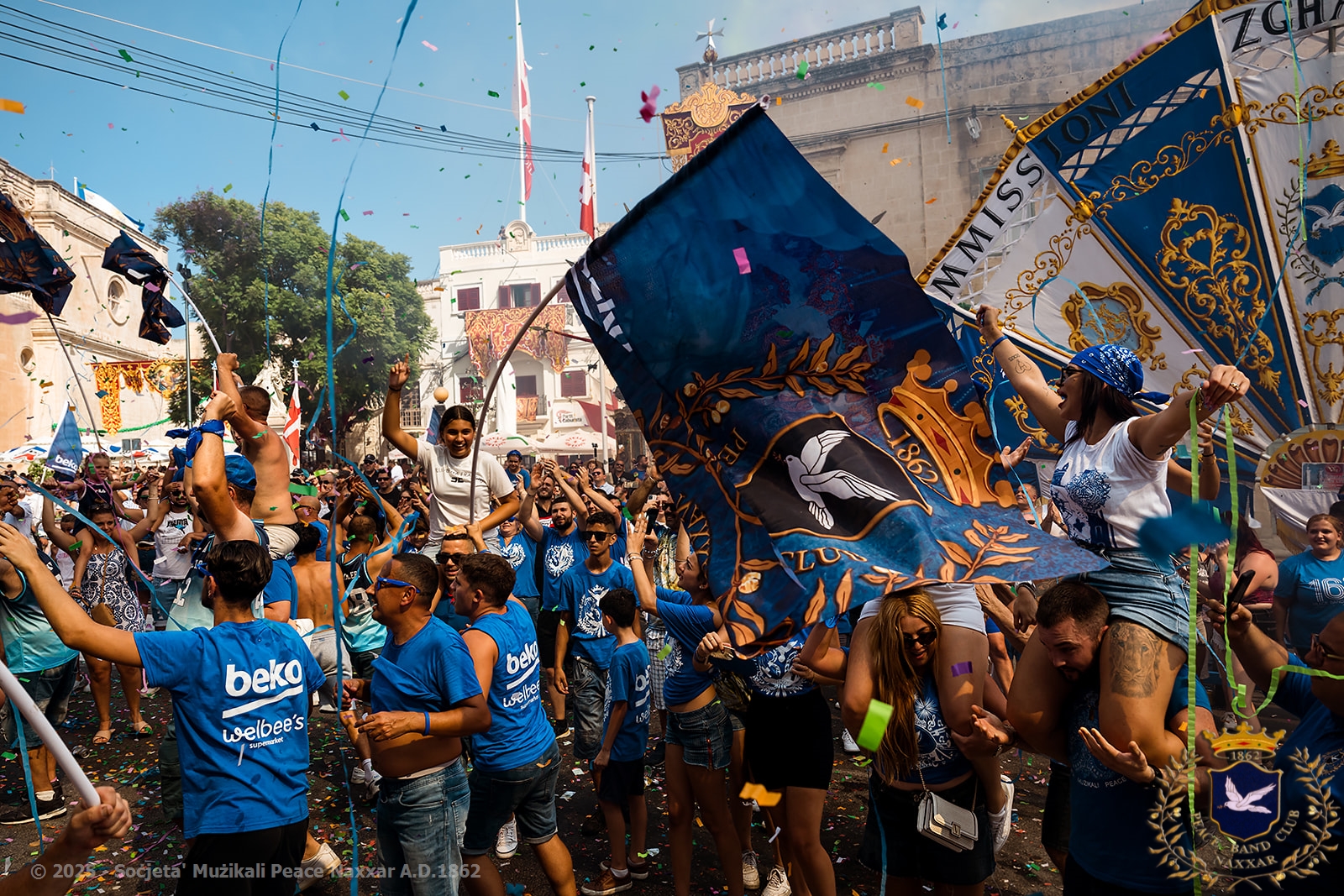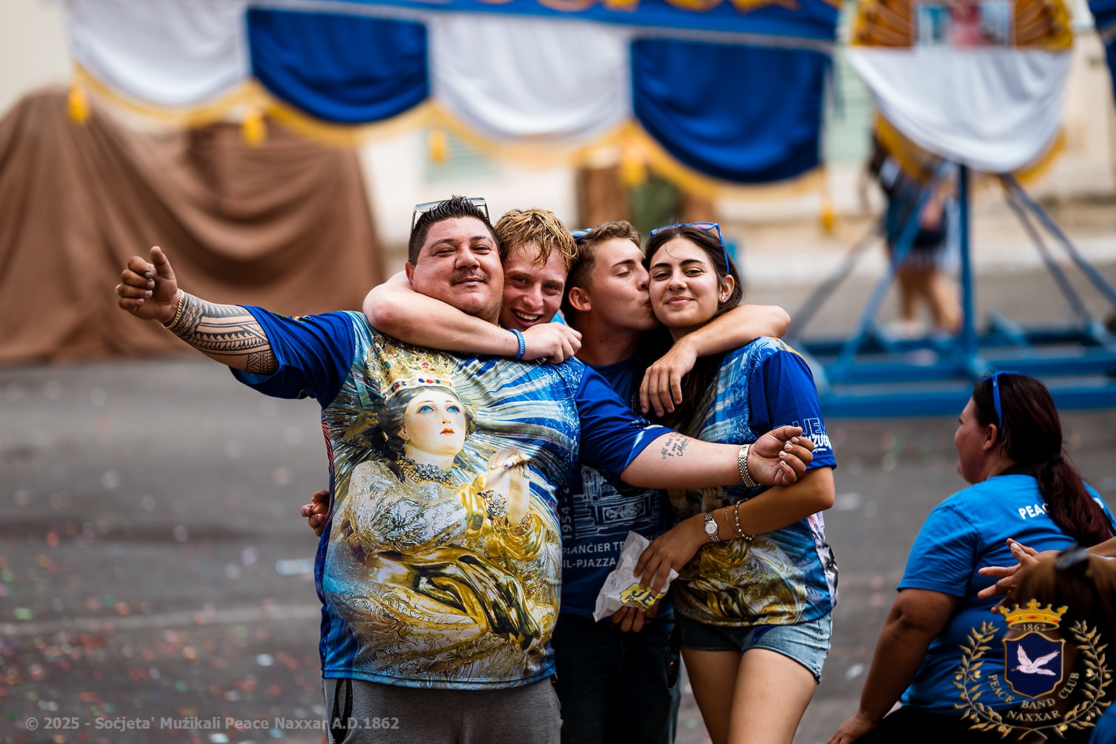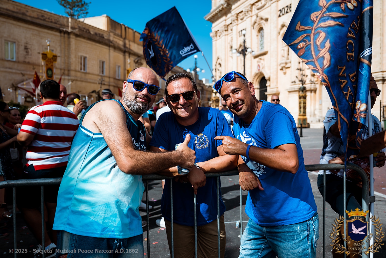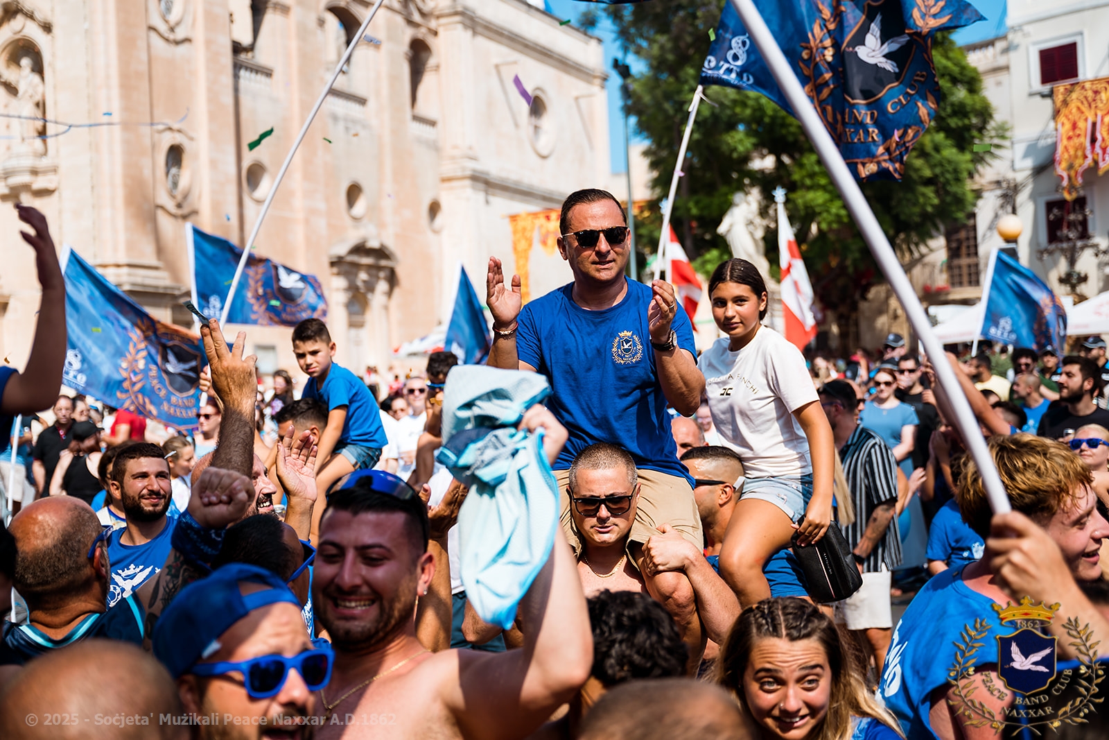 Nhar it-8 ta' Settembru filgħodu f'jum il-Festa ta' Marija Bambina ġewwa l-Pjazza Naxxarijja fost il-ferħ tal-partitarji tas-Soċjeta' Mużikali Peace.