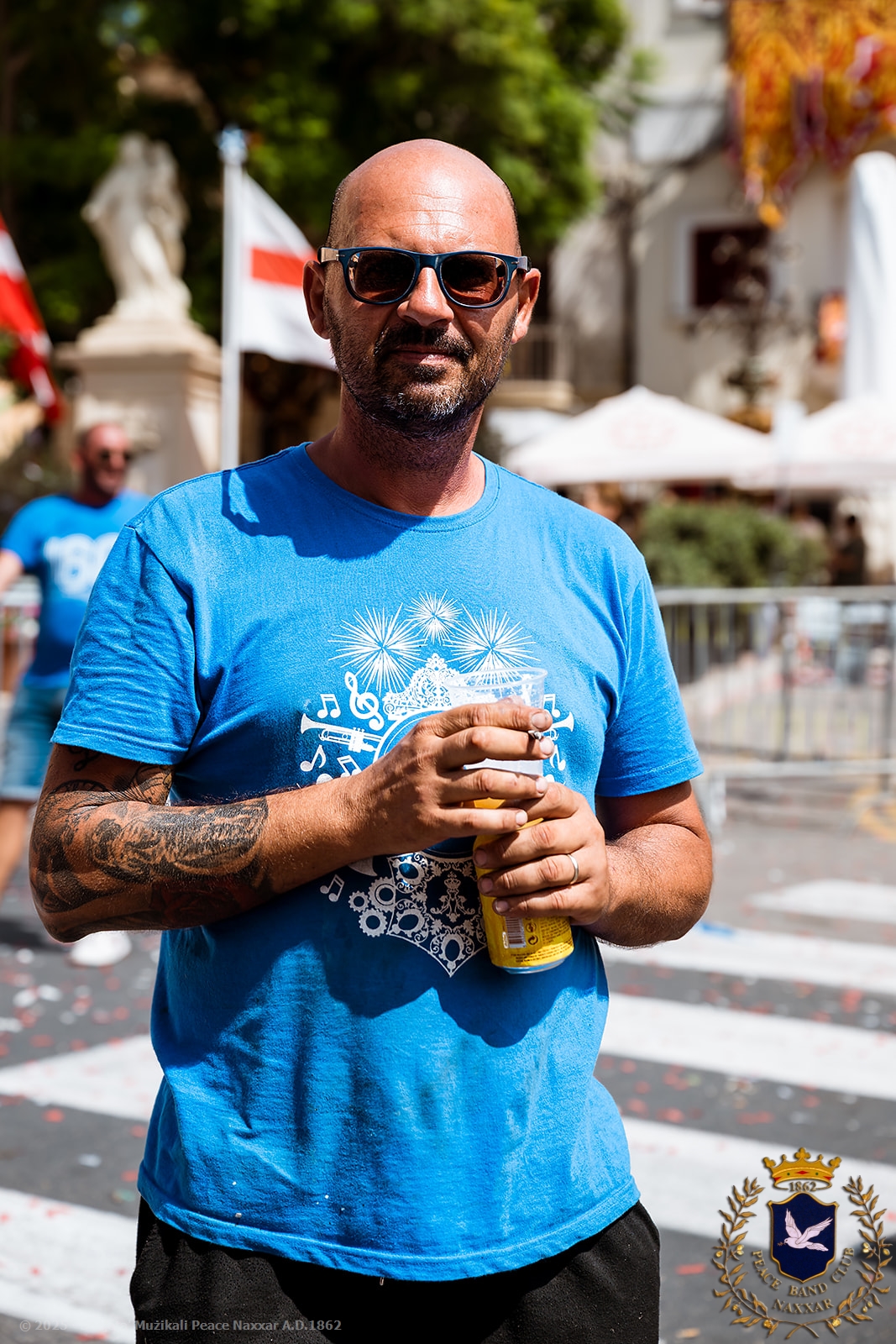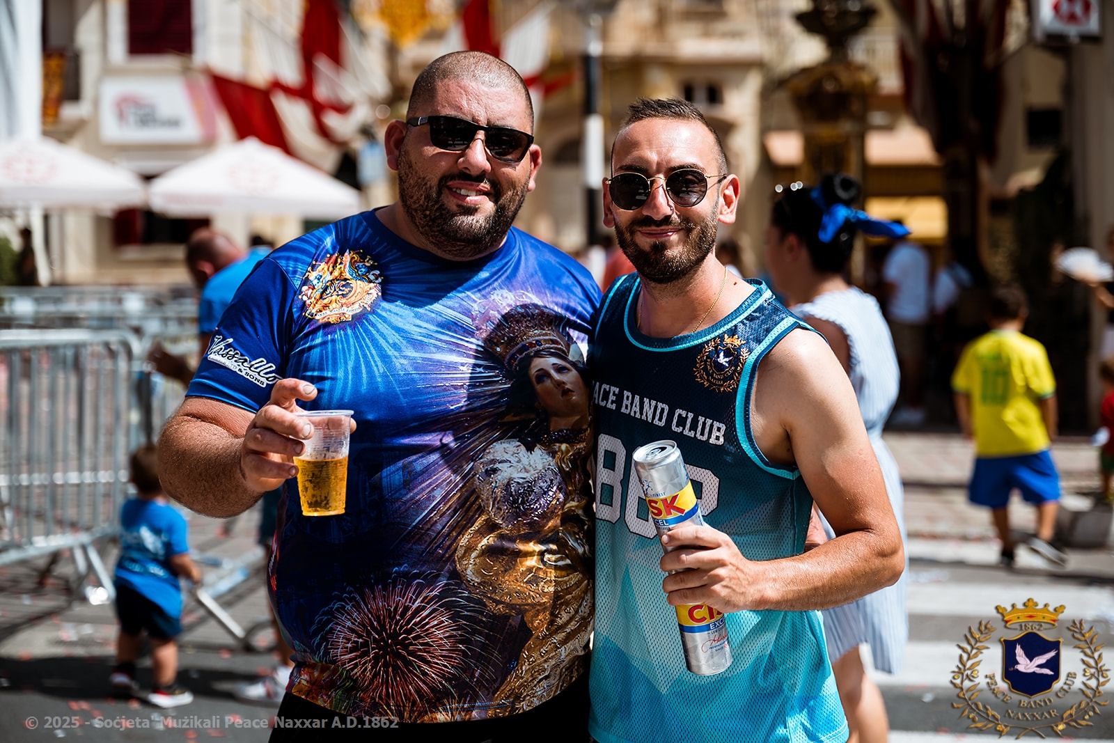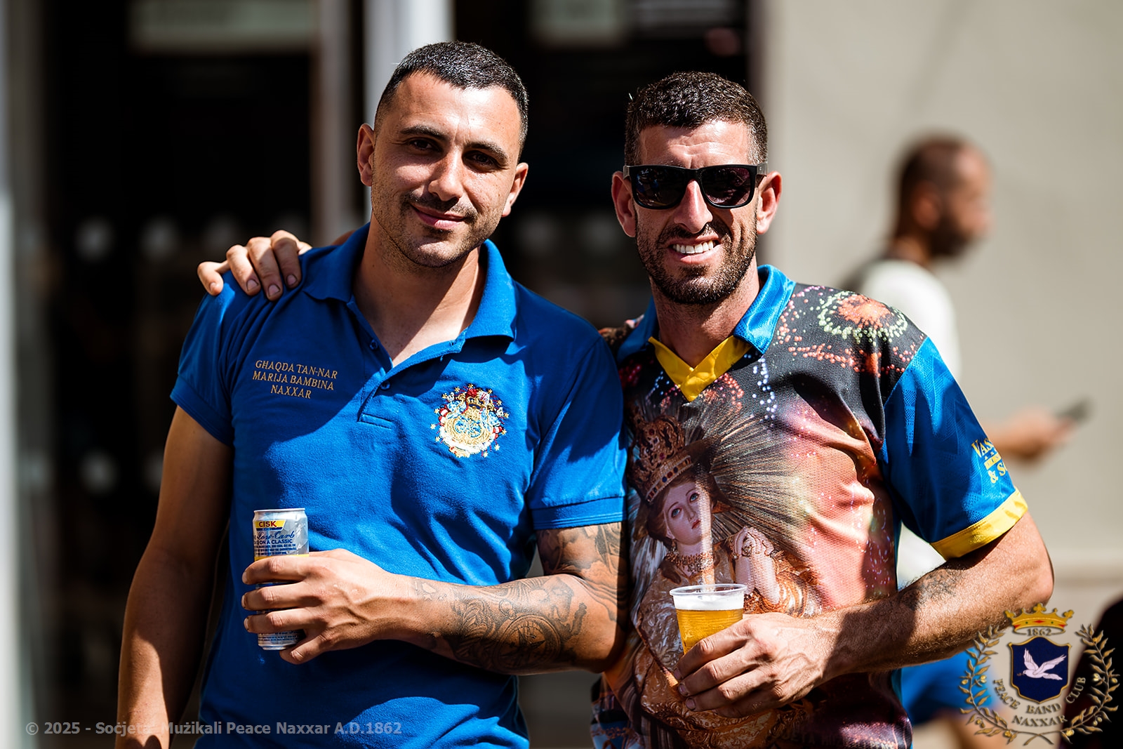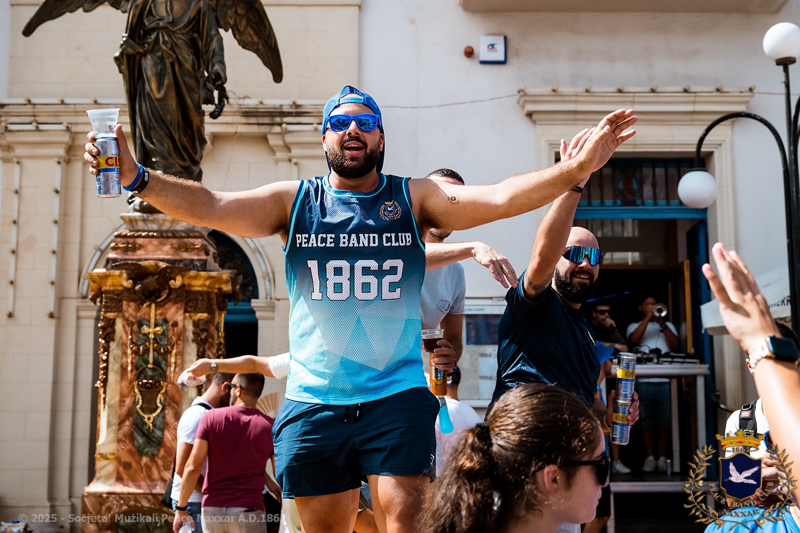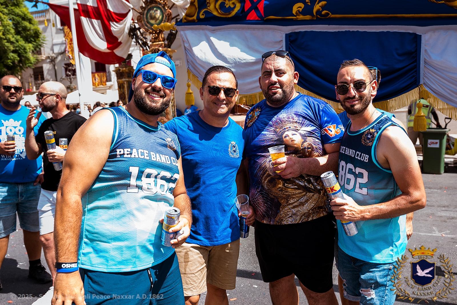 Nhar it-8 ta' Settembru filgħodu f'jum il-Festa ta' Marija Bambina ġewwa l-Pjazza Naxxarijja fost il-ferħ tal-partitarji tas-Soċjeta' Mużikali Peace.