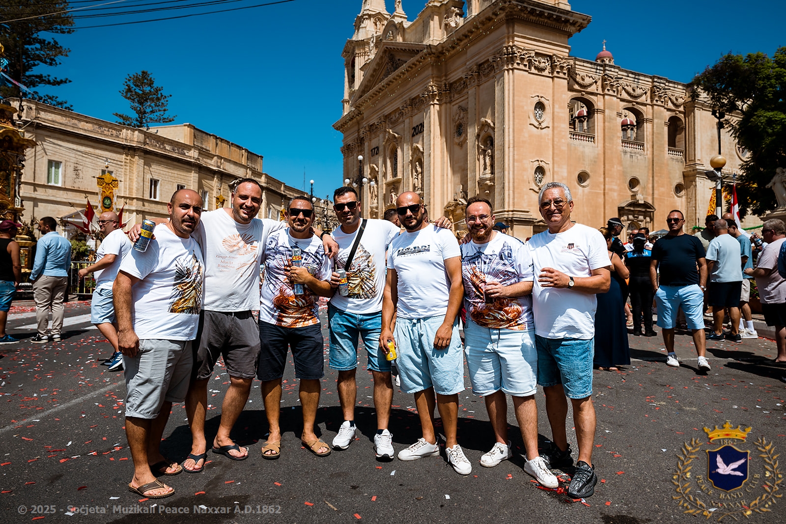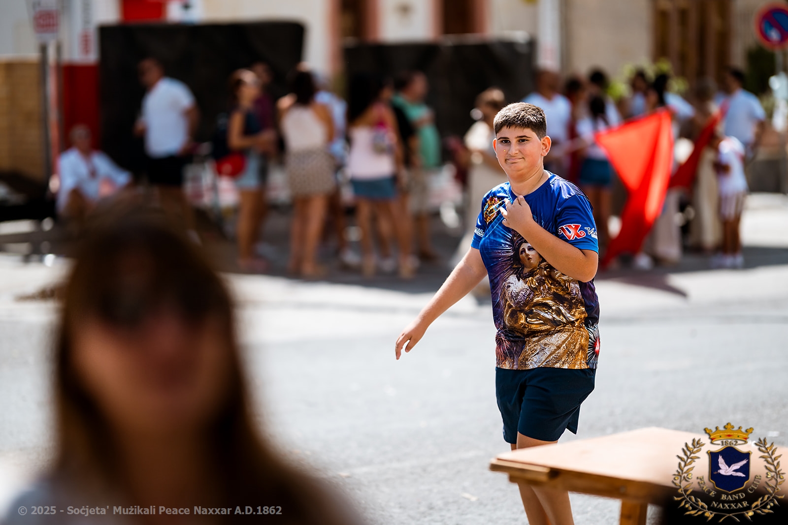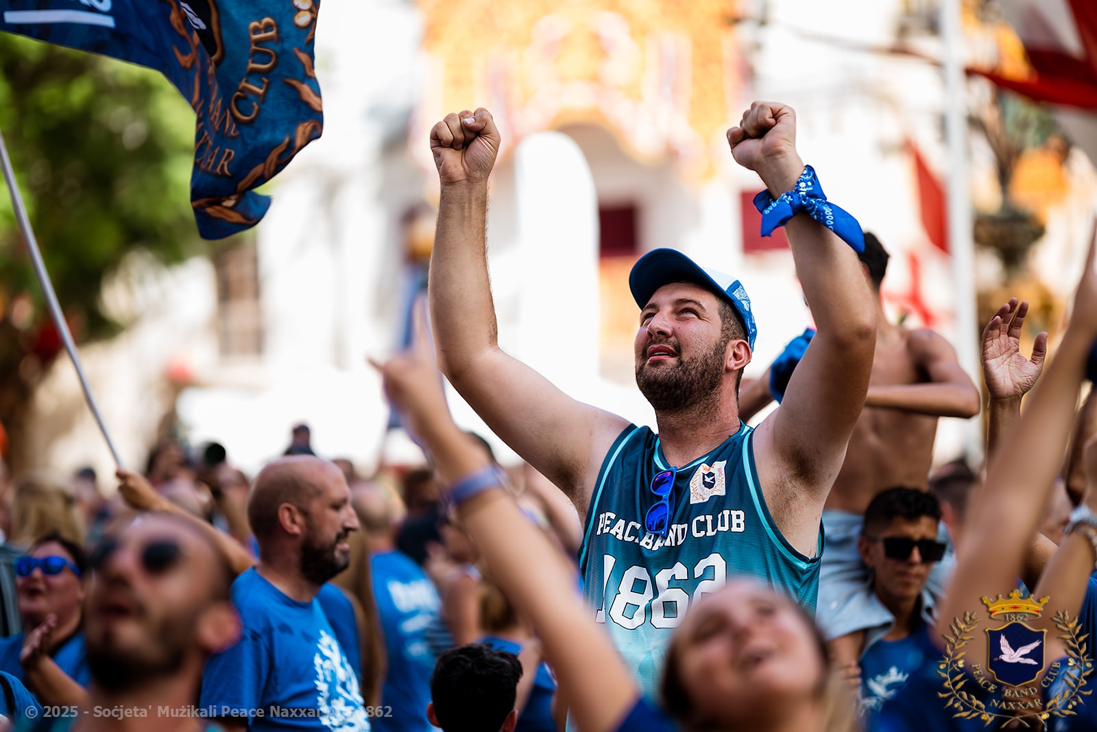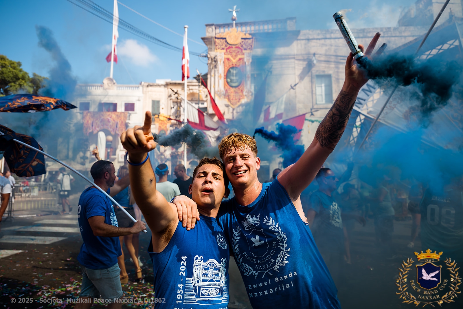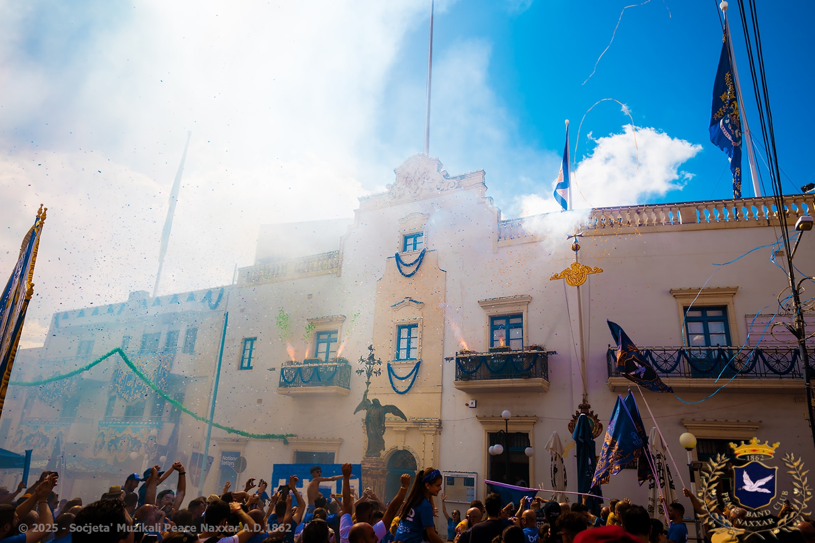 Nhar it-8 ta' Settembru filgħodu f'jum il-Festa ta' Marija Bambina ġewwa l-Pjazza Naxxarijja fost il-ferħ tal-partitarji tas-Soċjeta' Mużikali Peace.