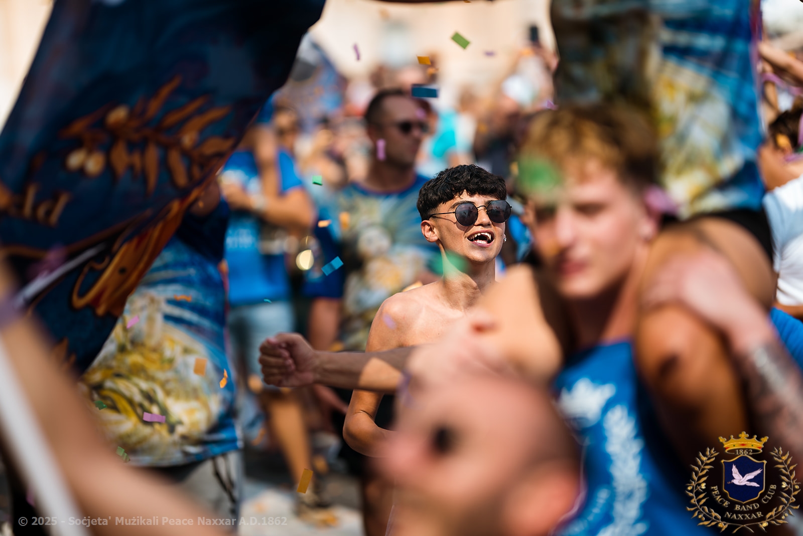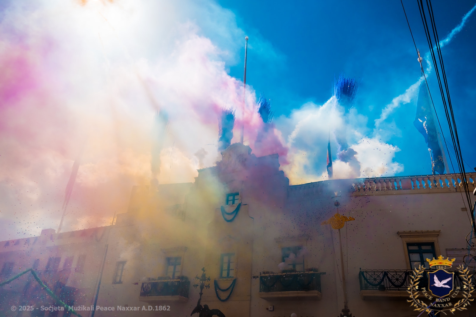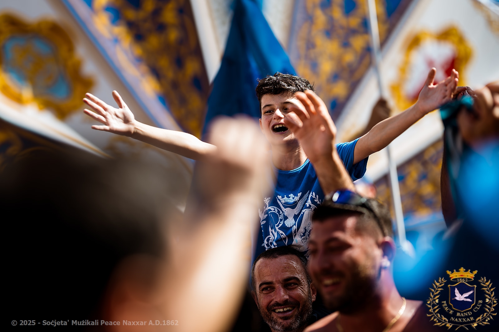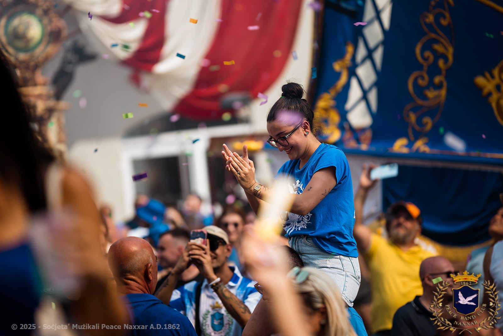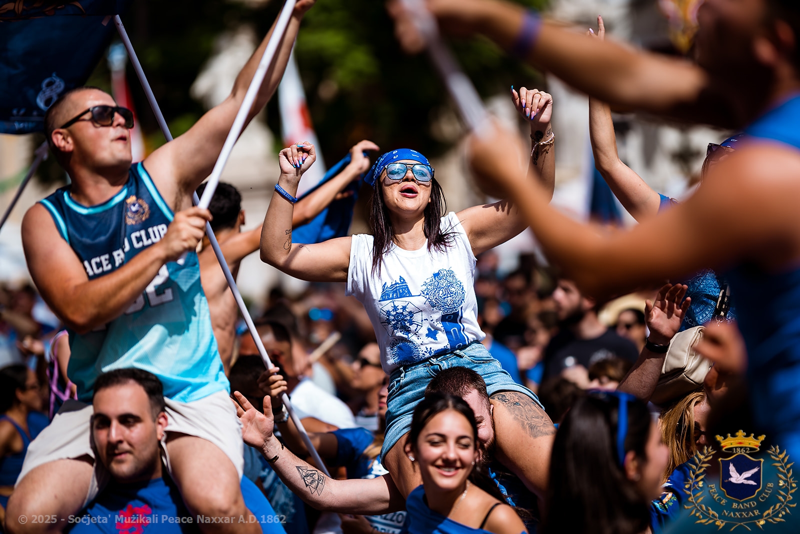 Nhar it-8 ta' Settembru filgħodu f'jum il-Festa ta' Marija Bambina ġewwa l-Pjazza Naxxarijja fost il-ferħ tal-partitarji tas-Soċjeta' Mużikali Peace.