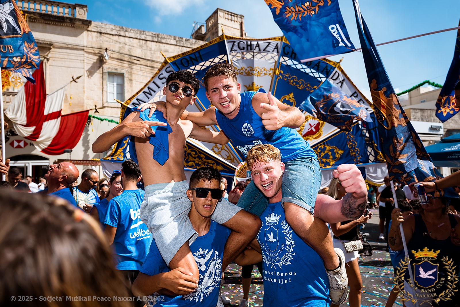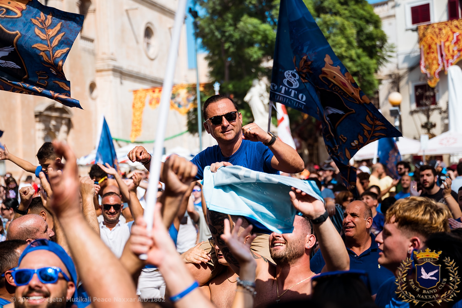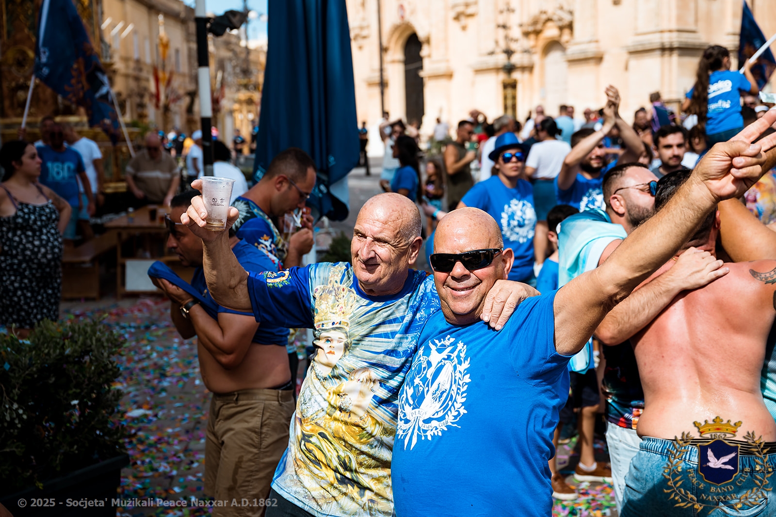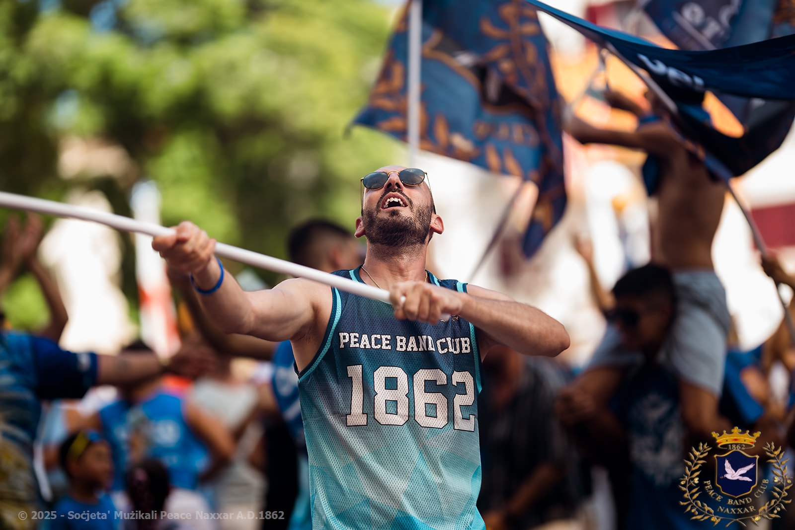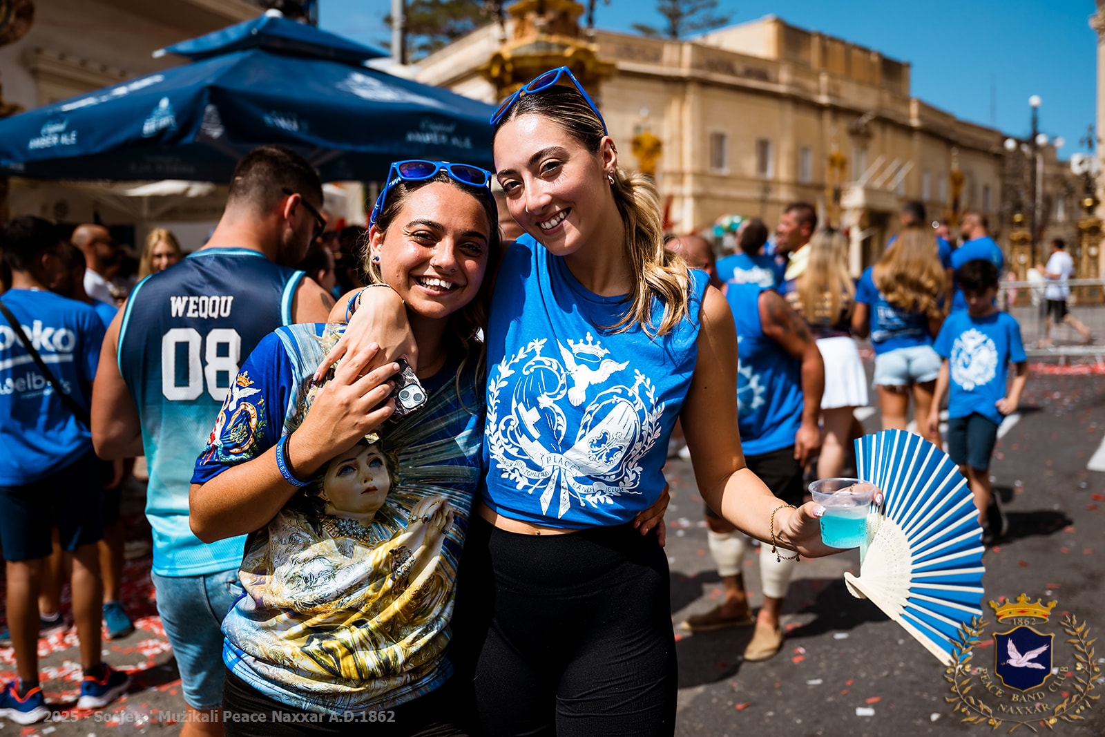 Nhar it-8 ta' Settembru filgħodu f'jum il-Festa ta' Marija Bambina ġewwa l-Pjazza Naxxarijja fost il-ferħ tal-partitarji tas-Soċjeta' Mużikali Peace.