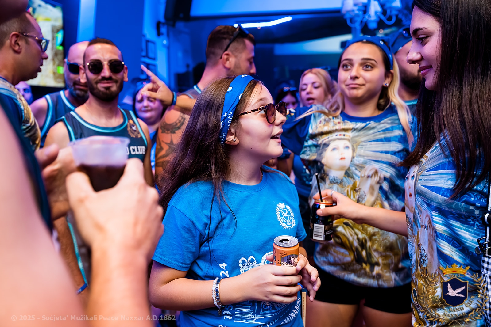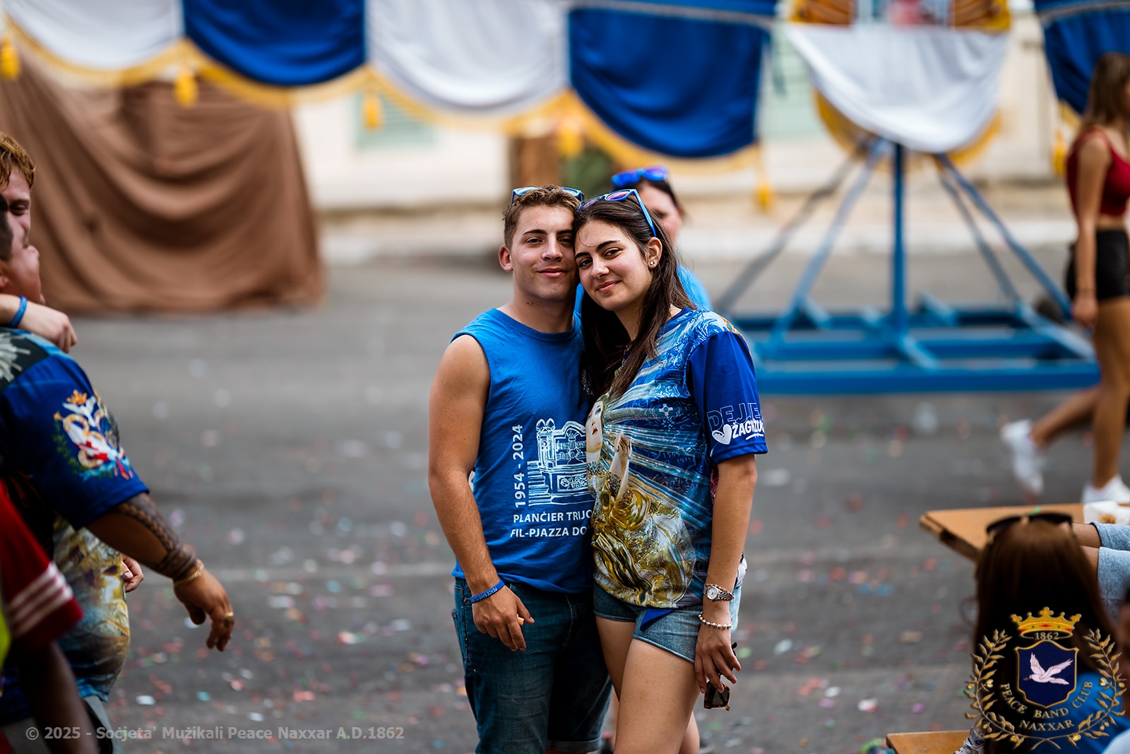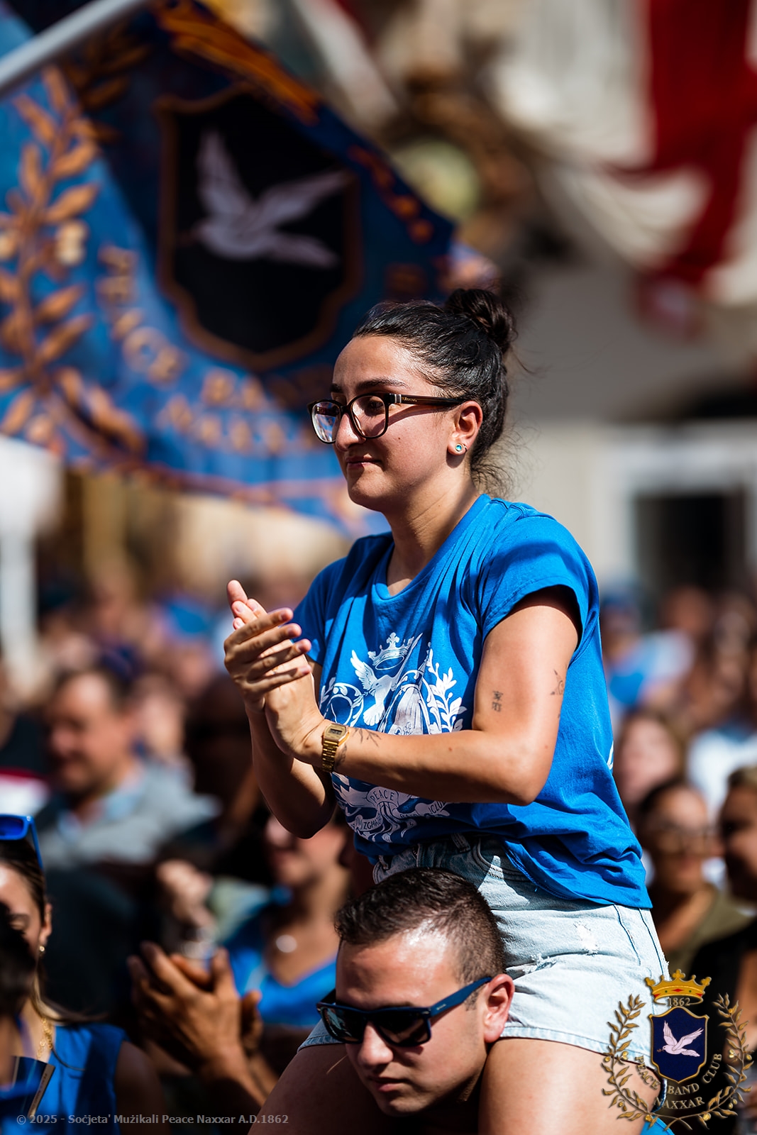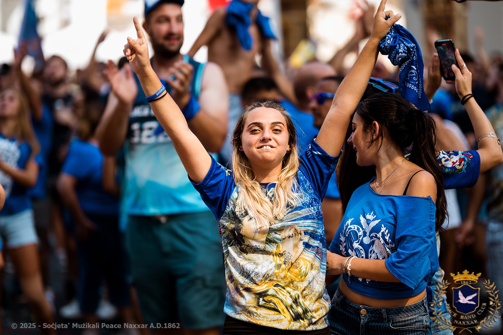 Nhar it-8 ta' Settembru filgħodu f'jum il-Festa ta' Marija Bambina ġewwa l-Pjazza Naxxarijja fost il-ferħ tal-partitarji tas-Soċjeta' Mużikali Peace.