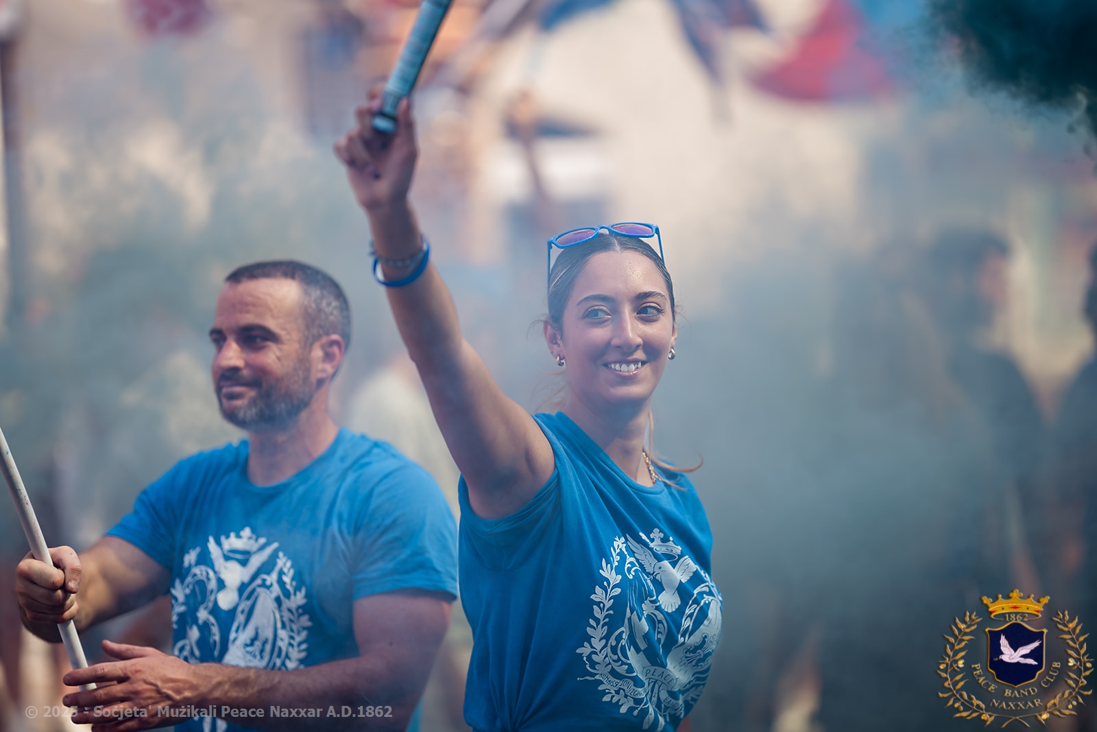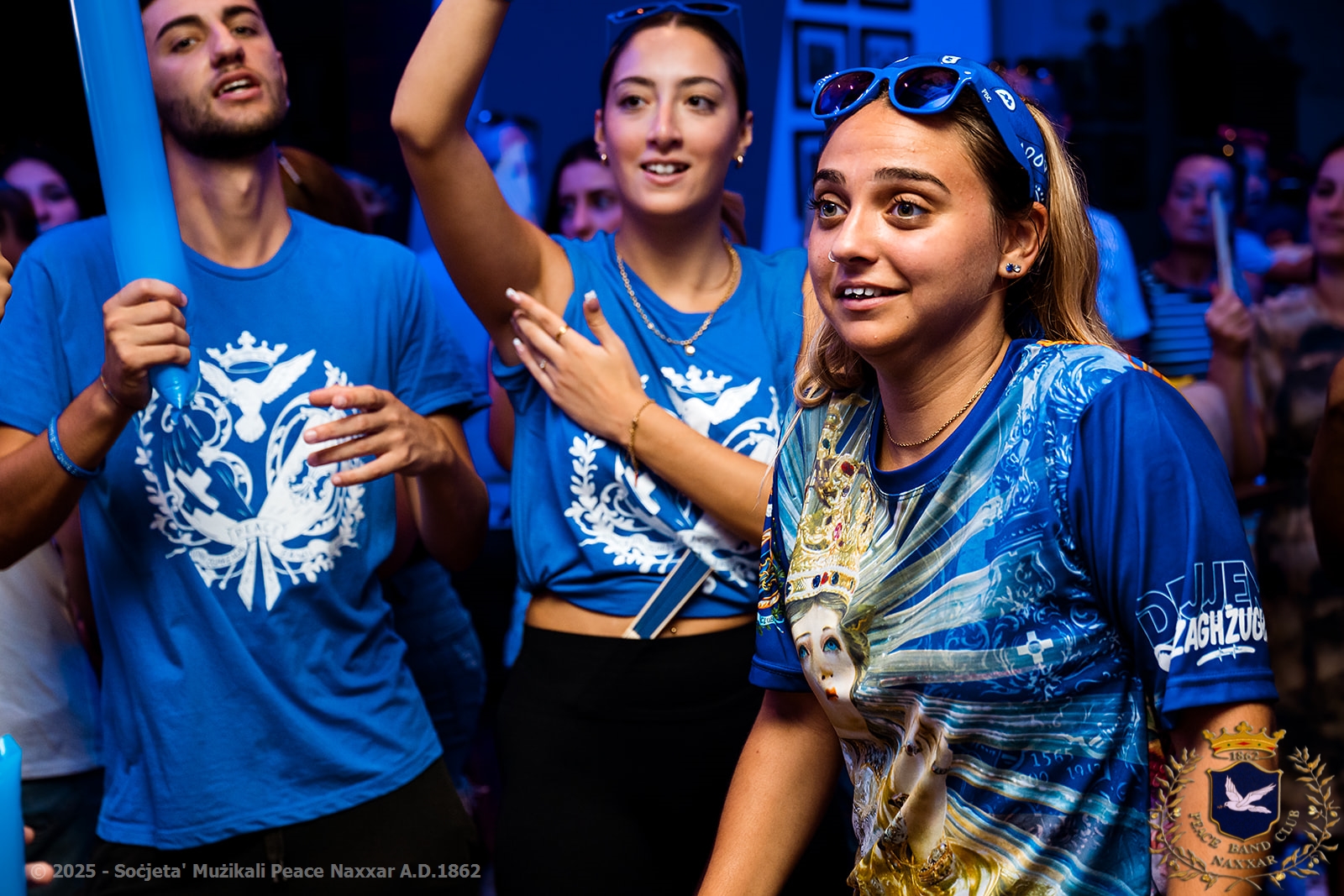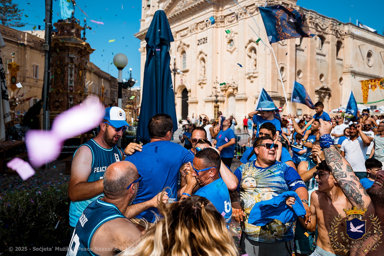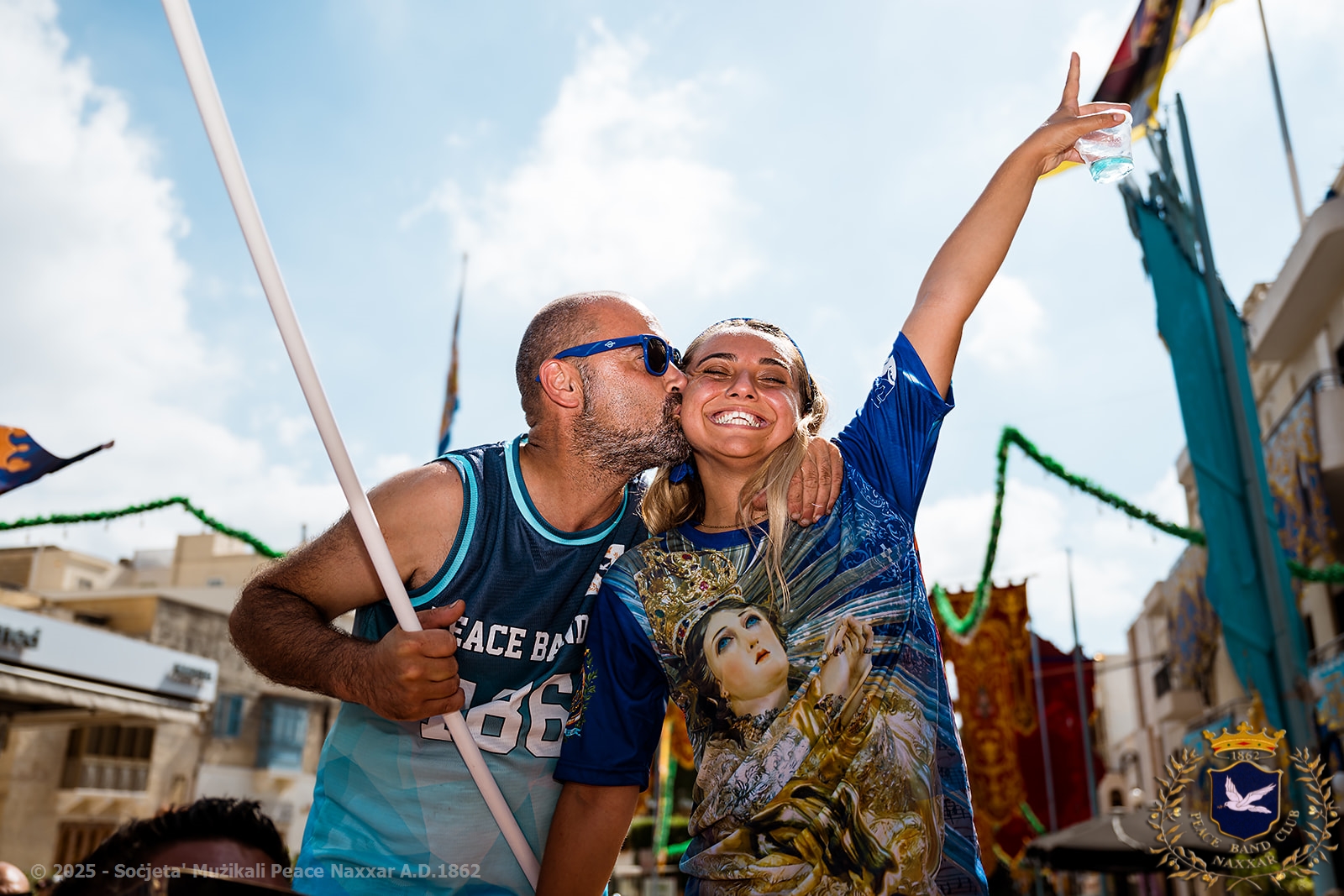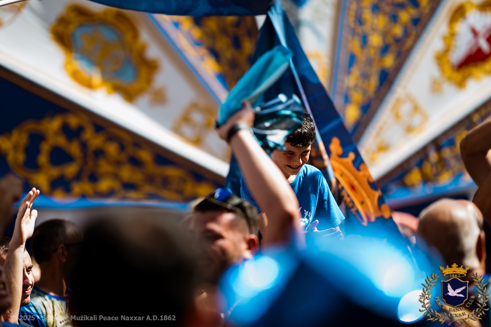 Nhar it-8 ta' Settembru filgħodu f'jum il-Festa ta' Marija Bambina ġewwa l-Pjazza Naxxarijja fost il-ferħ tal-partitarji tas-Soċjeta' Mużikali Peace.