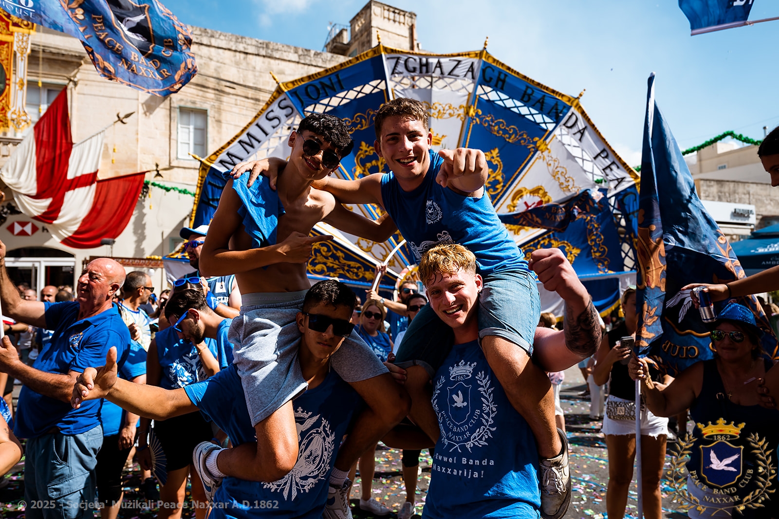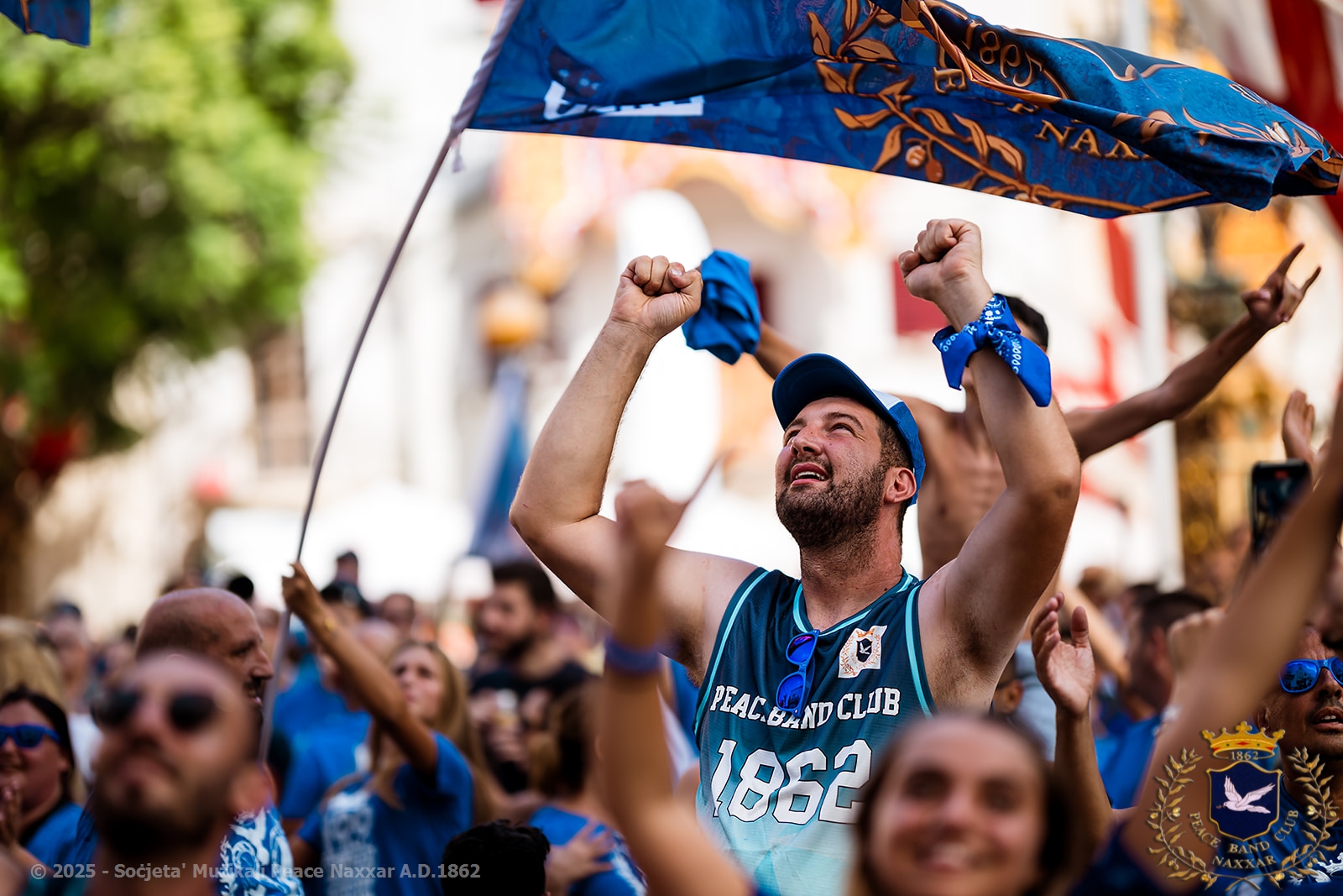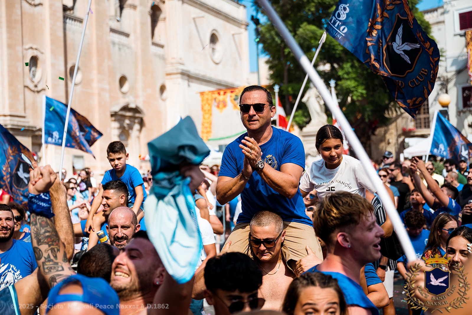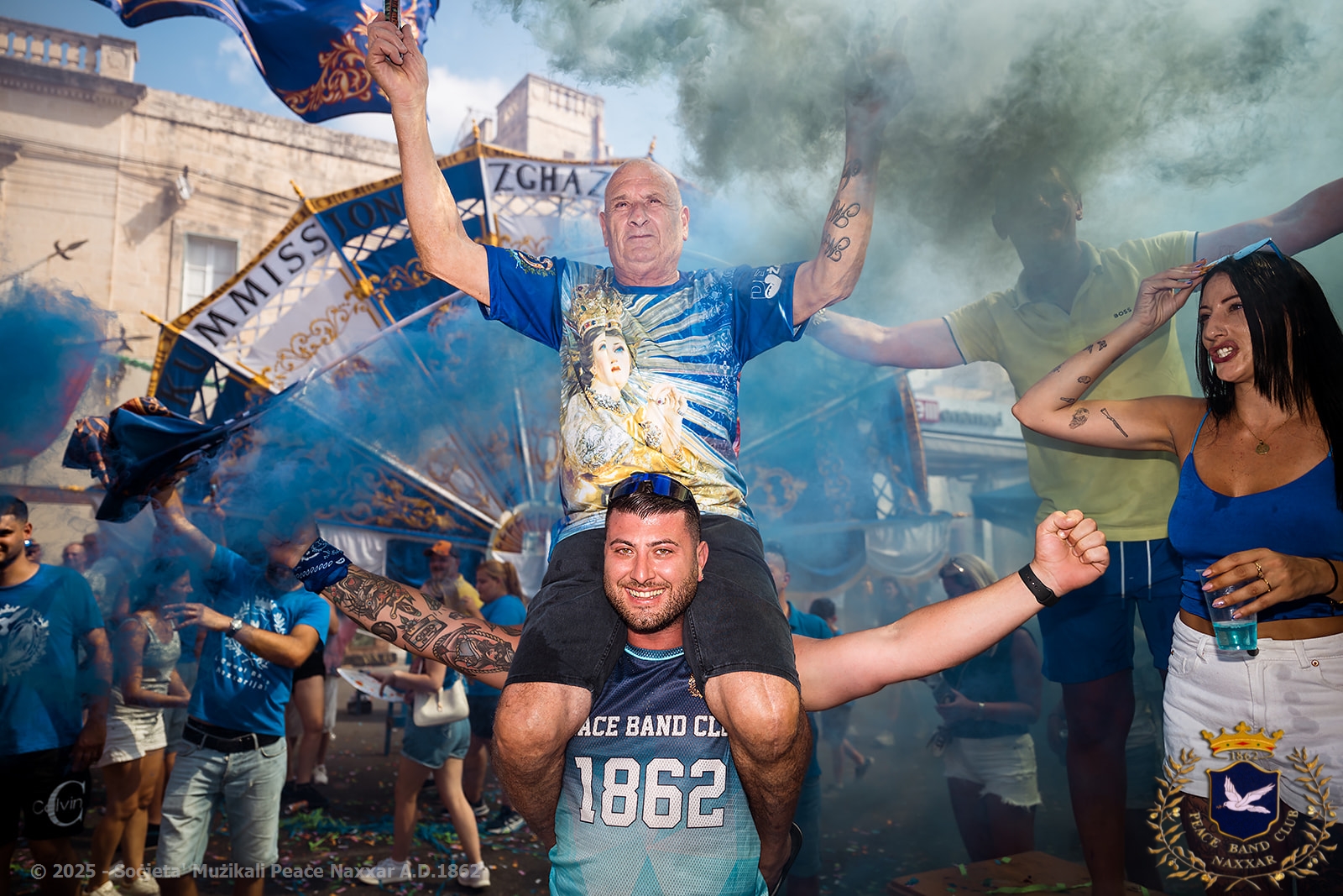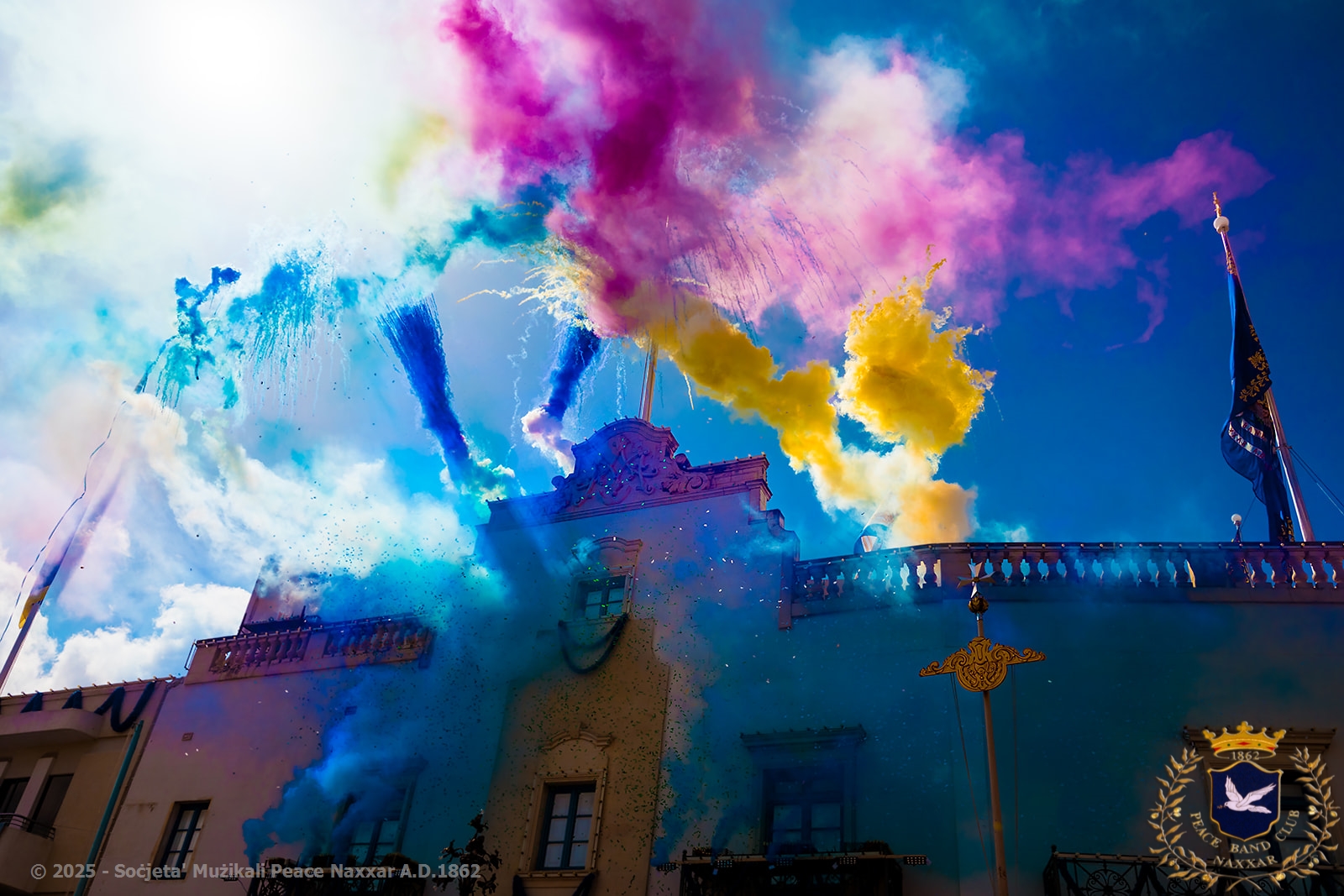 Nhar it-8 ta' Settembru filgħodu f'jum il-Festa ta' Marija Bambina ġewwa l-Pjazza Naxxarijja fost il-ferħ tal-partitarji tas-Soċjeta' Mużikali Peace.