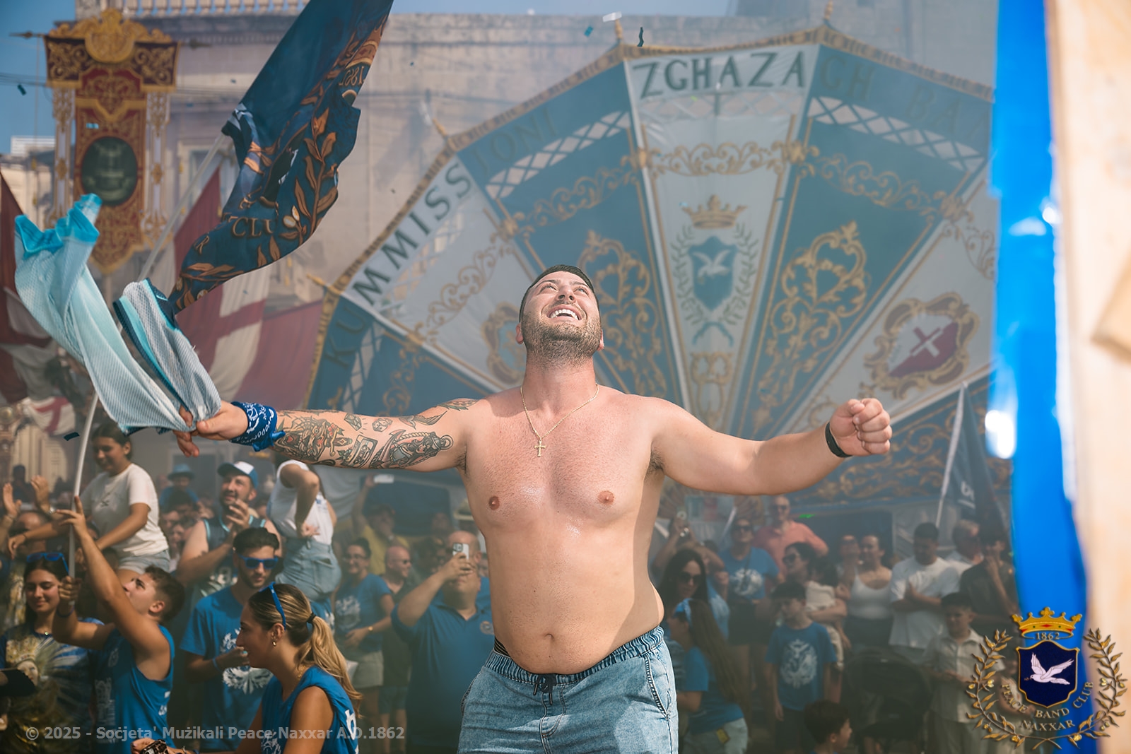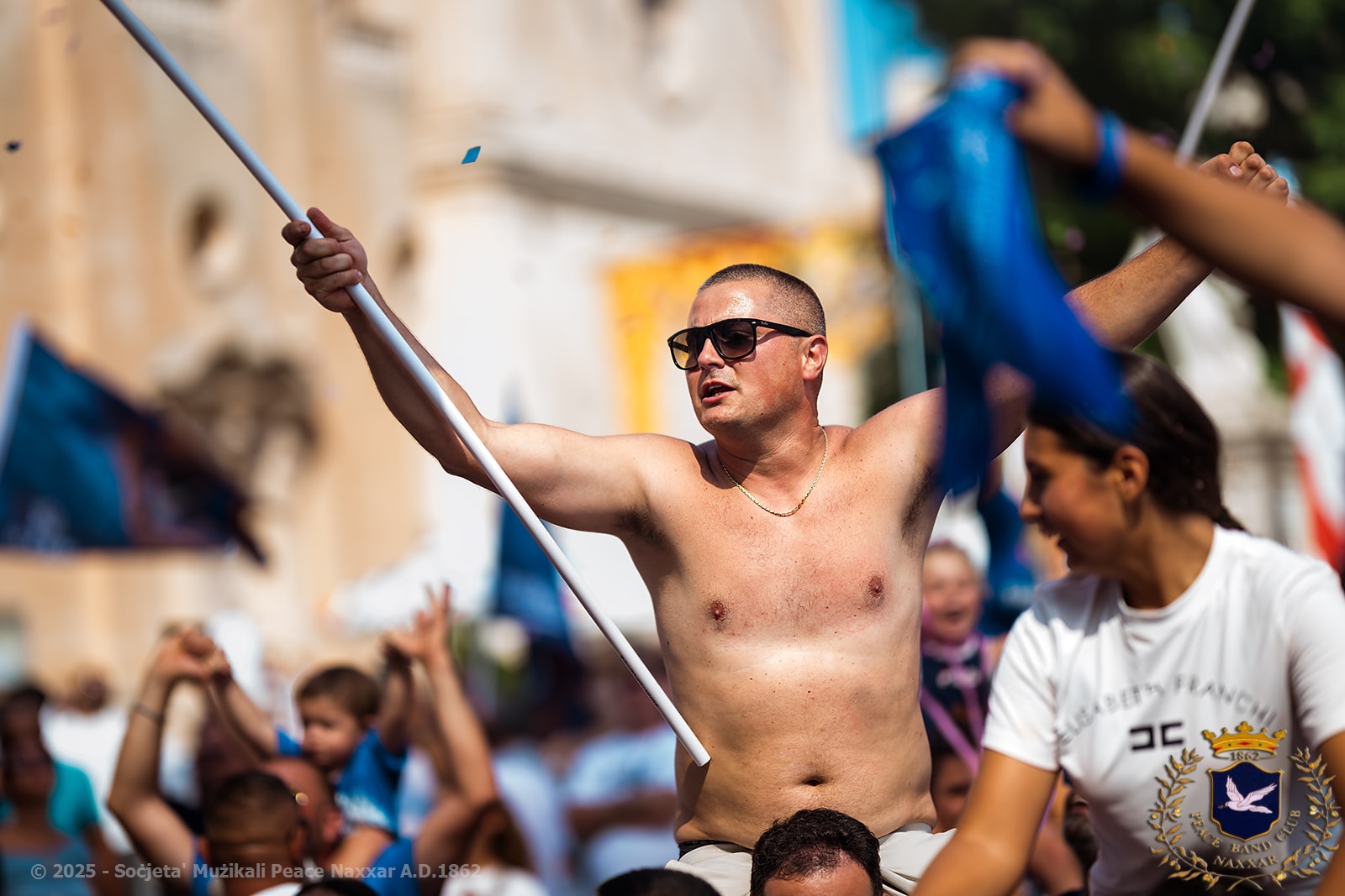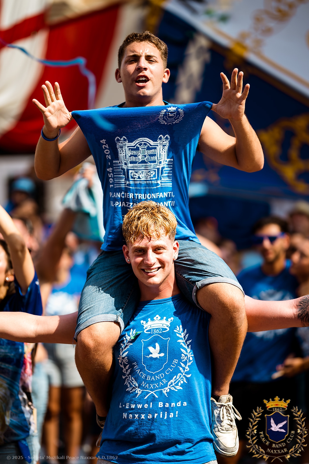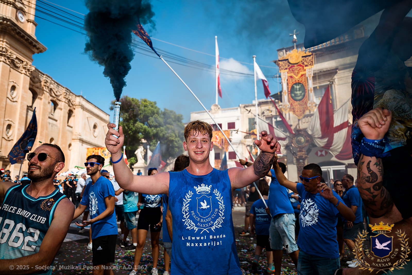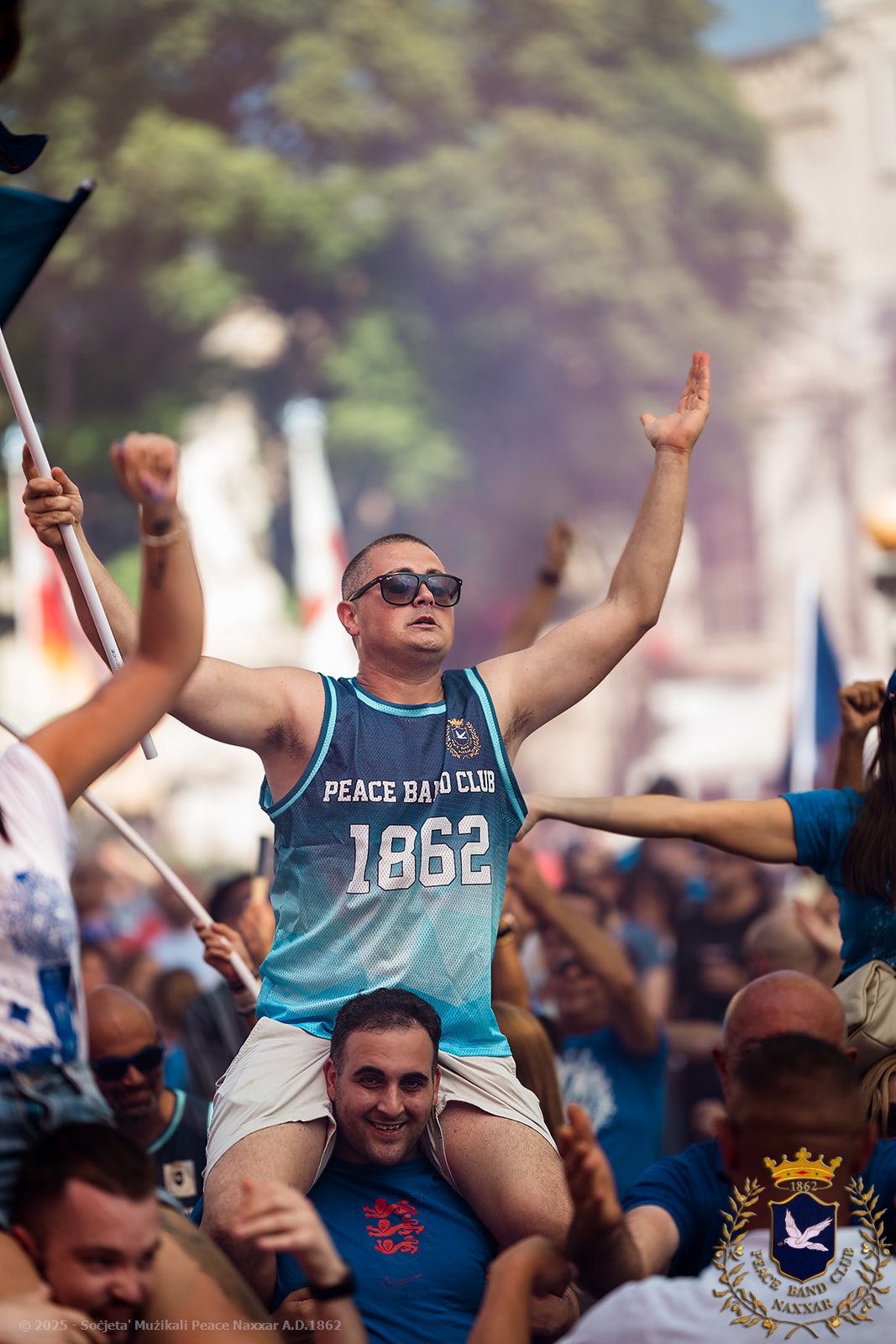 Nhar it-8 ta' Settembru filgħodu f'jum il-Festa ta' Marija Bambina ġewwa l-Pjazza Naxxarijja fost il-ferħ tal-partitarji tas-Soċjeta' Mużikali Peace.