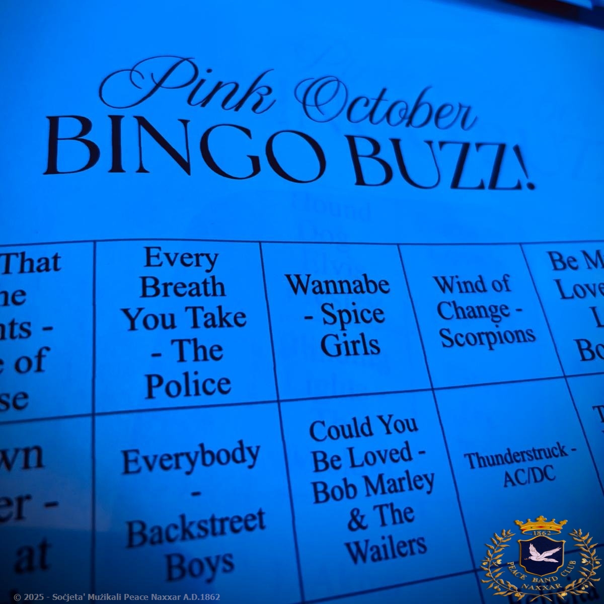 Nhar il-Ġimgħa, 24 ta’ Ottubru, il-Kummissjoni Żgħażagħ organizzat il-Bingo Buzz ġewwa OTTO Clubhouse b’risq Pink October. Kienet serata mimlija enerġija, mużika u divertiment fejn il-parteċipanti gawdew edizzjoni speċjali ta’ tombla b’tema mużikali u bosta premijiet x’jintrebħu.