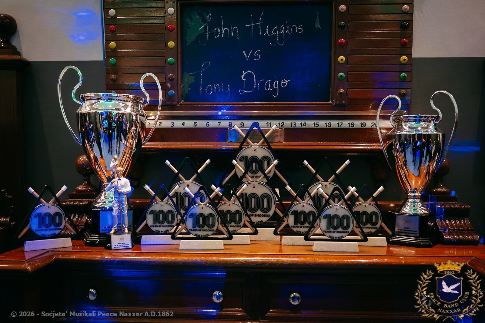 Is-Soċjeta' Mużikali Peace nhar il-Ġimgħa 6 ta' Marzu, ospita ċelebrazzjoni storika li fakkret il-100 sena minn meta s-snooker beda jintlagħab fil-lokalità. L-okkażjoni kienet immarkata b’logħba ta’ esibizzjoni bejn l-ikona Maltija tas-snooker Tony Drago u l-erba’ darbiet Champion tad-Dinja John Higgins. L-avveniment attira folla numeruża, xhieda tal-passjoni qawwija li l-komunità Naxxarija ilha turi lejn dan l-isport.