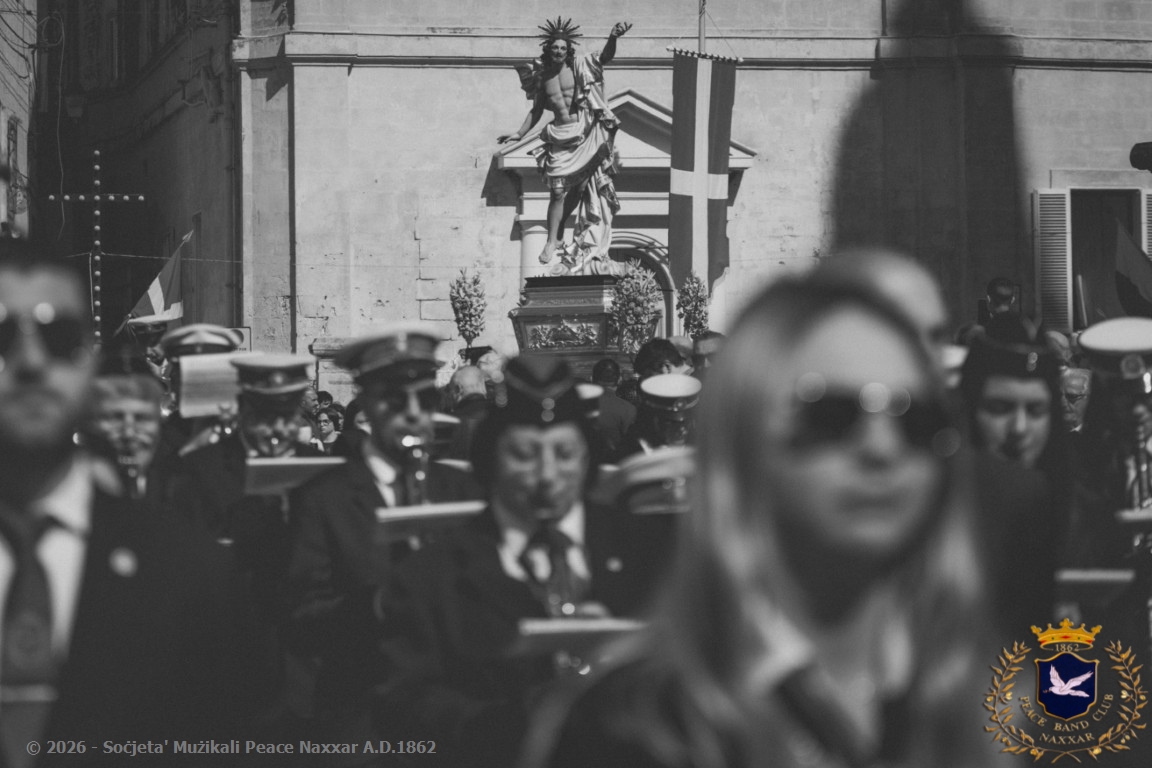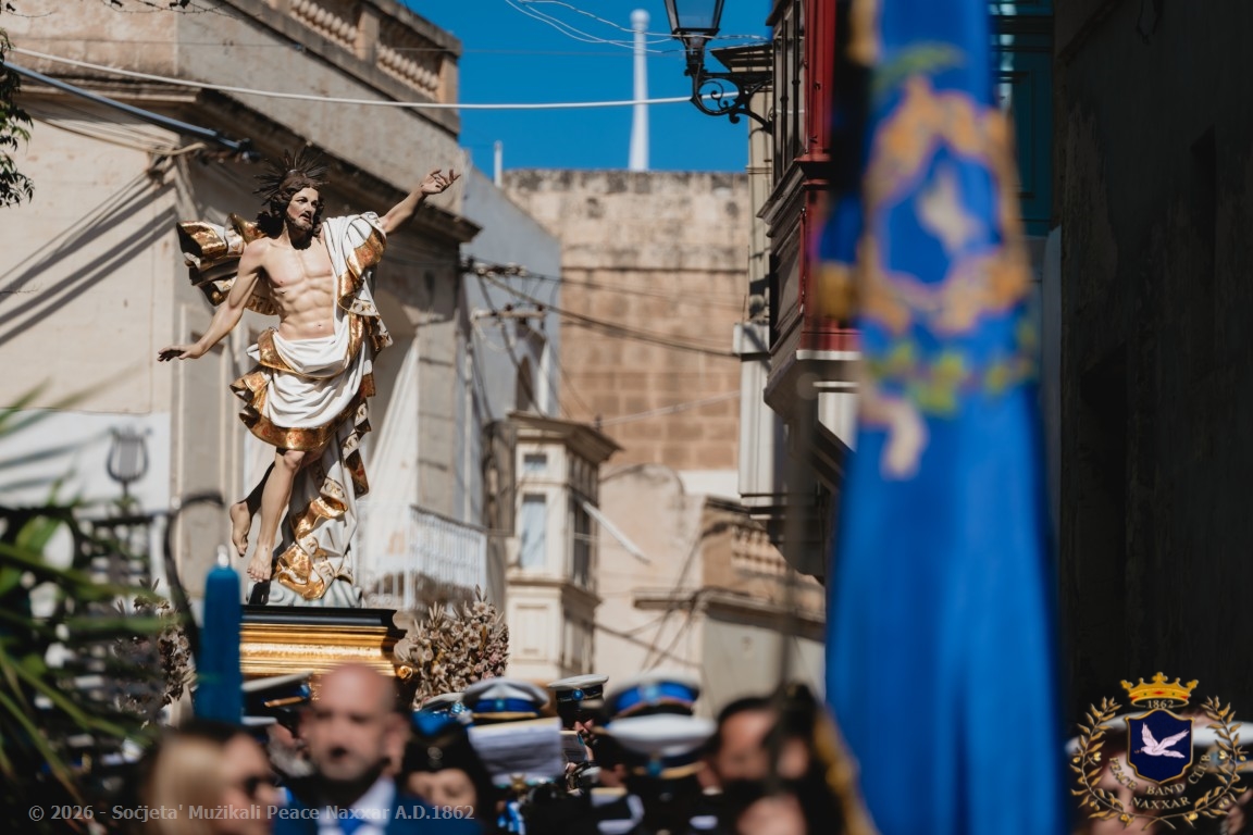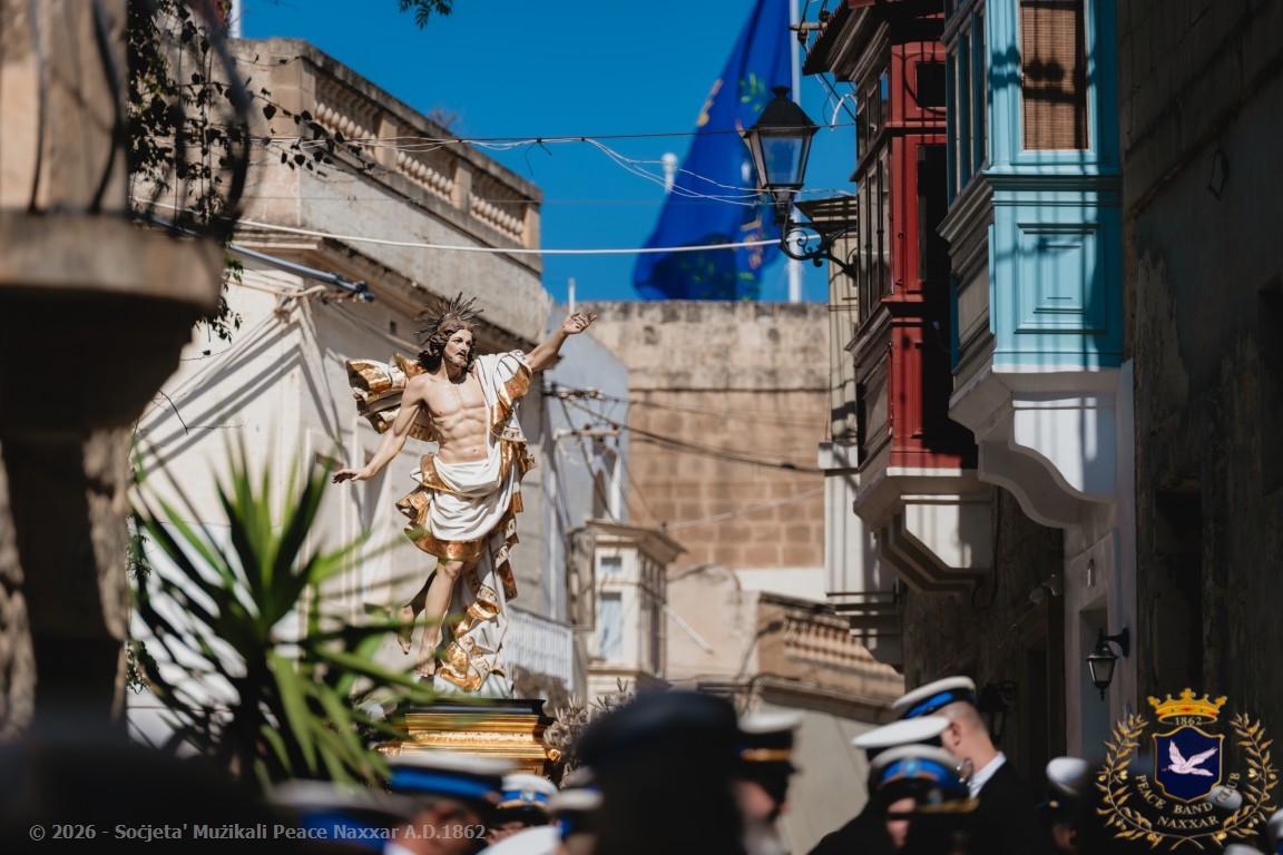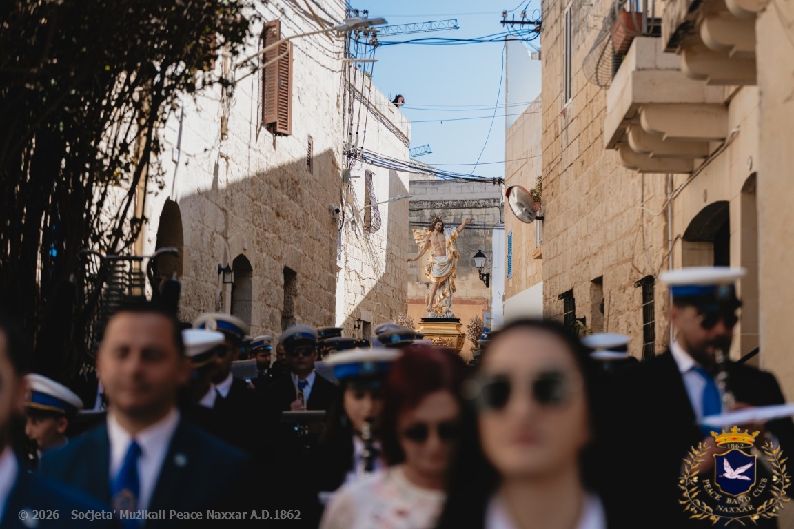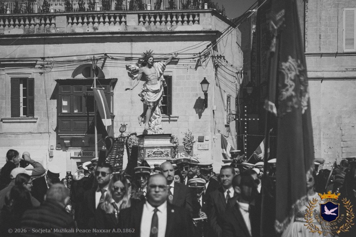 Nhar il-Ħadd, 5 ta’ April, il-Banda Peace, b’pjaċir u unur kbir kif tagħmel kull sena, akkumpanjat l-istatwa artistika ta’ Kristu Rxoxt fit-toroq tan-Naxxar.