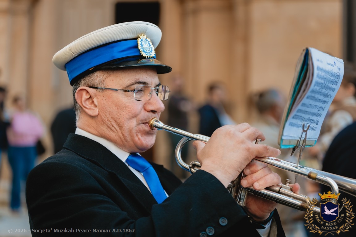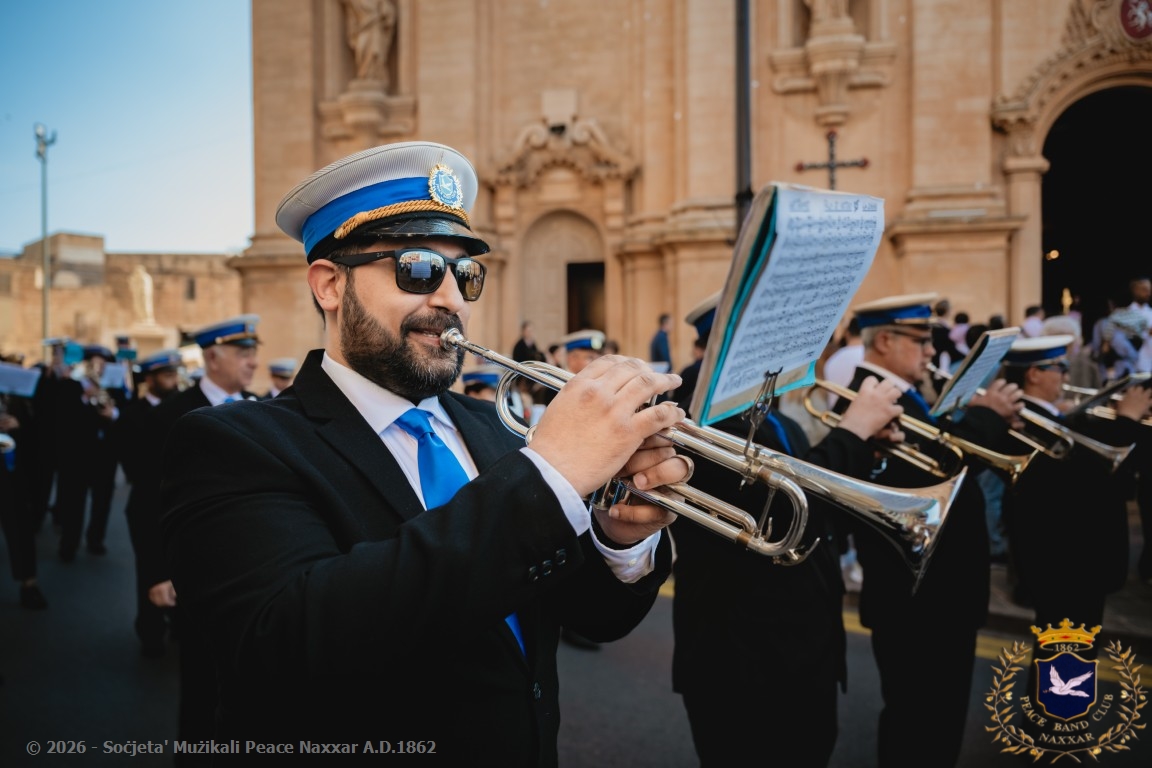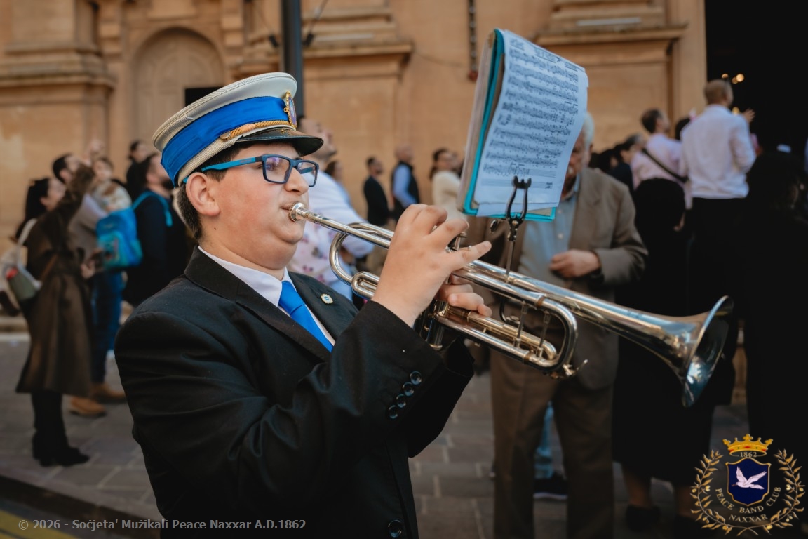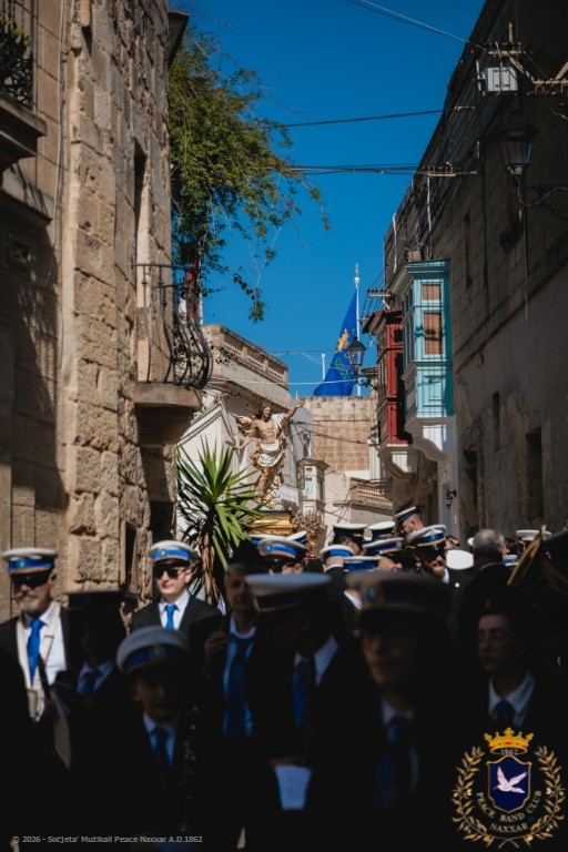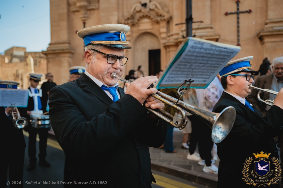 Nhar il-Ħadd, 5 ta’ April, il-Banda Peace, b’pjaċir u unur kbir kif tagħmel kull sena, akkumpanjat l-istatwa artistika ta’ Kristu Rxoxt fit-toroq tan-Naxxar.