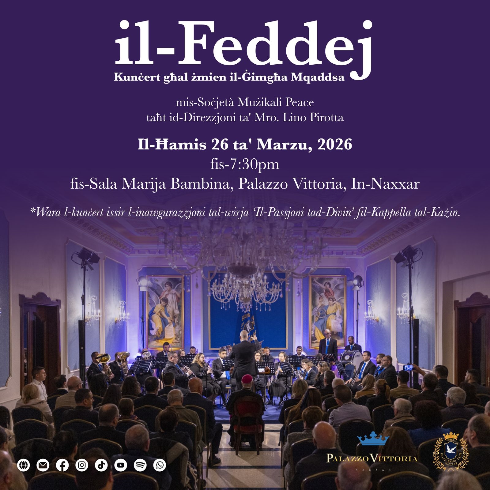 Il-kunċert se jsir fis-Sala Marija Bambina ġewwa Palazzo Vittoria.