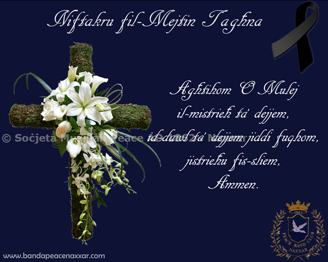 Hekk kif bdejna x-xahar ta' Novembru, ma nistawx ma niftakrux fl-gheziez taghna li hallew din-dinja matul is-snin. B'modd specjali niftakru fis-socji, bandisti, u benefatturi tas-Socjeta' taghna, s-Socjeta' Muzikali Peace.
