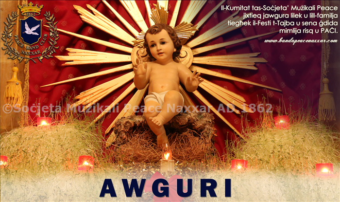 Il-Kumitat tas-Socjeta’ Muzikali Peace jixtieq jawgura lilek u lill-familja tieghek il-Festi t-Tajba u sena gdida mimlija risq u PACI.