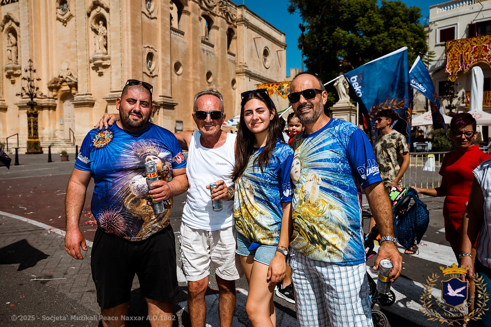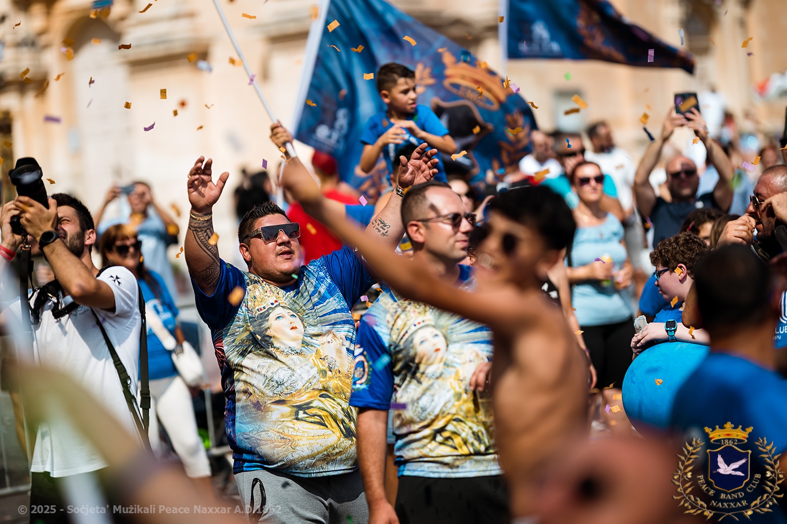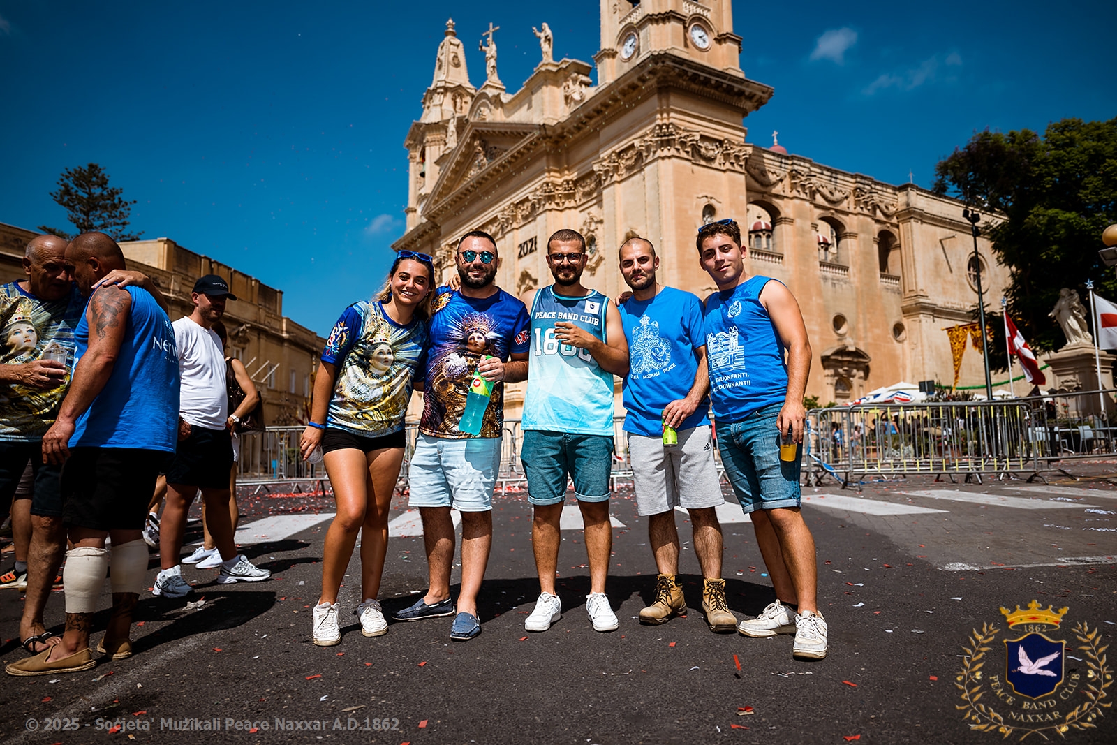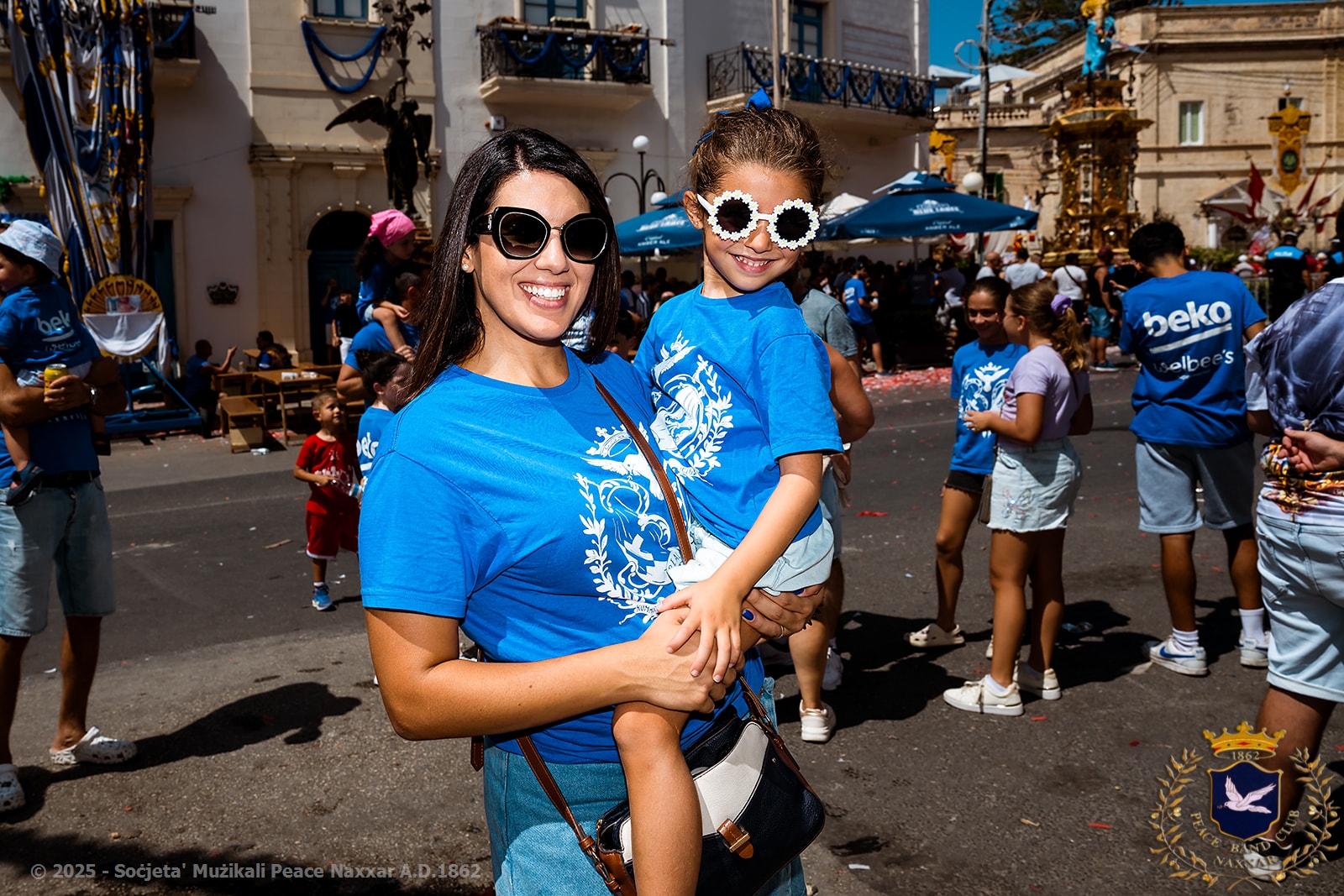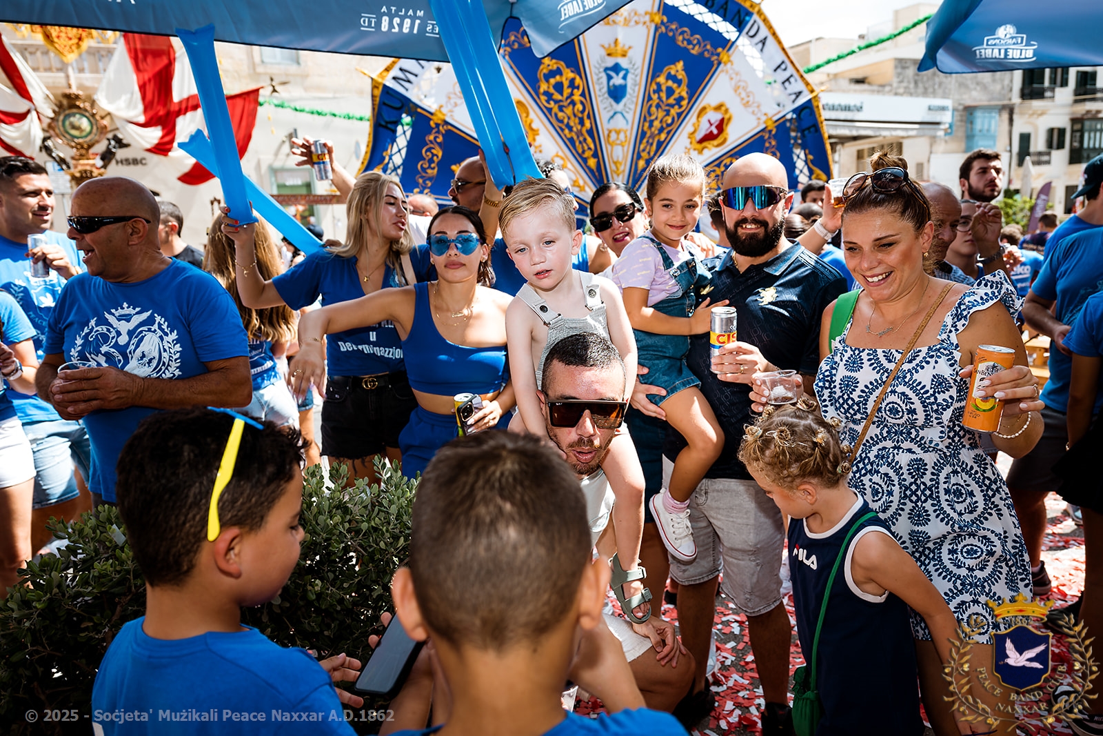Nhar it-8 ta' Settembru filgħodu f'jum il-Festa ta' Marija Bambina ġewwa l-Pjazza Naxxarijja fost il-ferħ tal-partitarji tas-Soċjeta' Mużikali Peace.