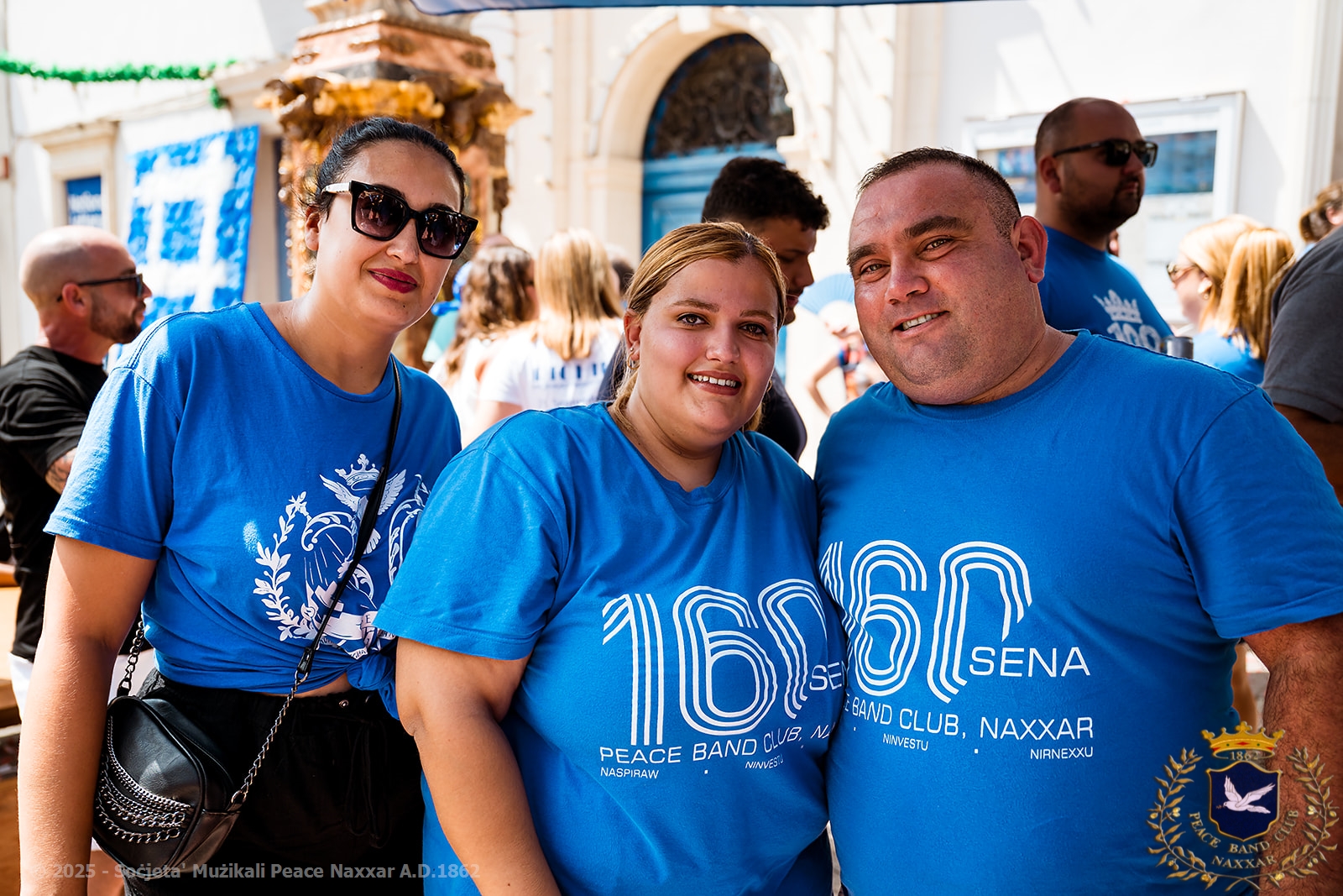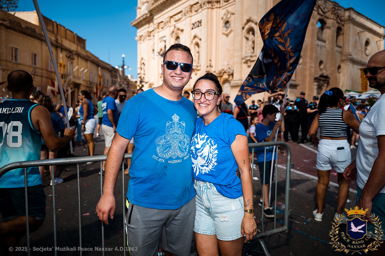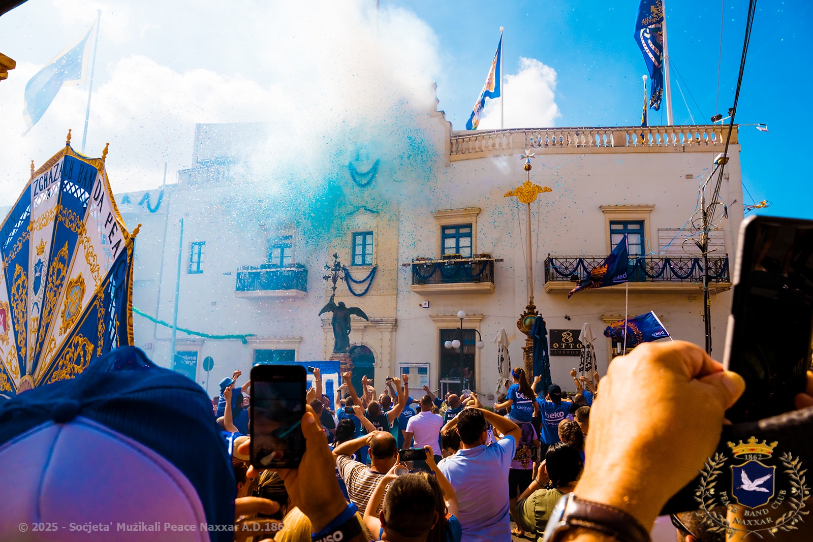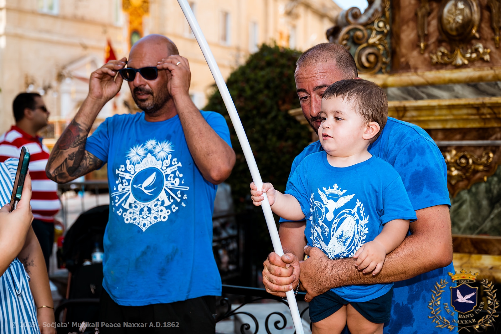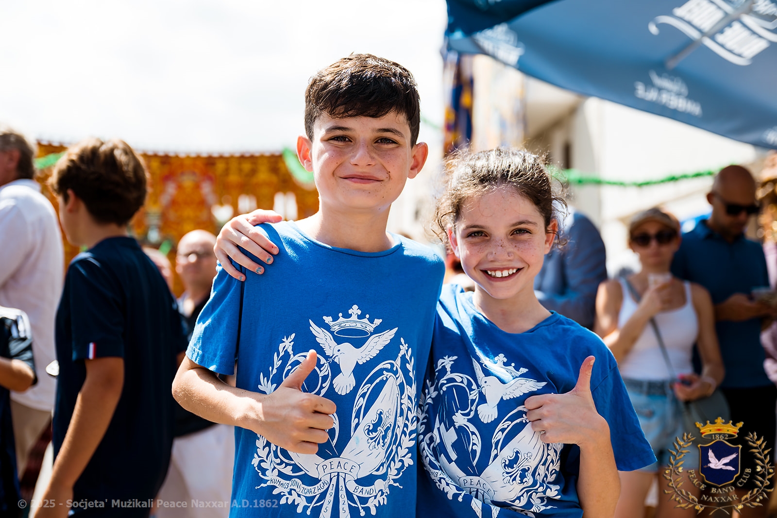 Nhar it-8 ta' Settembru filgħodu f'jum il-Festa ta' Marija Bambina ġewwa l-Pjazza Naxxarijja fost il-ferħ tal-partitarji tas-Soċjeta' Mużikali Peace.