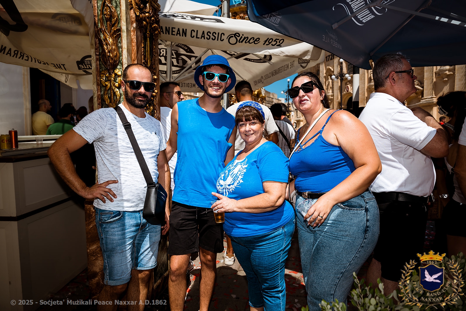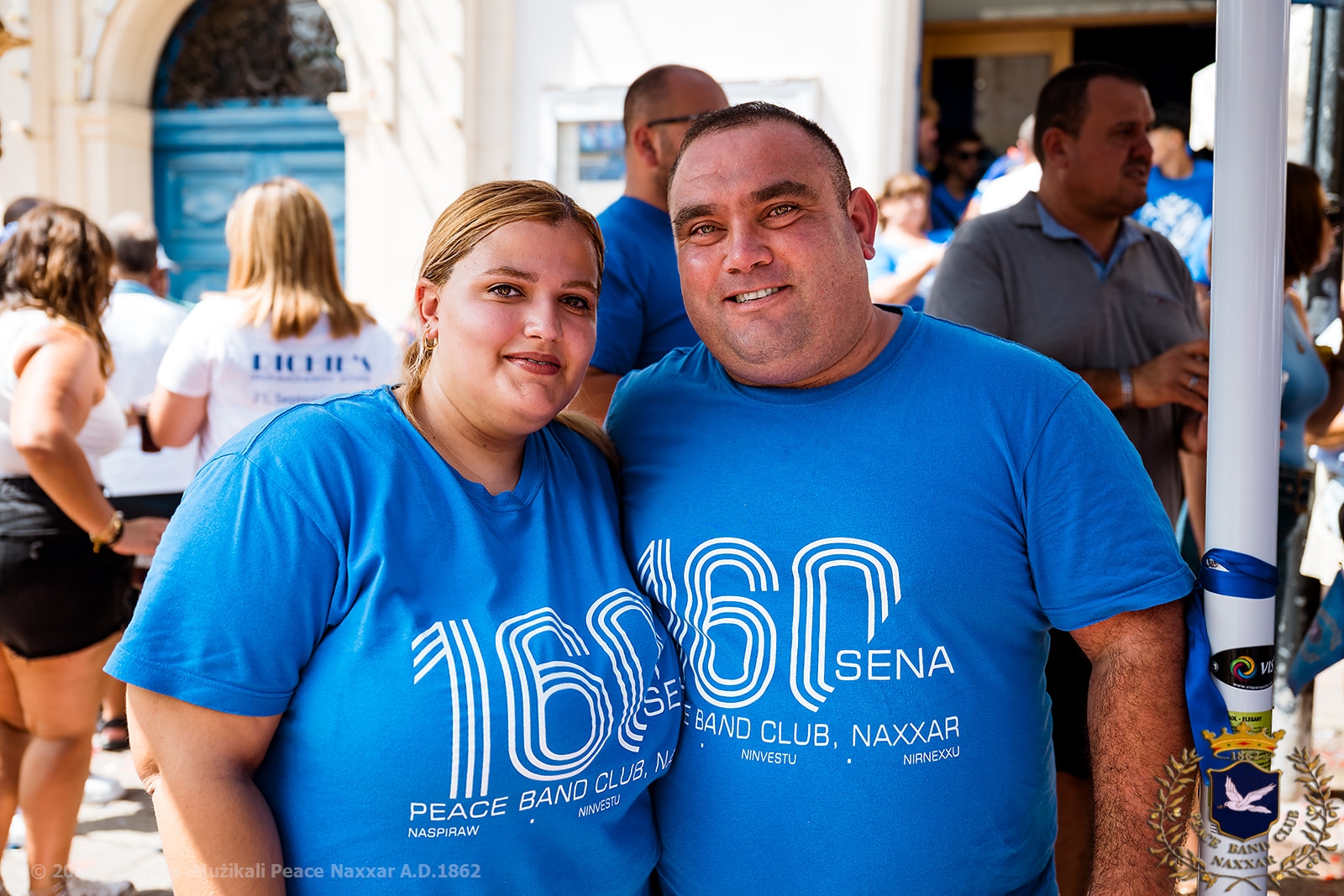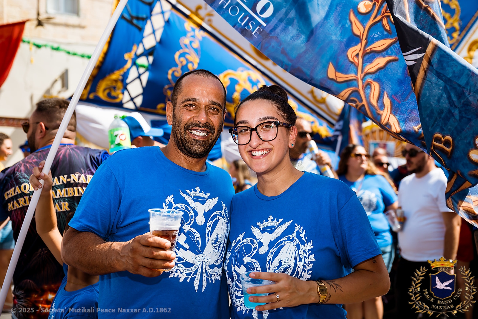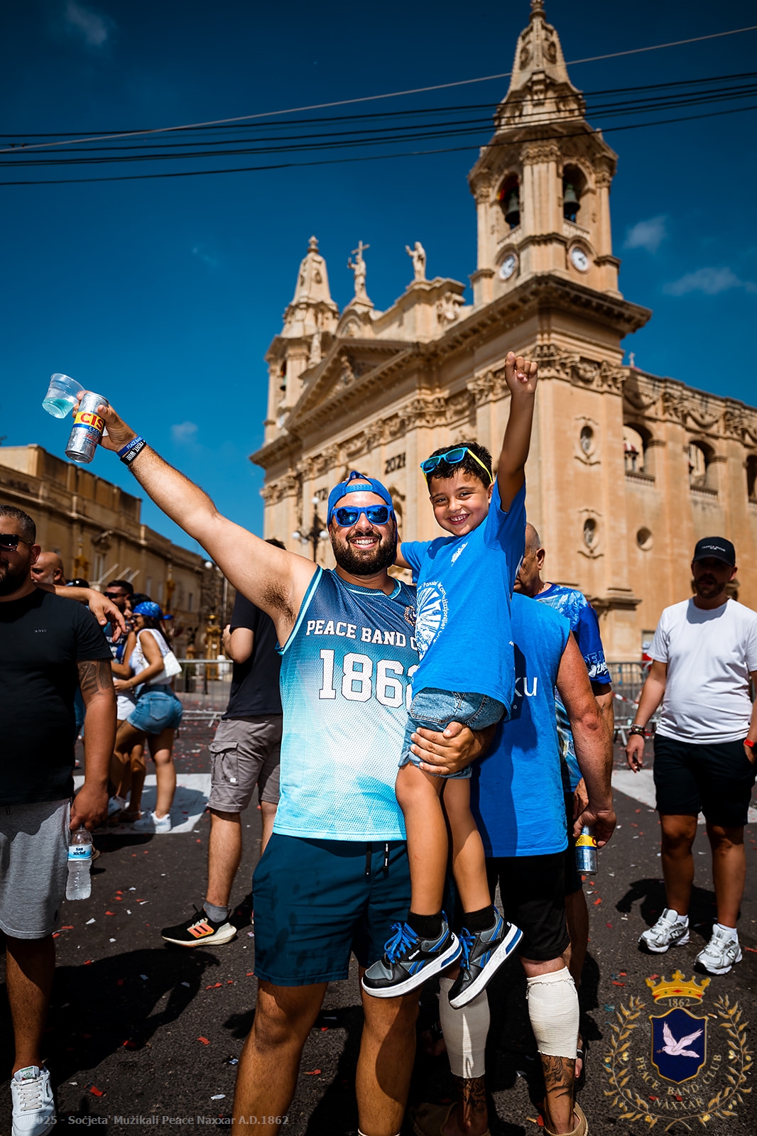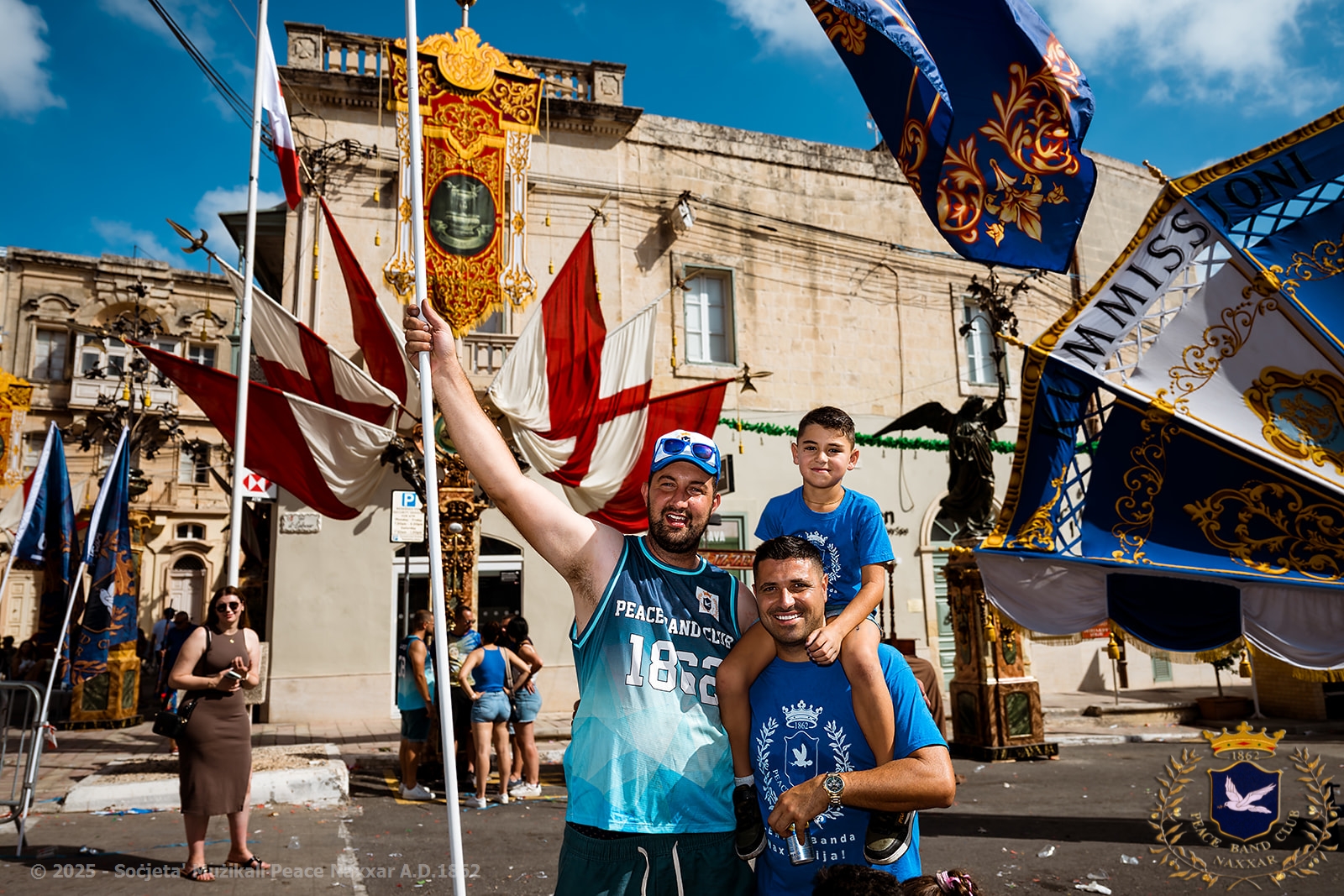 Nhar it-8 ta' Settembru filgħodu f'jum il-Festa ta' Marija Bambina ġewwa l-Pjazza Naxxarijja fost il-ferħ tal-partitarji tas-Soċjeta' Mużikali Peace.