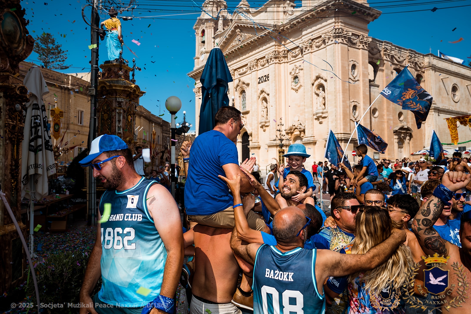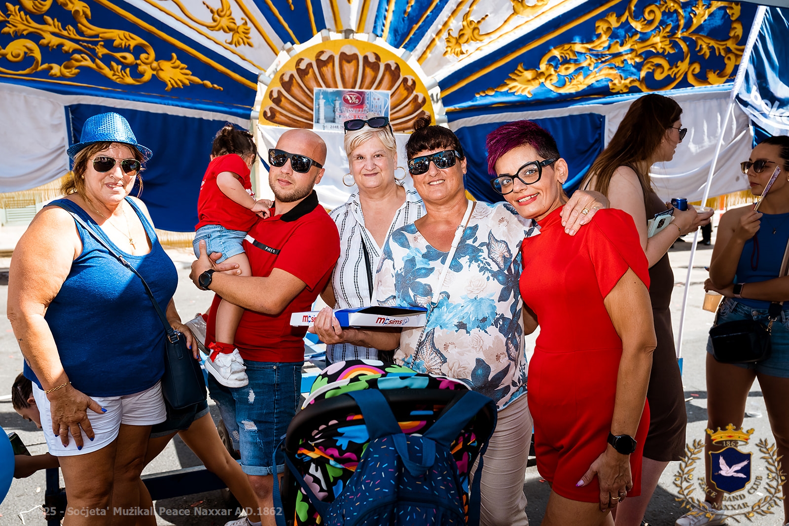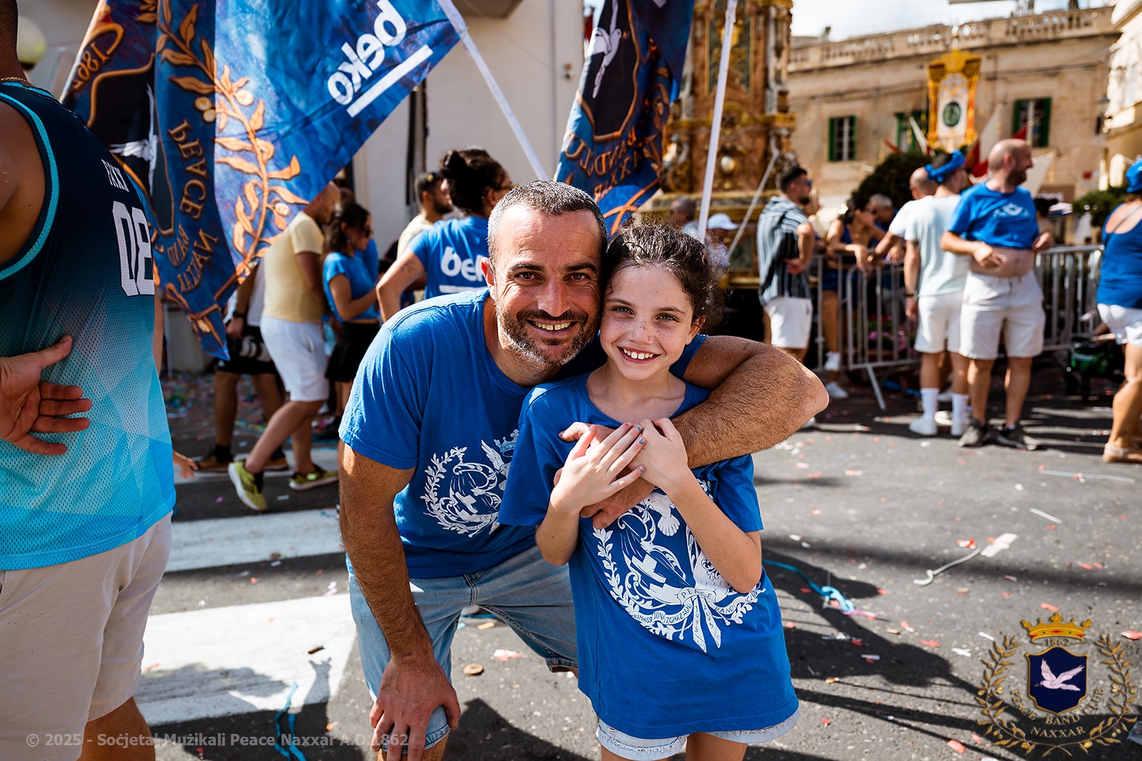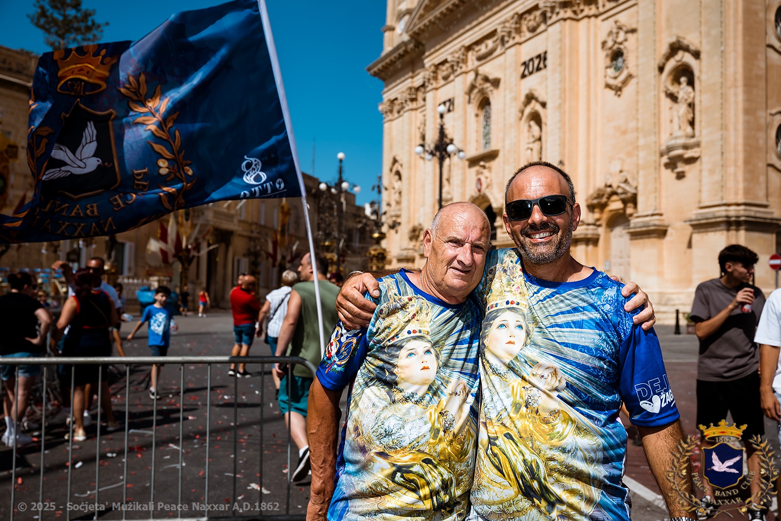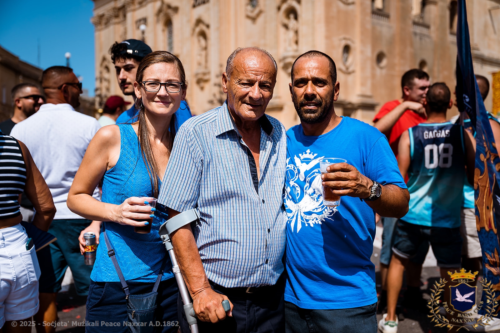 Nhar it-8 ta' Settembru filgħodu f'jum il-Festa ta' Marija Bambina ġewwa l-Pjazza Naxxarijja fost il-ferħ tal-partitarji tas-Soċjeta' Mużikali Peace.