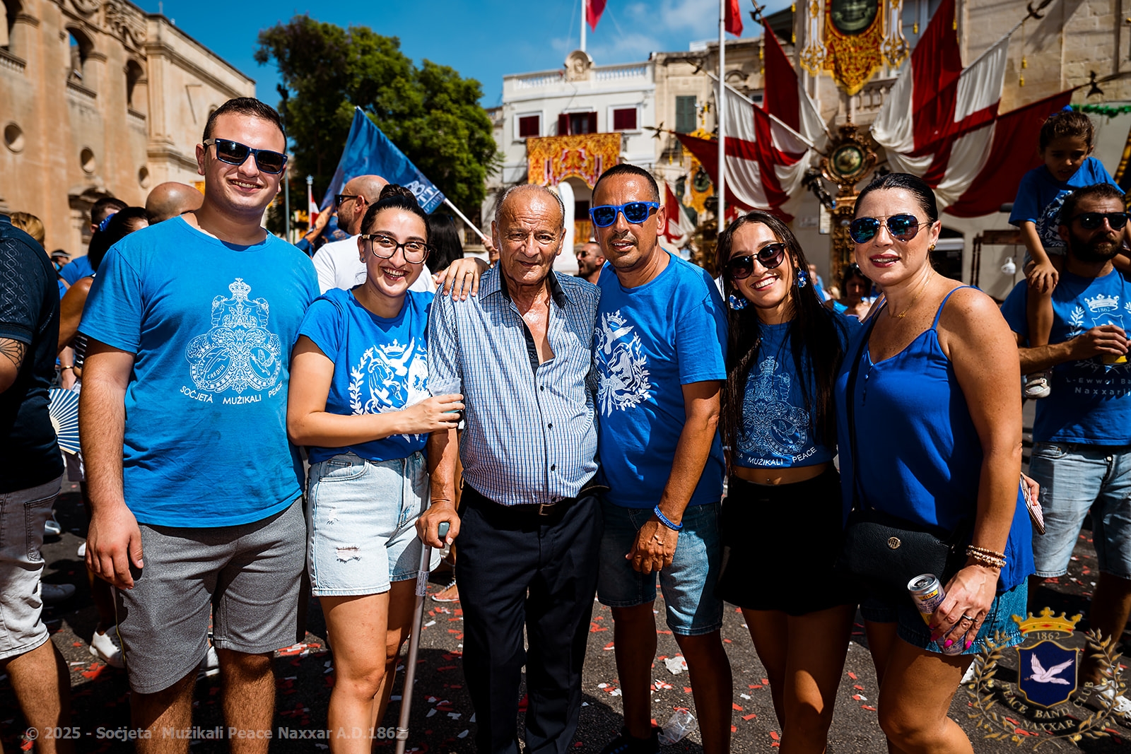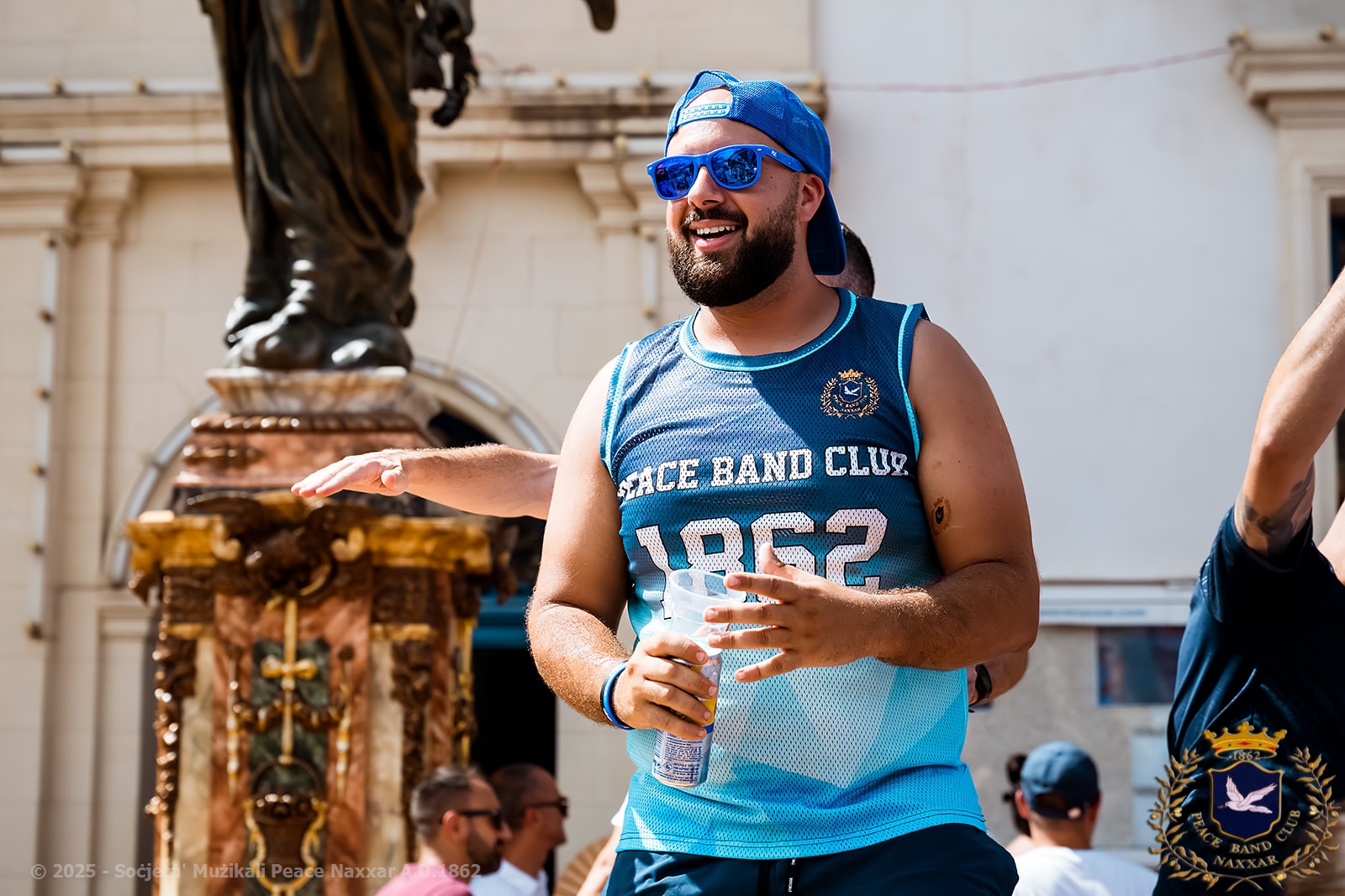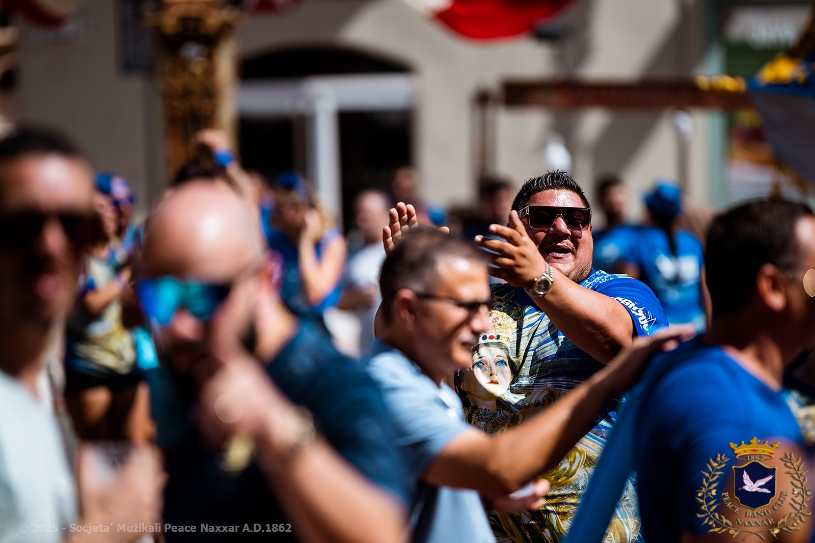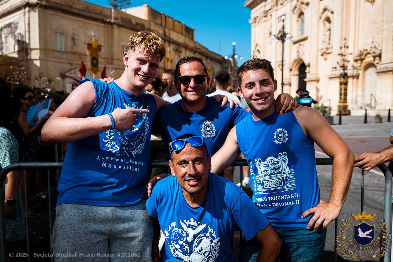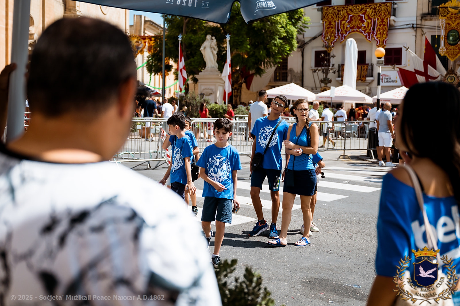 Nhar it-8 ta' Settembru filgħodu f'jum il-Festa ta' Marija Bambina ġewwa l-Pjazza Naxxarijja fost il-ferħ tal-partitarji tas-Soċjeta' Mużikali Peace.