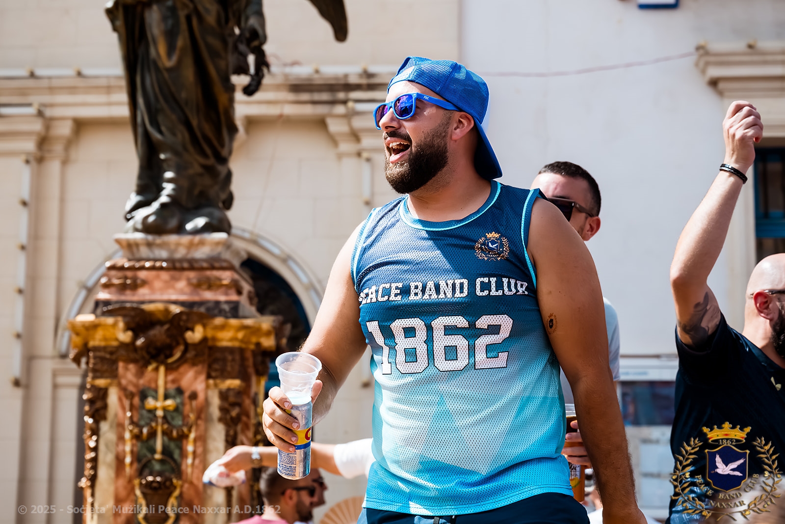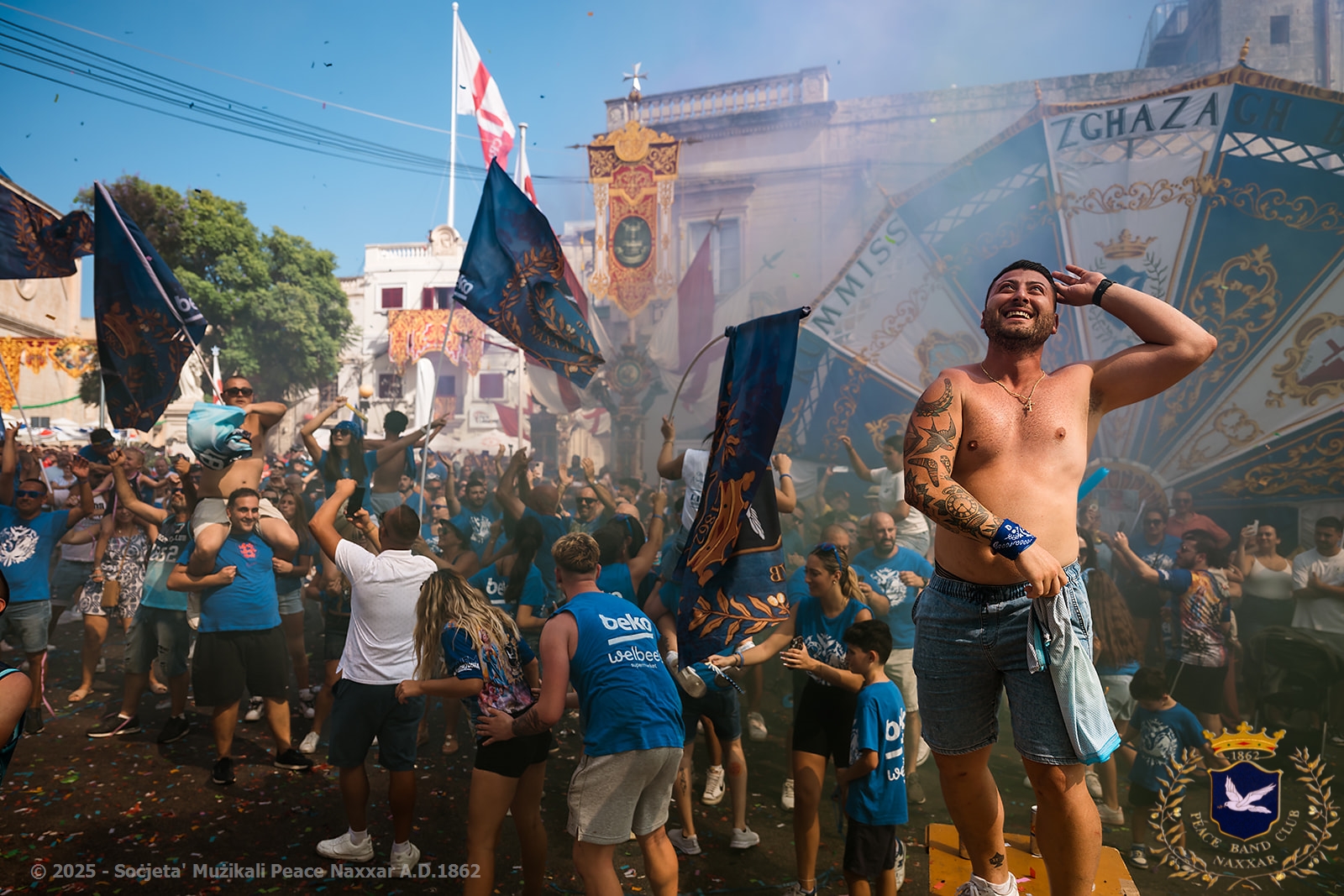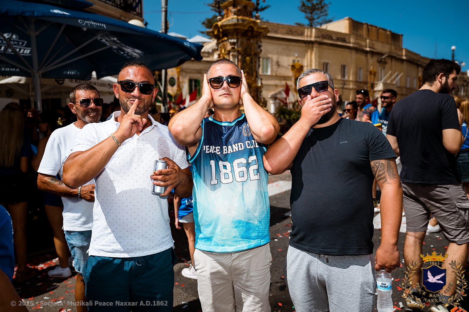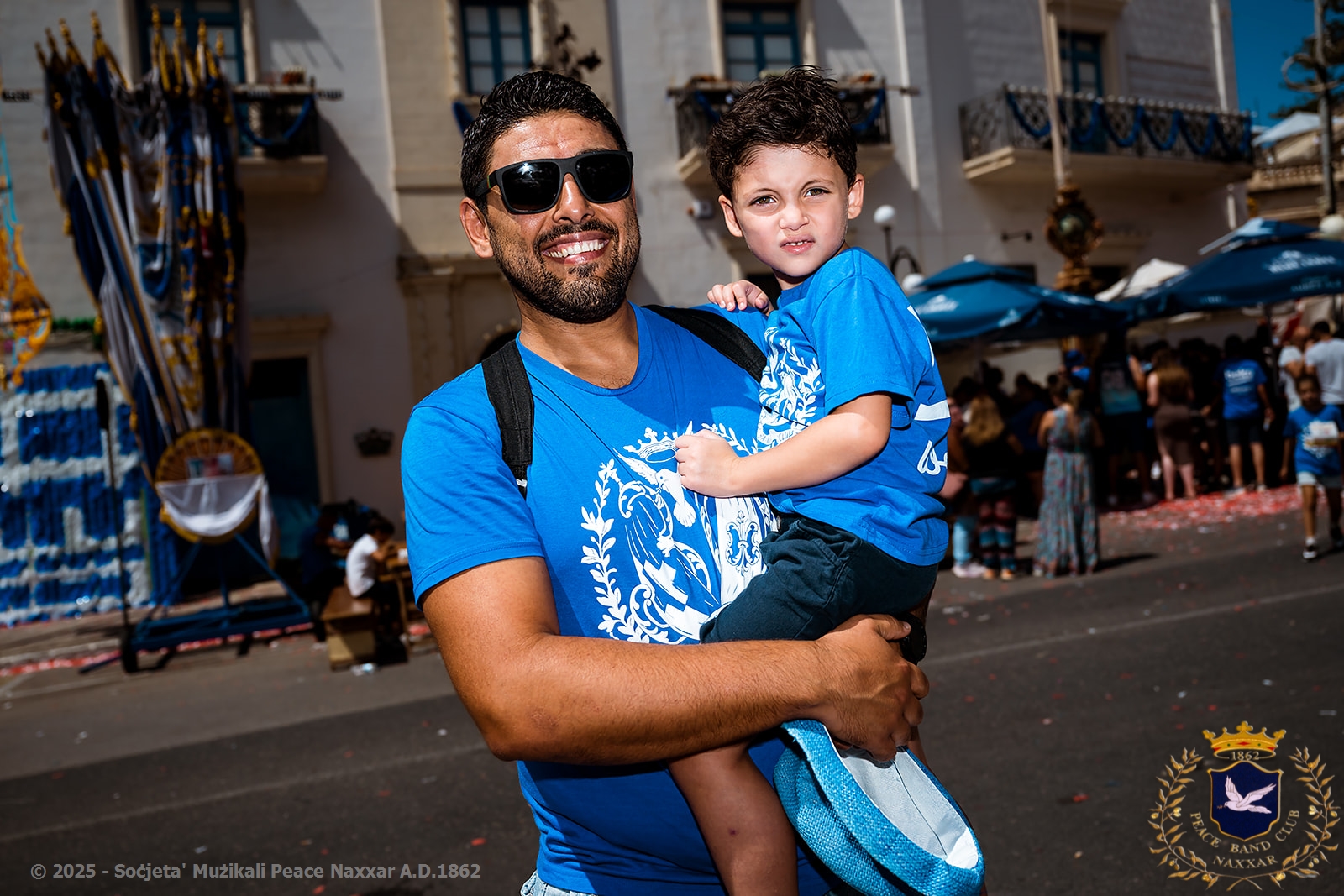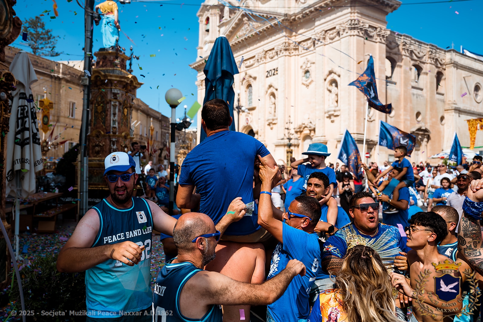 Nhar it-8 ta' Settembru filgħodu f'jum il-Festa ta' Marija Bambina ġewwa l-Pjazza Naxxarijja fost il-ferħ tal-partitarji tas-Soċjeta' Mużikali Peace.