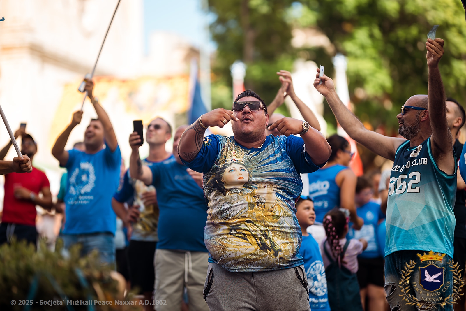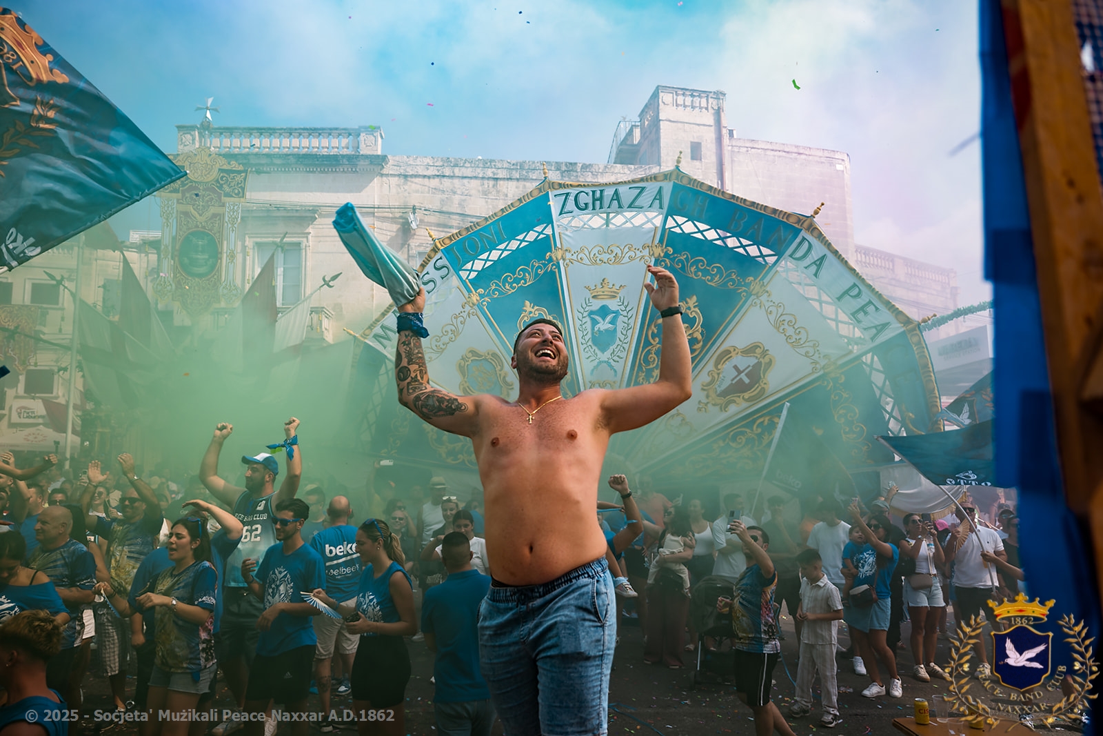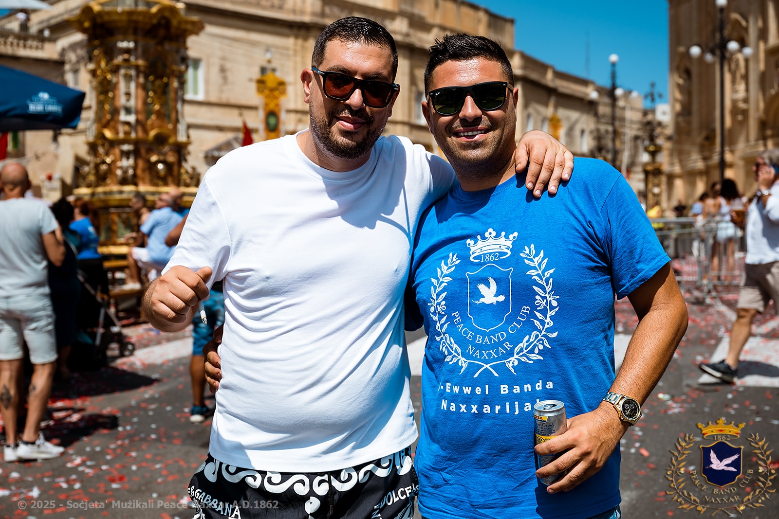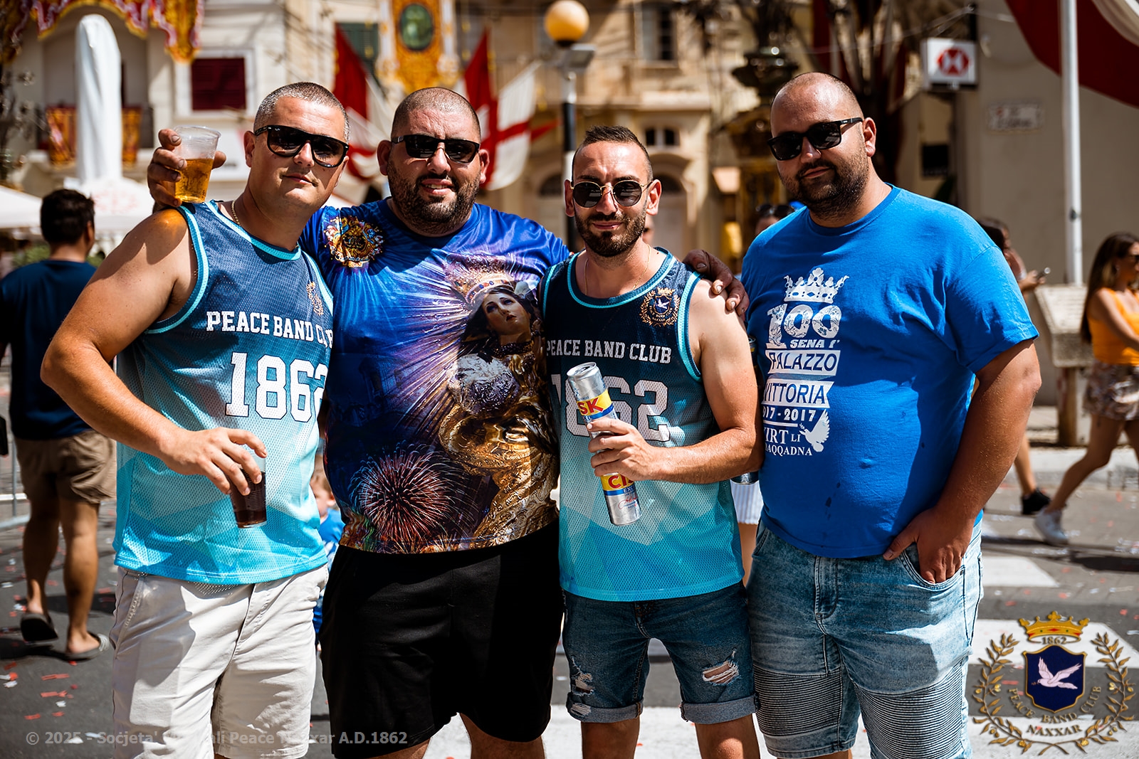 Nhar it-8 ta' Settembru filgħodu f'jum il-Festa ta' Marija Bambina ġewwa l-Pjazza Naxxarijja fost il-ferħ tal-partitarji tas-Soċjeta' Mużikali Peace.