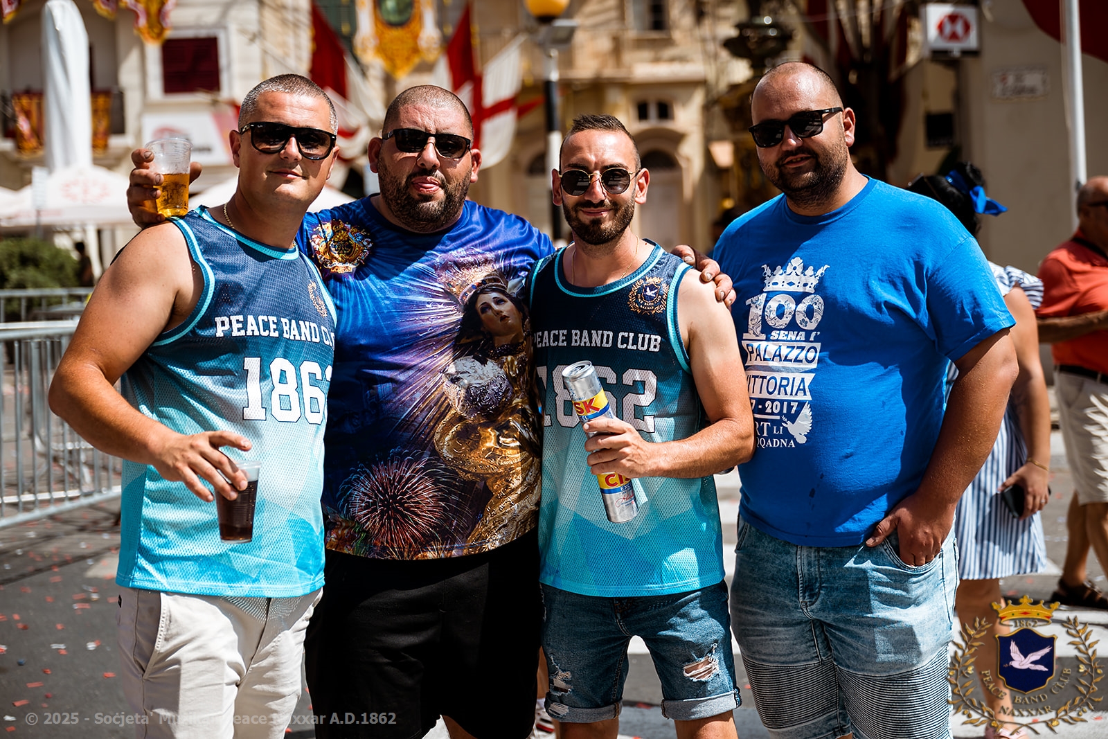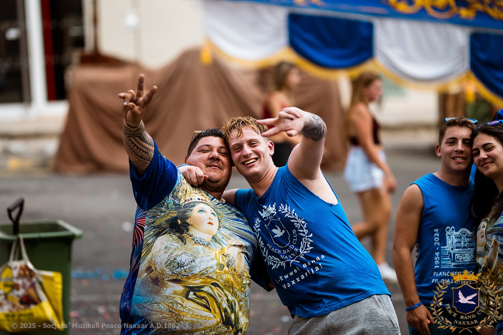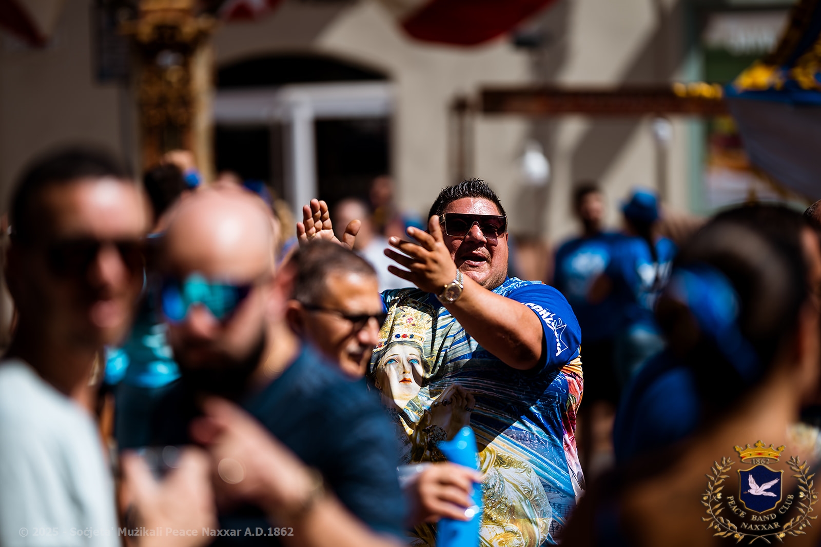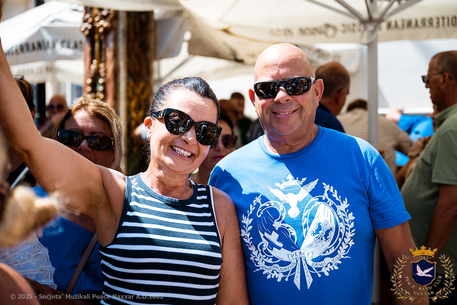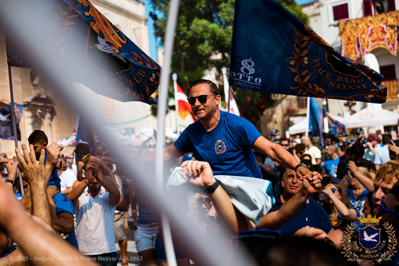 Nhar it-8 ta' Settembru filgħodu f'jum il-Festa ta' Marija Bambina ġewwa l-Pjazza Naxxarijja fost il-ferħ tal-partitarji tas-Soċjeta' Mużikali Peace.