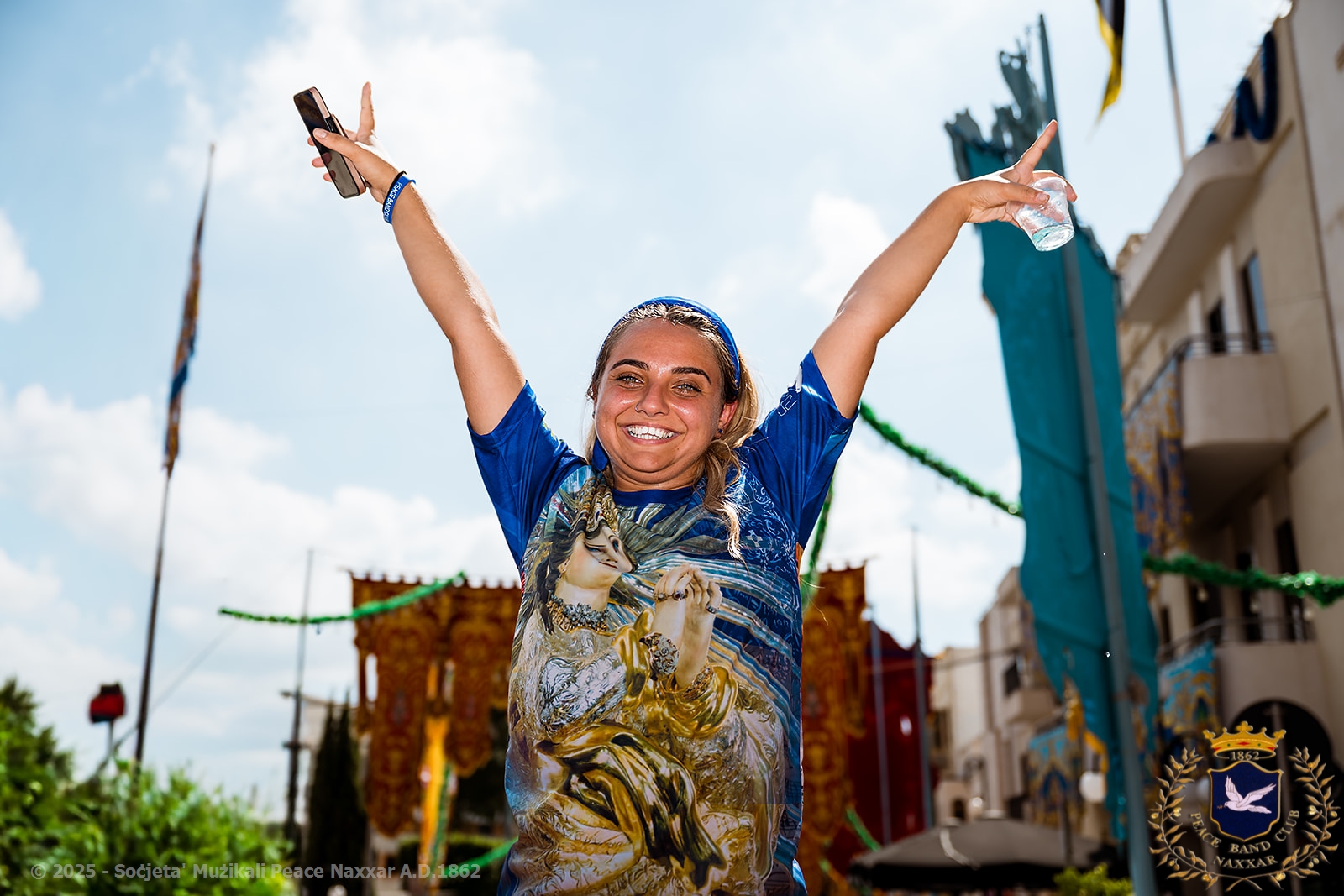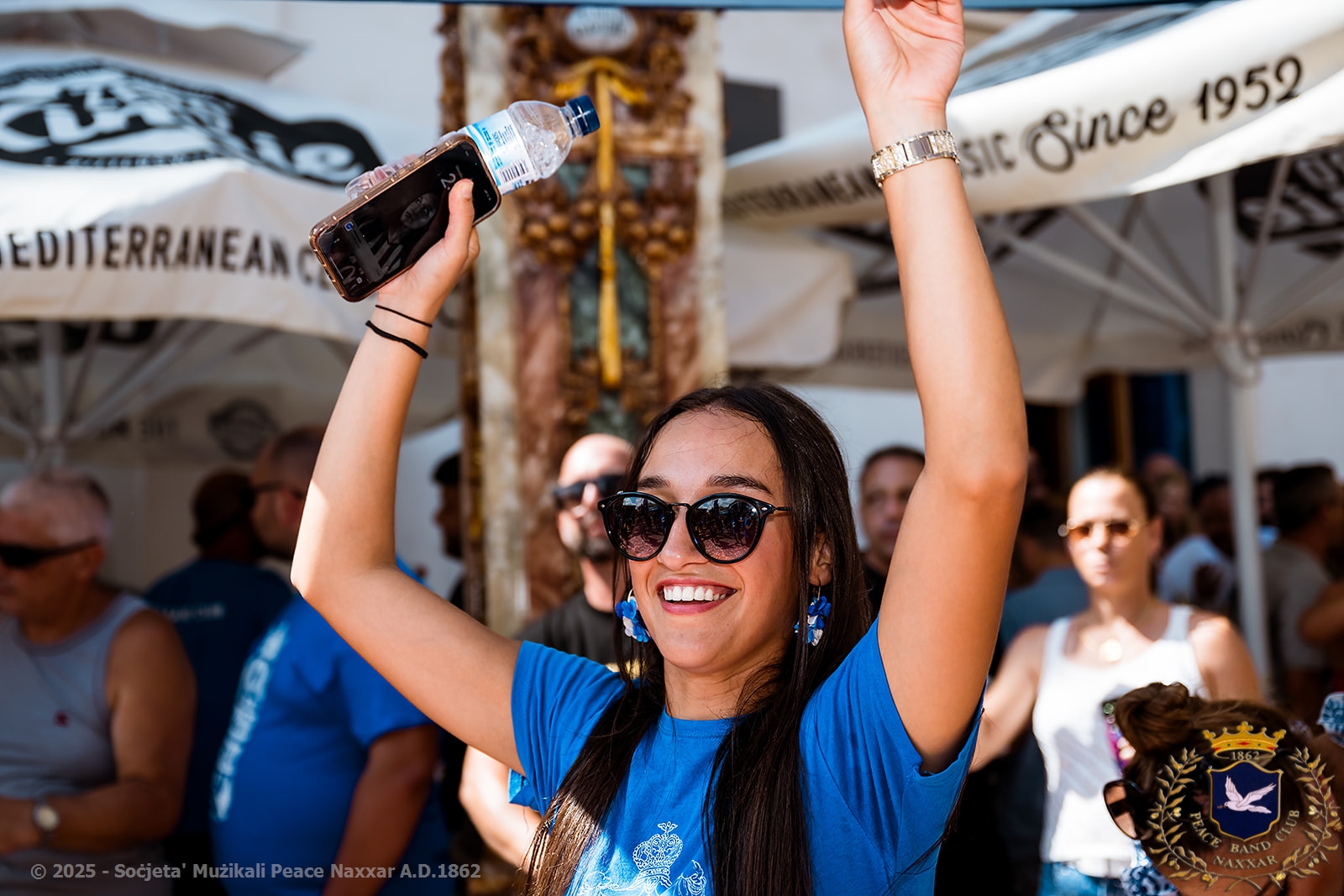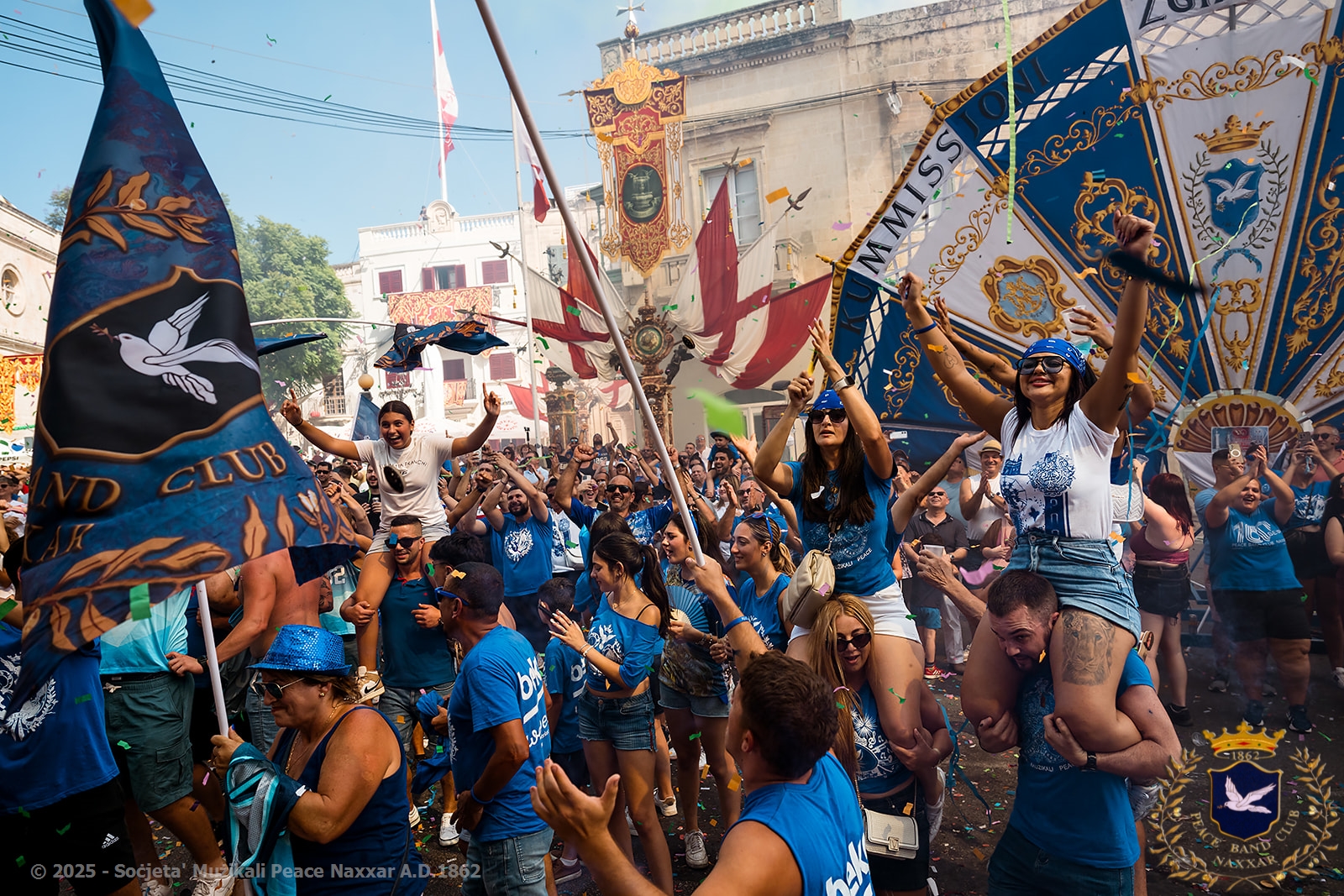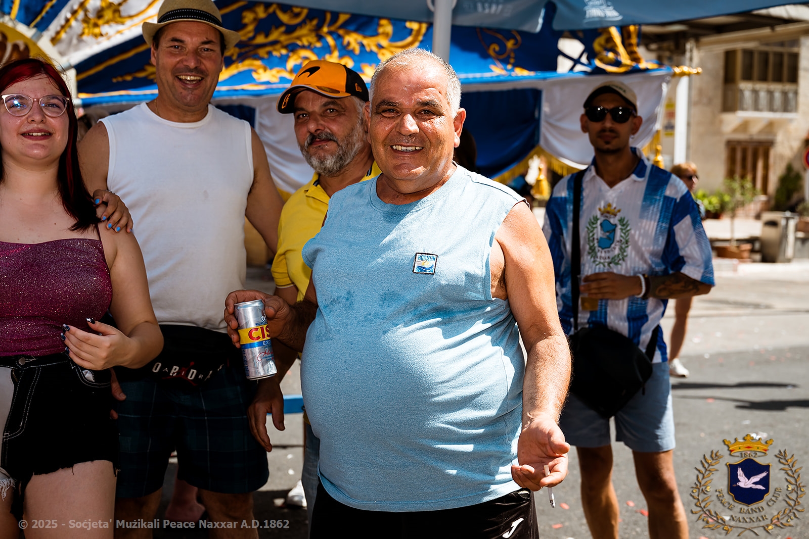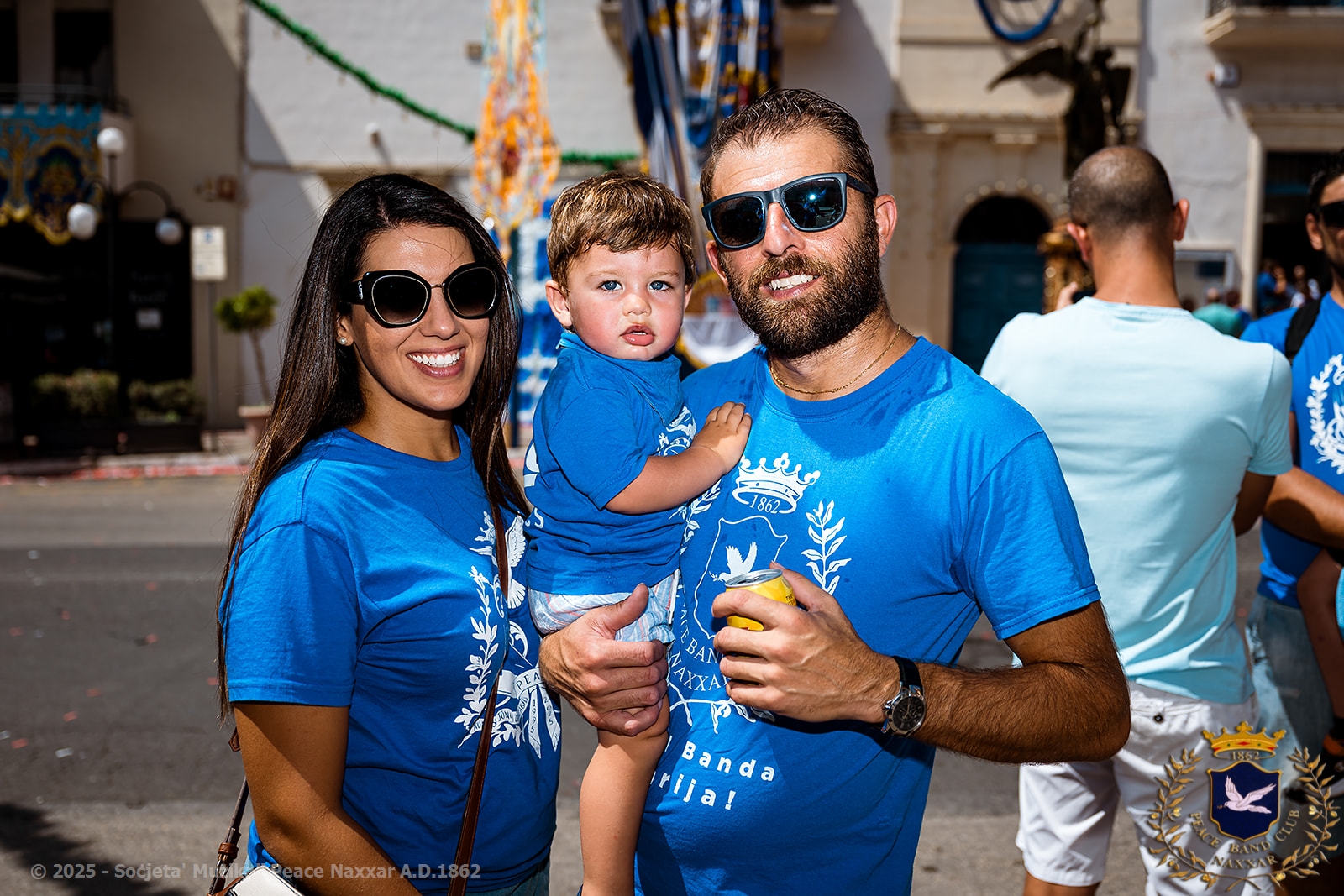 Nhar it-8 ta' Settembru filgħodu f'jum il-Festa ta' Marija Bambina ġewwa l-Pjazza Naxxarijja fost il-ferħ tal-partitarji tas-Soċjeta' Mużikali Peace.