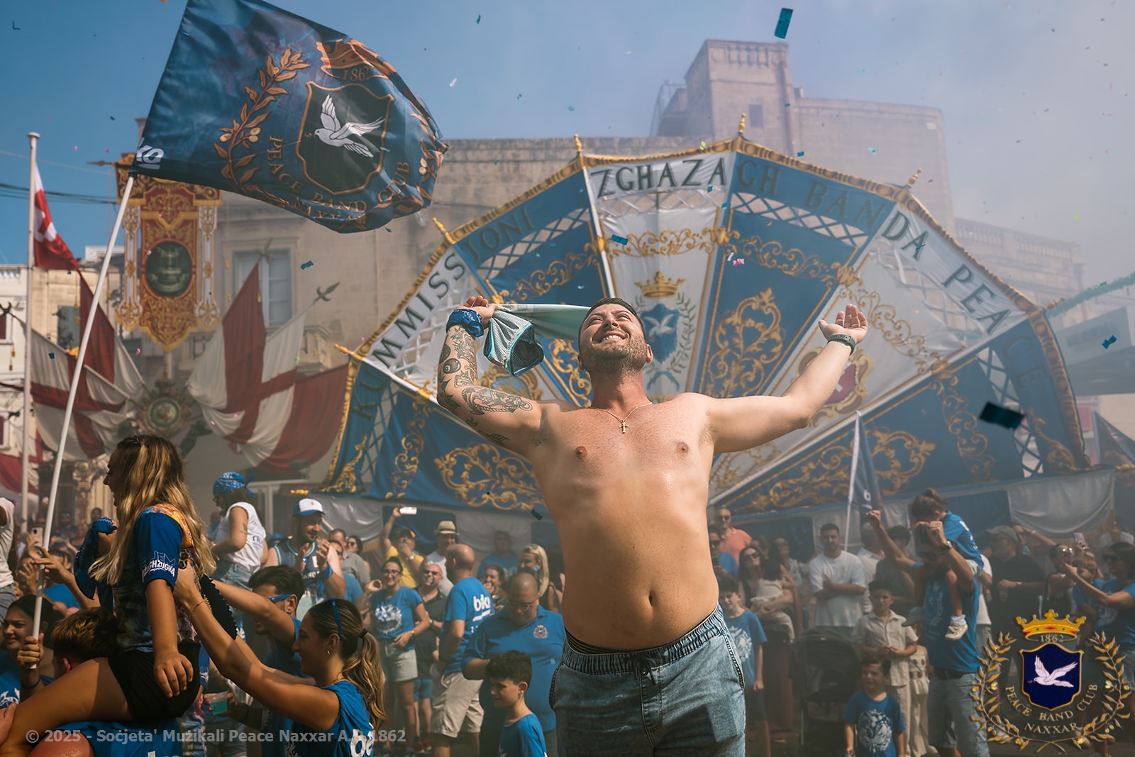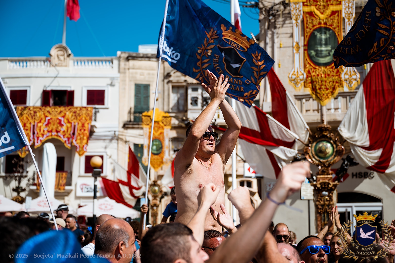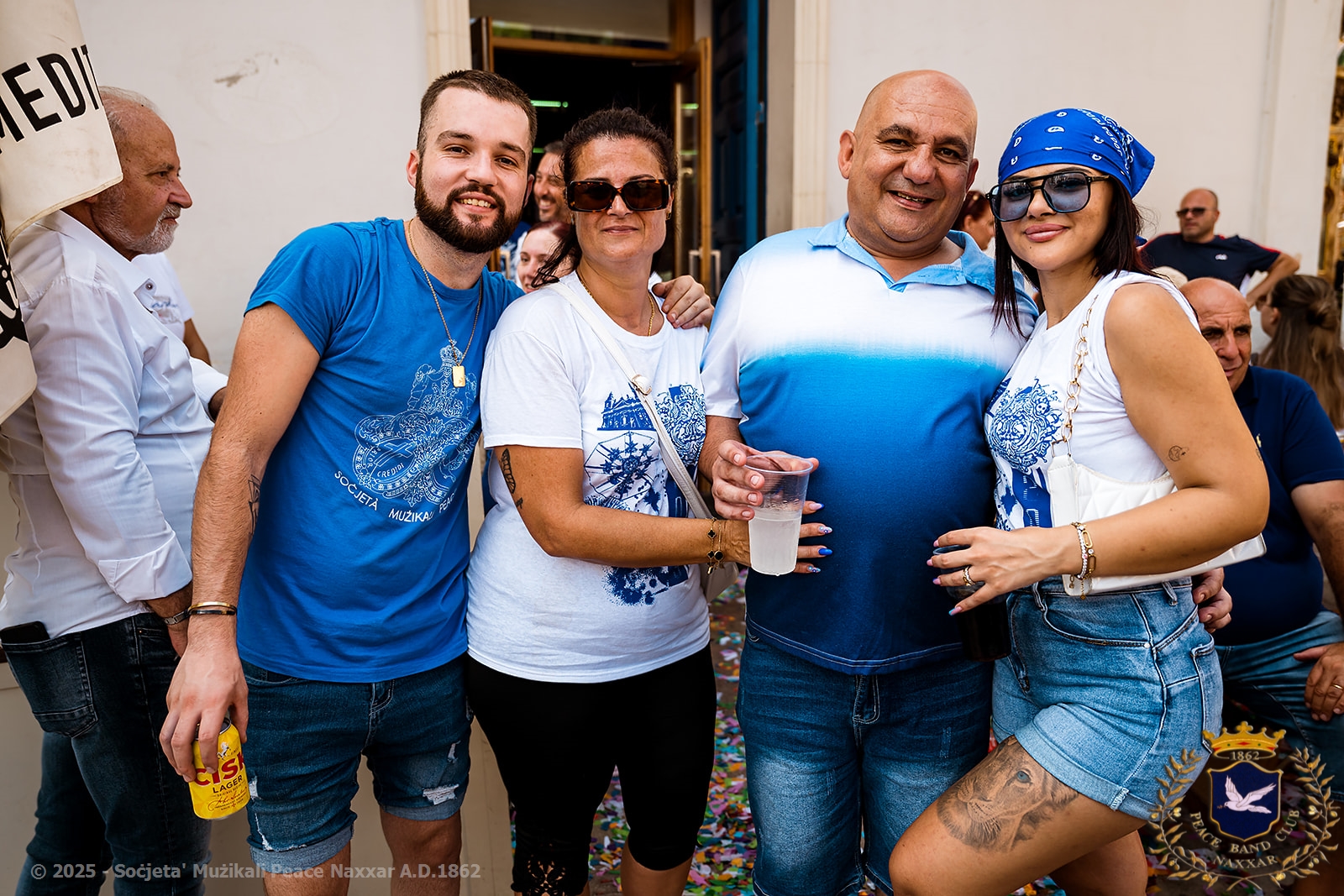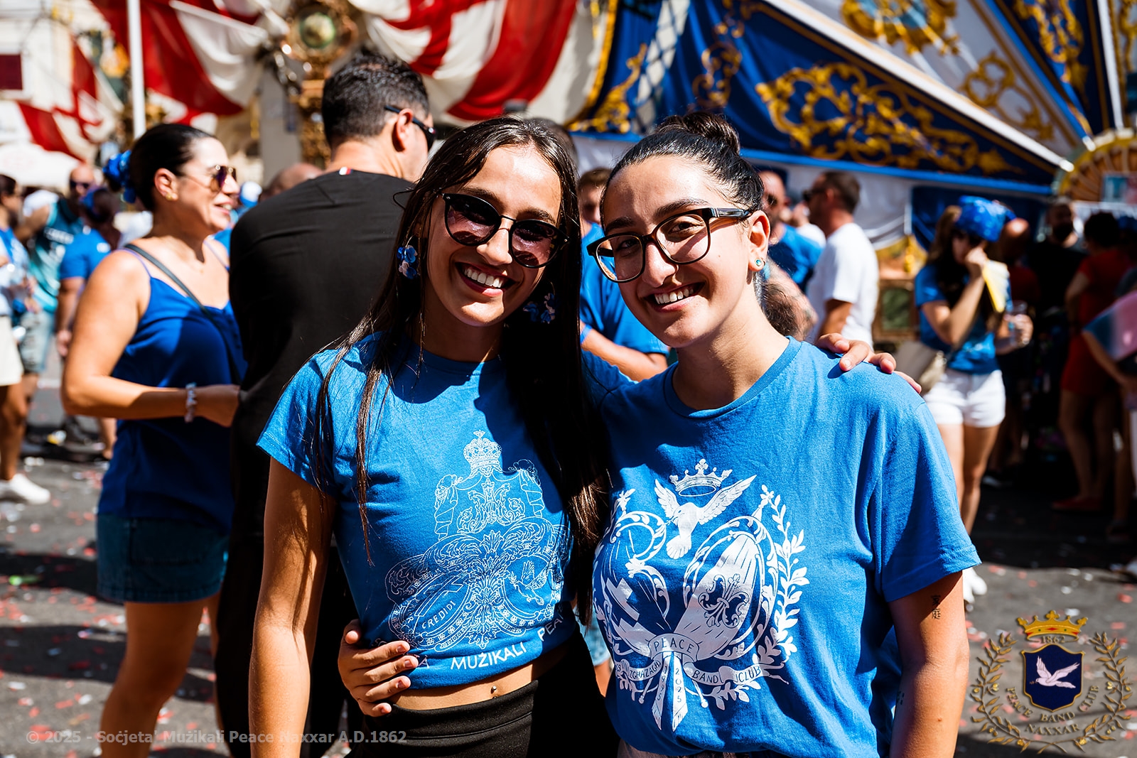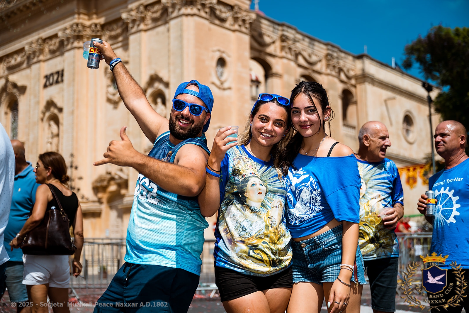 Nhar it-8 ta' Settembru filgħodu f'jum il-Festa ta' Marija Bambina ġewwa l-Pjazza Naxxarijja fost il-ferħ tal-partitarji tas-Soċjeta' Mużikali Peace.