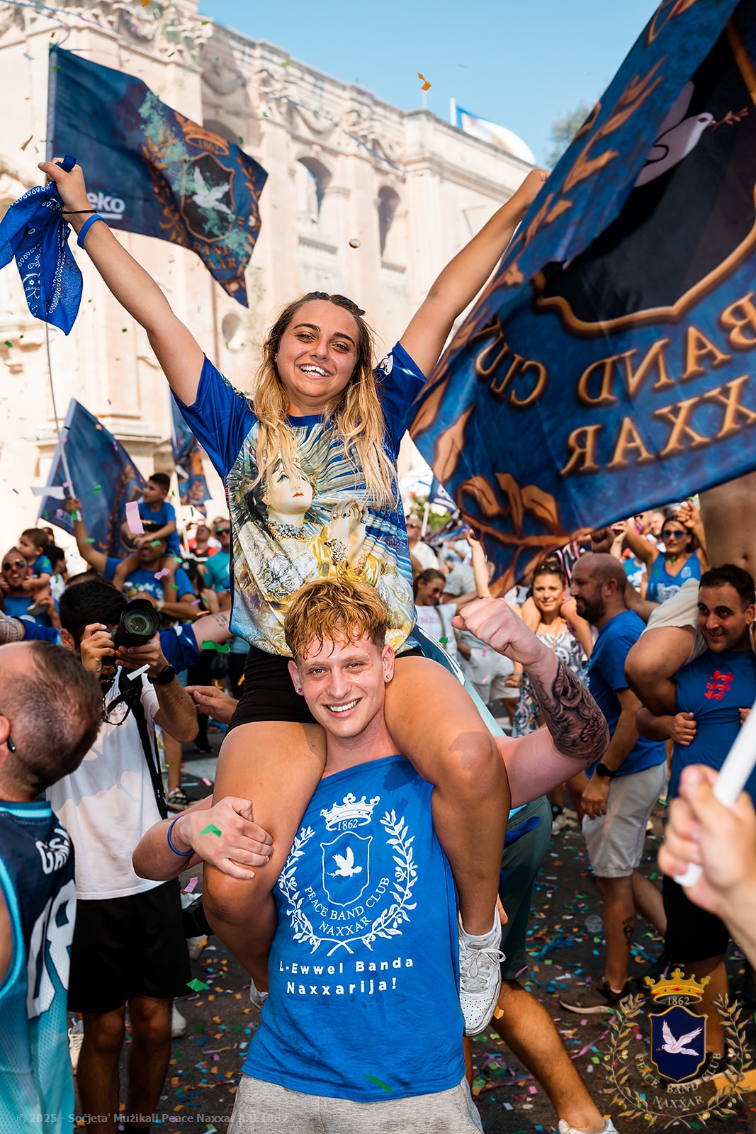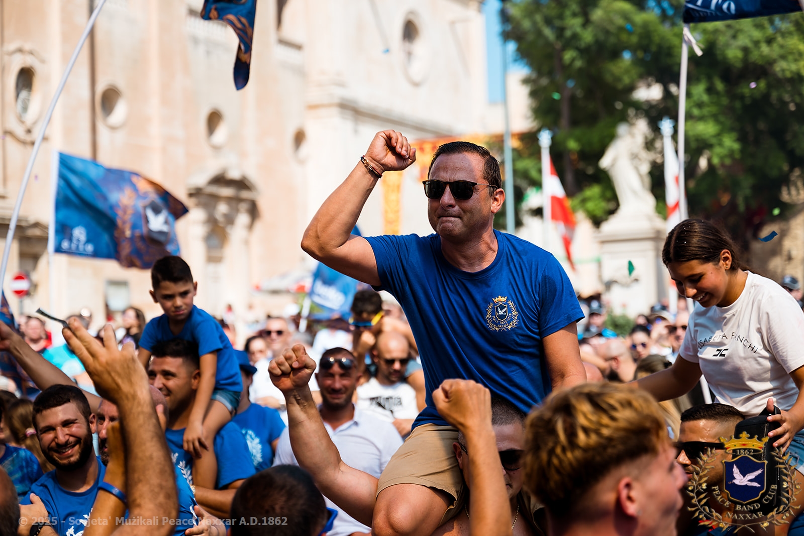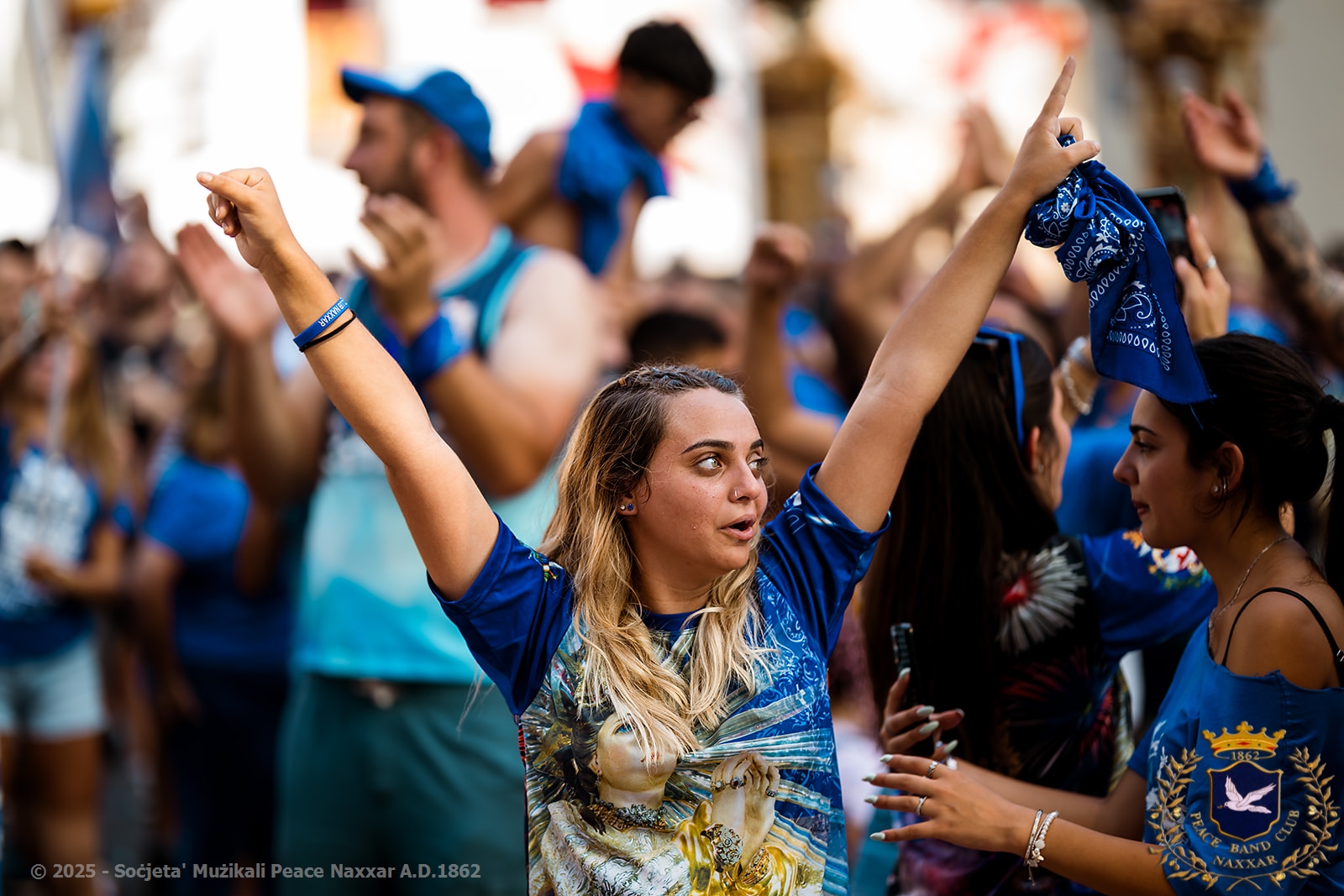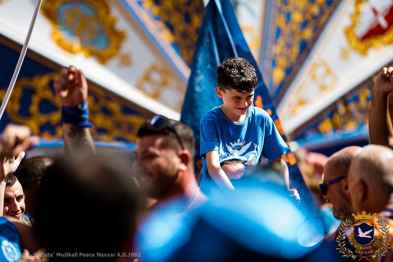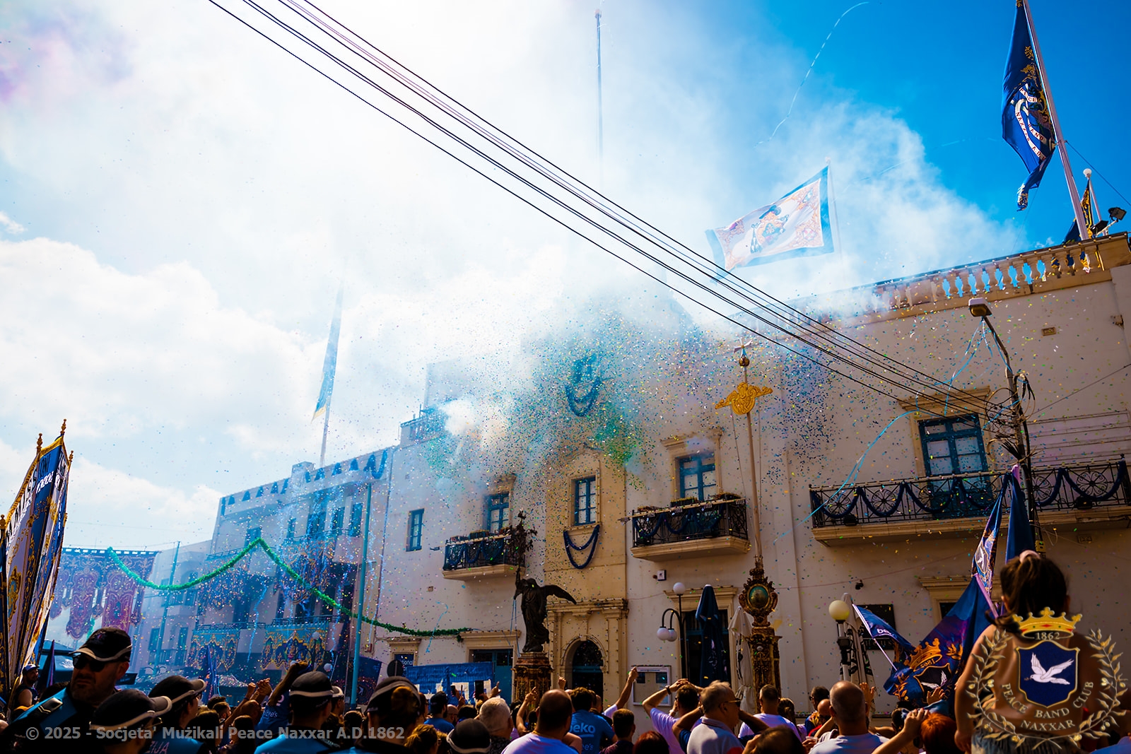 Nhar it-8 ta' Settembru filgħodu f'jum il-Festa ta' Marija Bambina ġewwa l-Pjazza Naxxarijja fost il-ferħ tal-partitarji tas-Soċjeta' Mużikali Peace.