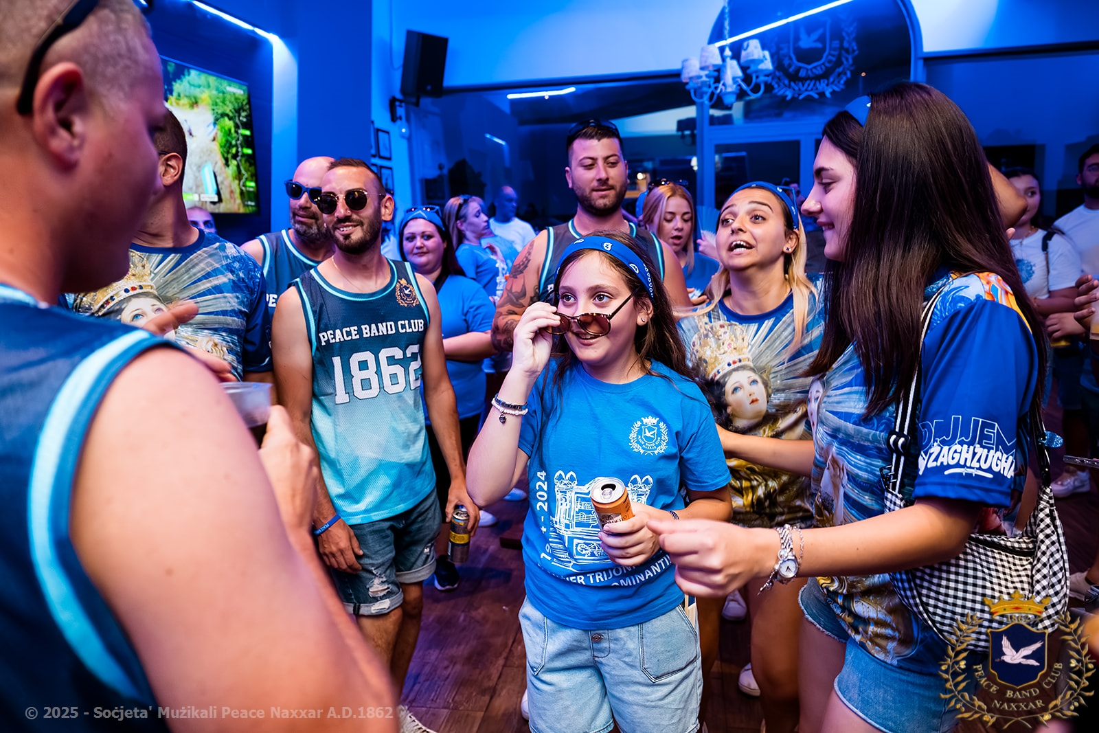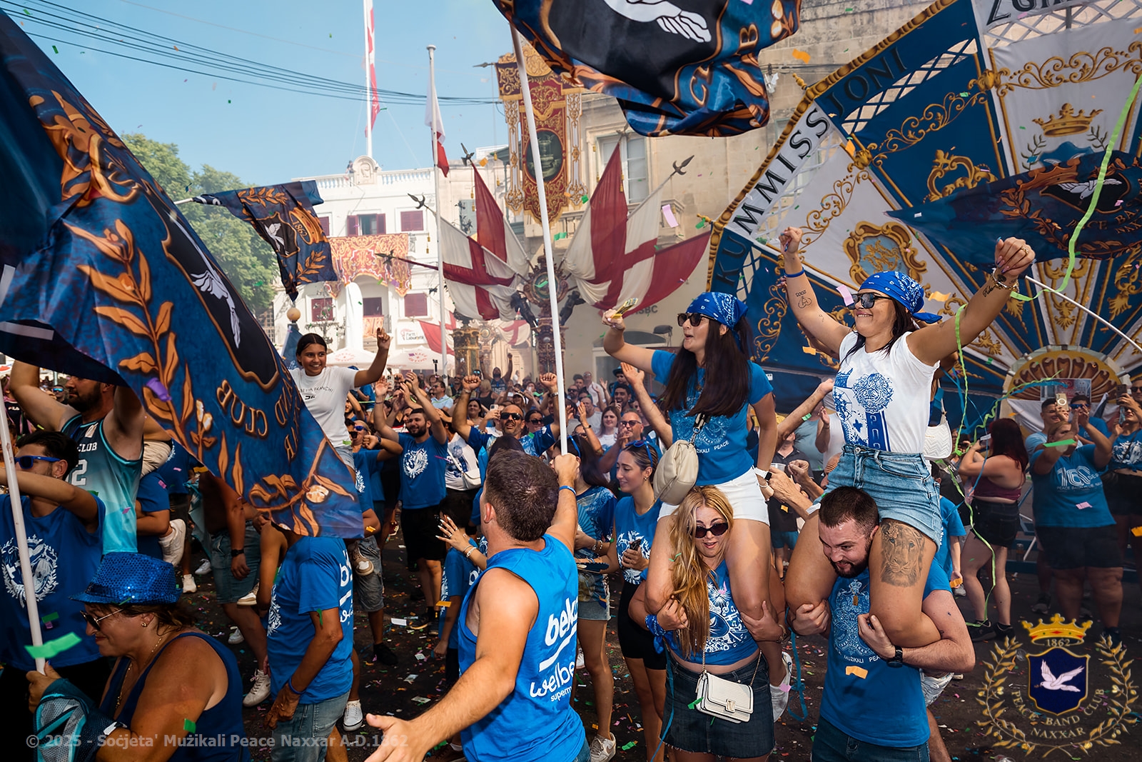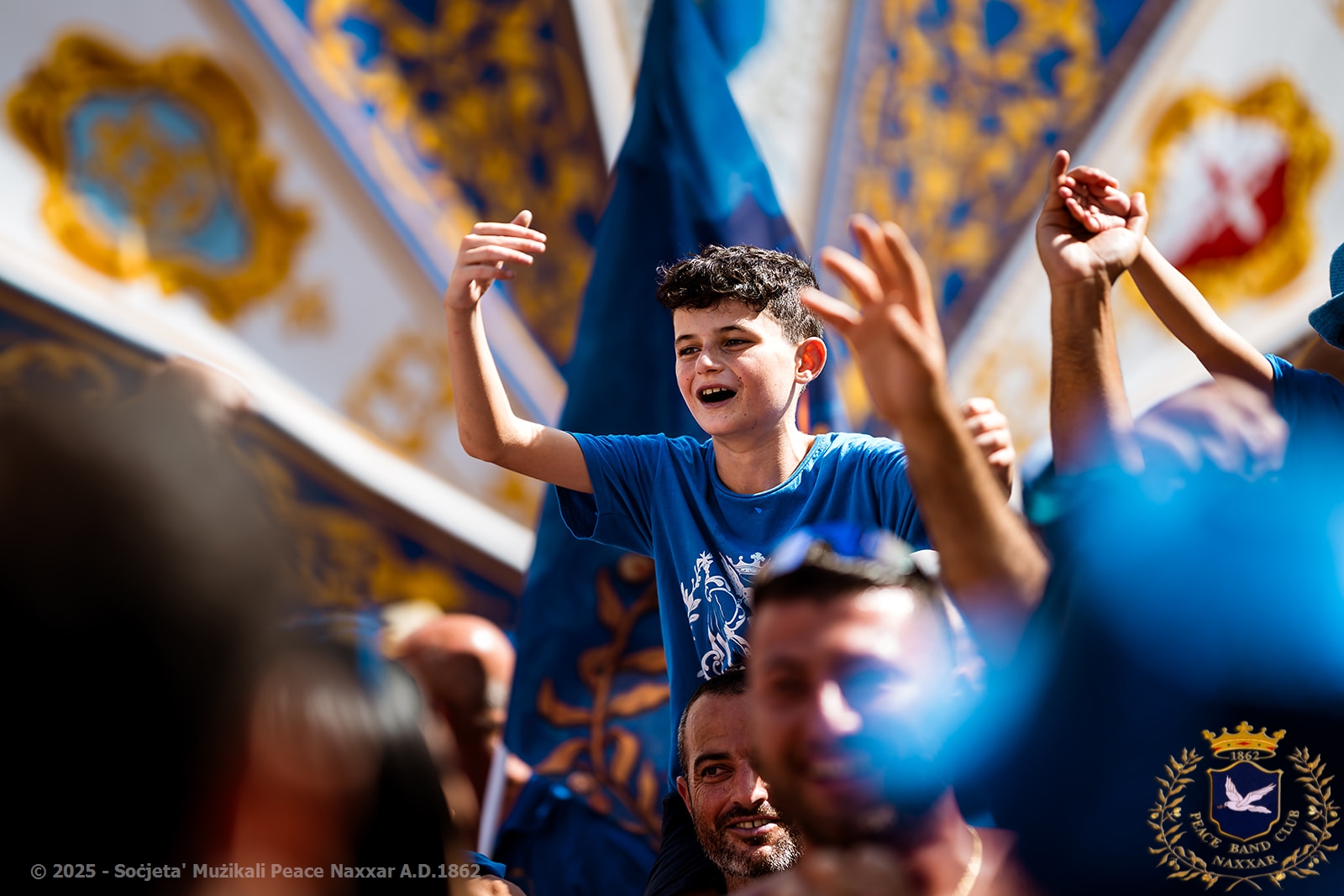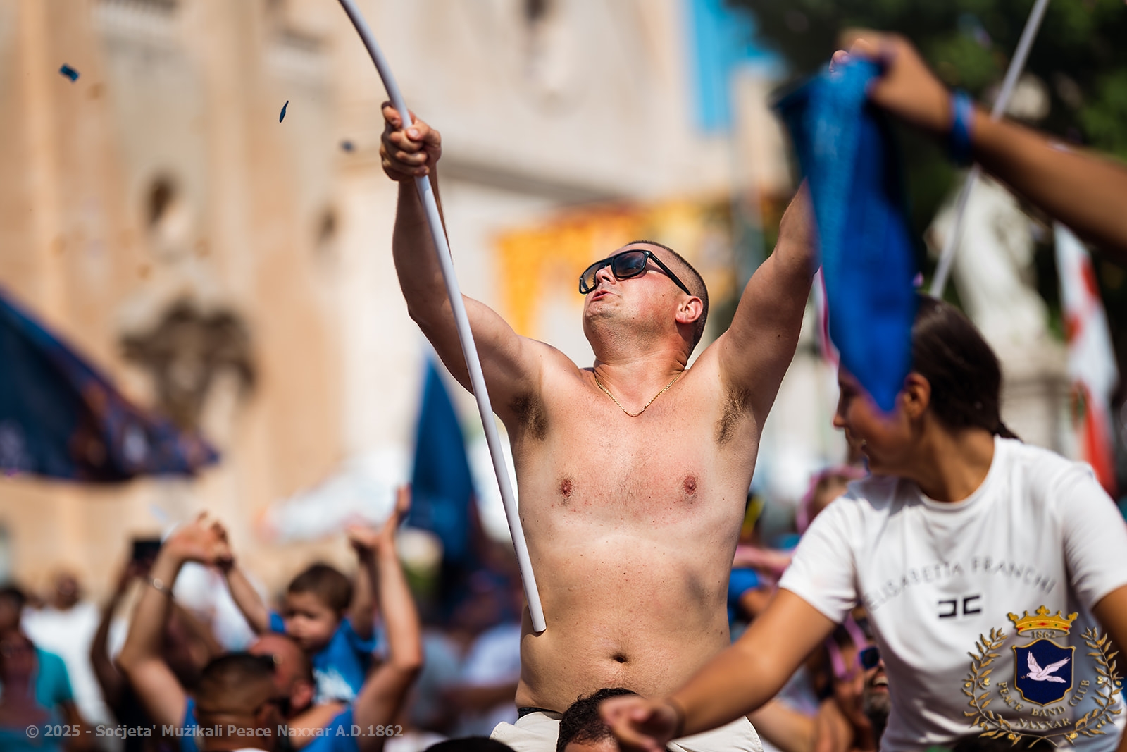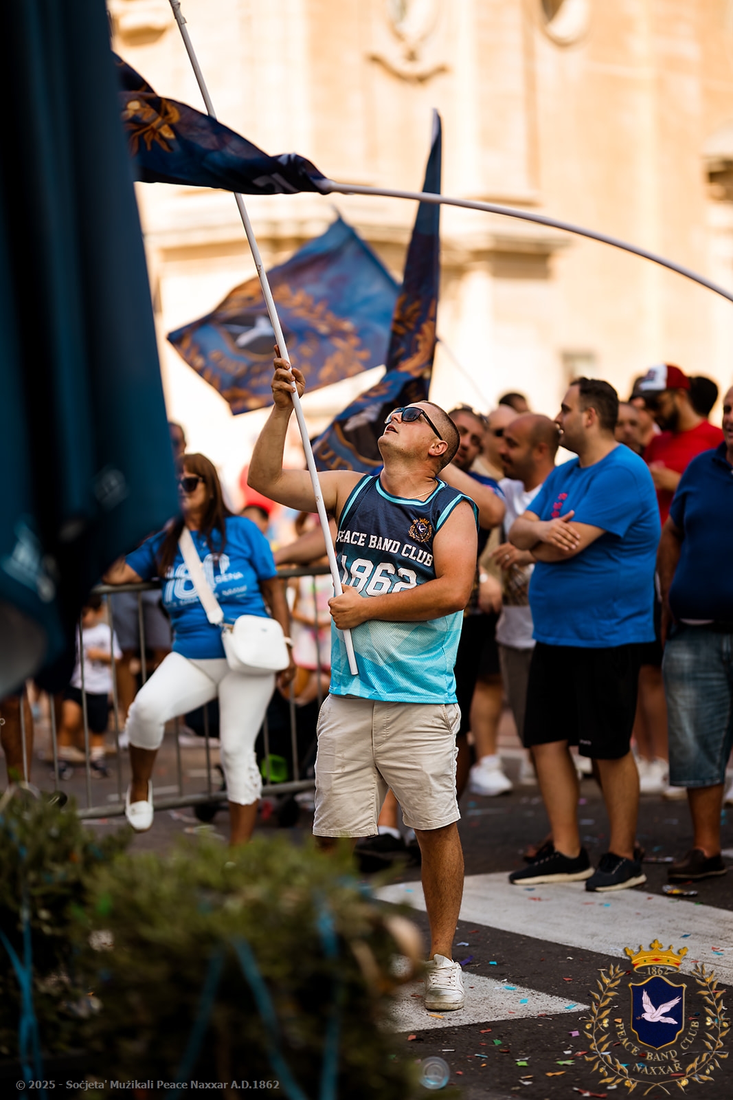 Nhar it-8 ta' Settembru filgħodu f'jum il-Festa ta' Marija Bambina ġewwa l-Pjazza Naxxarijja fost il-ferħ tal-partitarji tas-Soċjeta' Mużikali Peace.