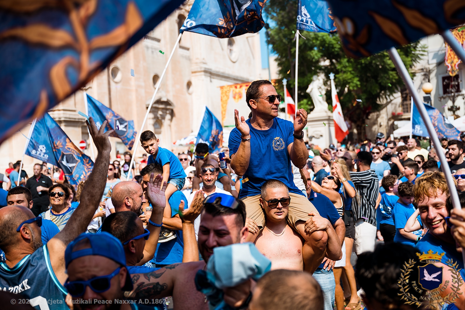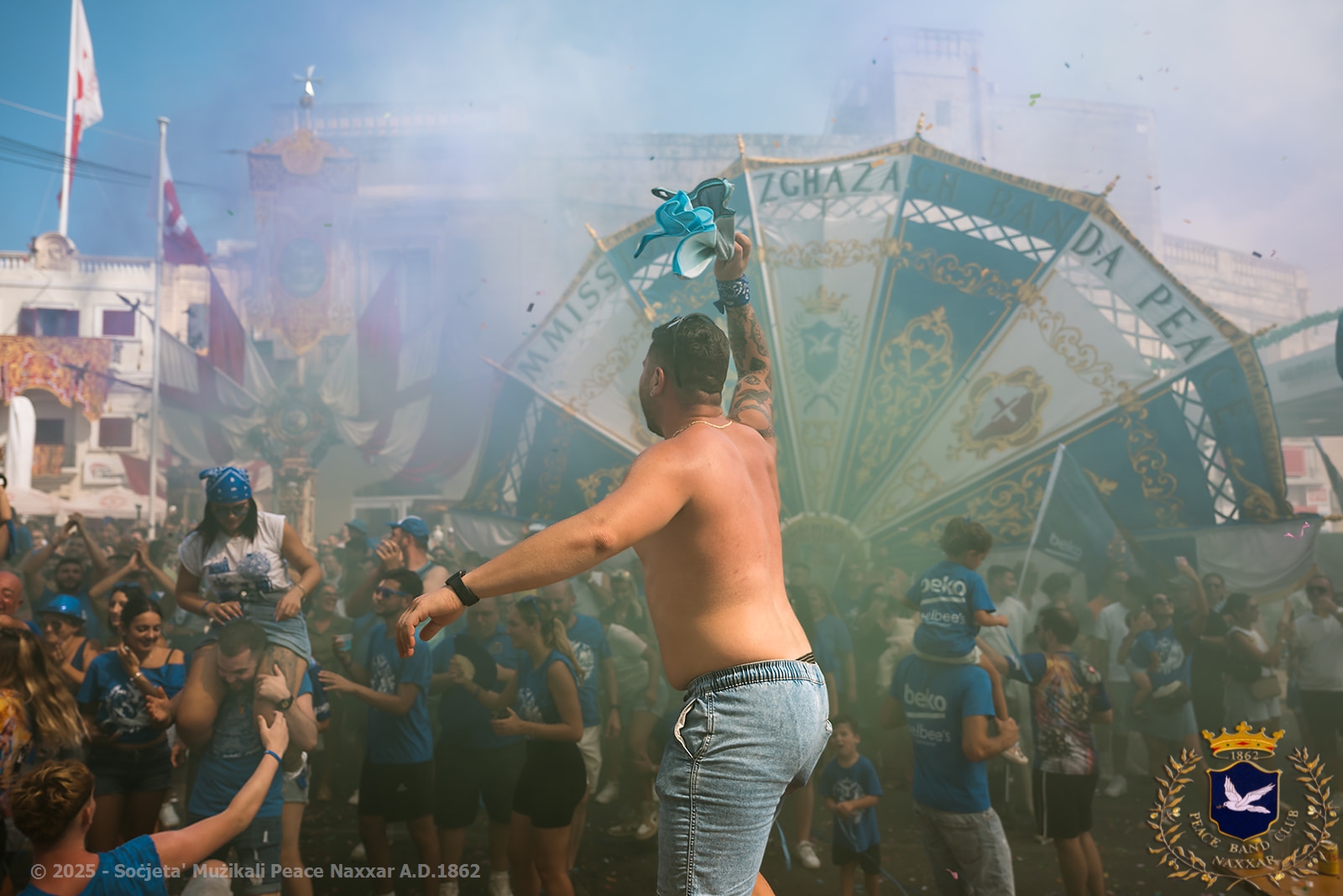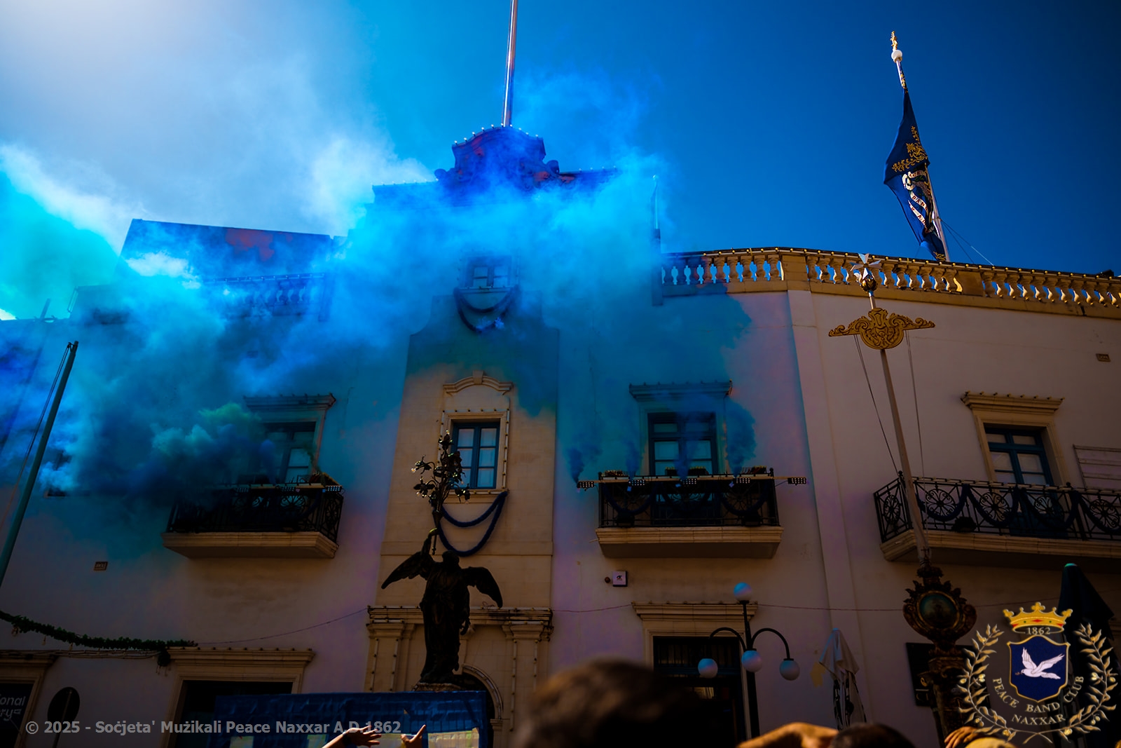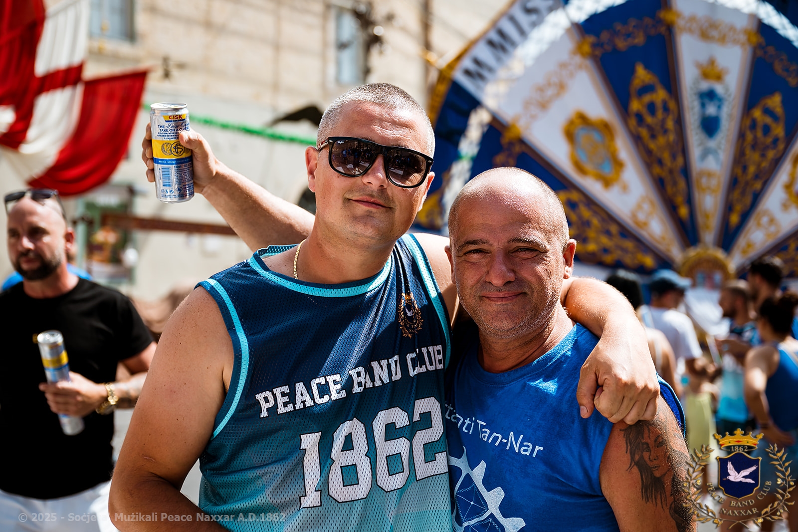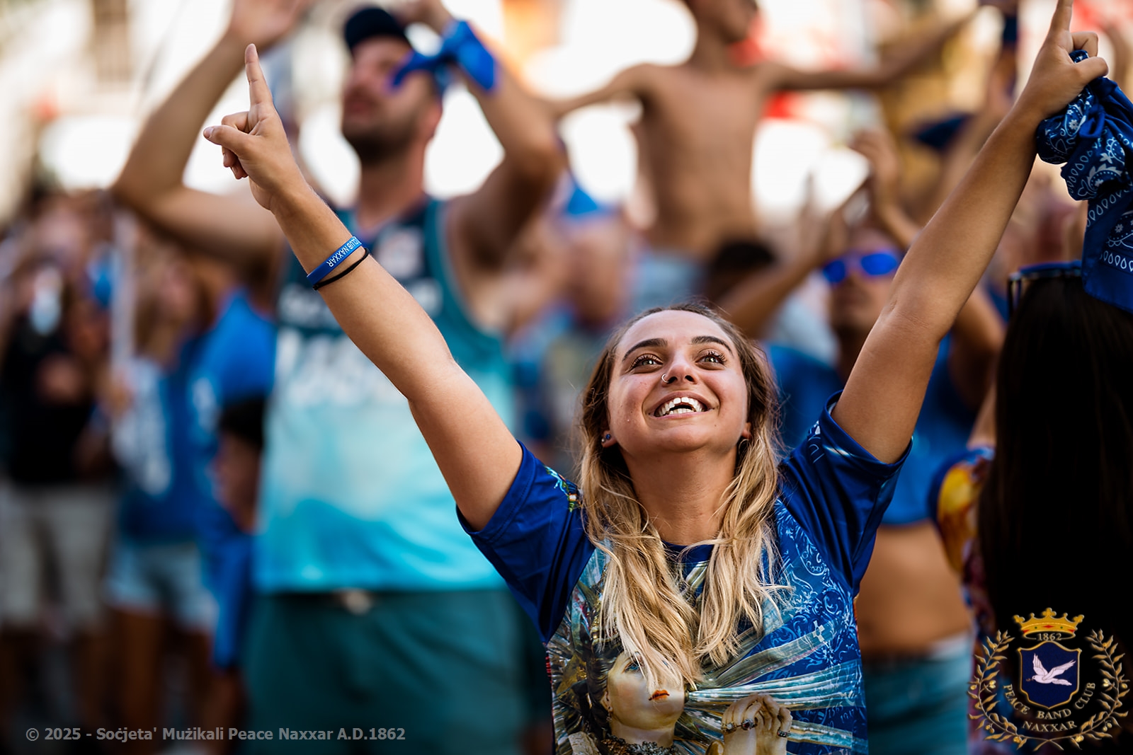 Nhar it-8 ta' Settembru filgħodu f'jum il-Festa ta' Marija Bambina ġewwa l-Pjazza Naxxarijja fost il-ferħ tal-partitarji tas-Soċjeta' Mużikali Peace.