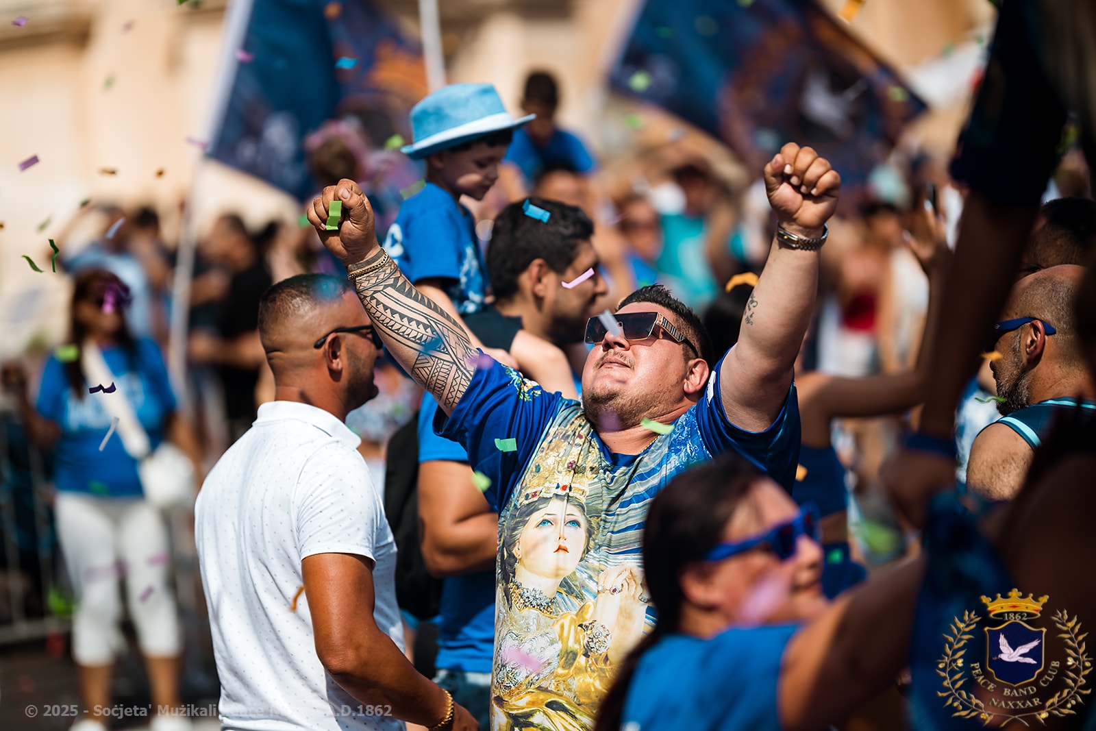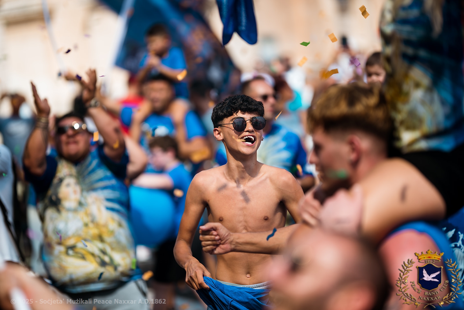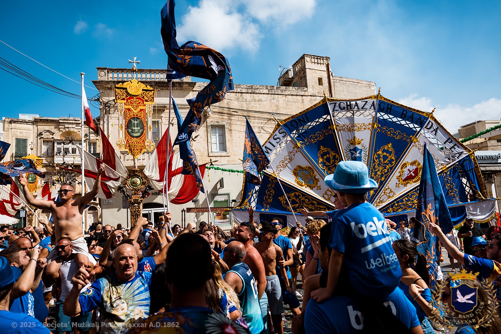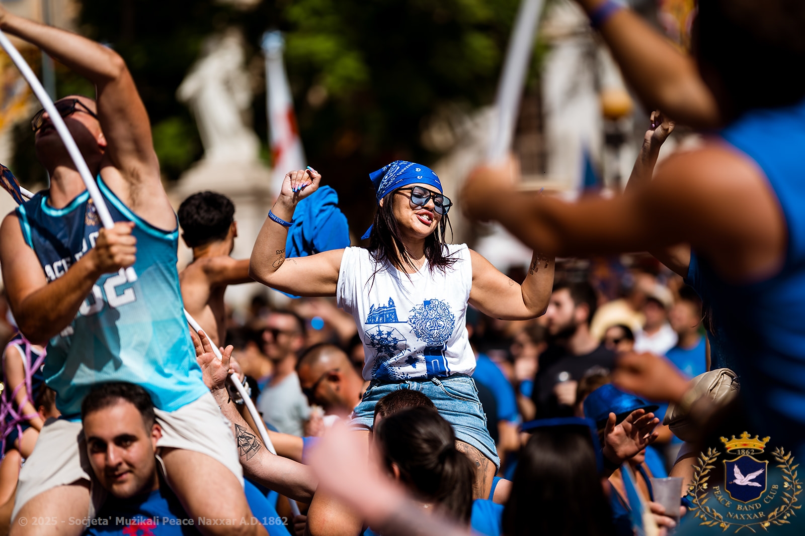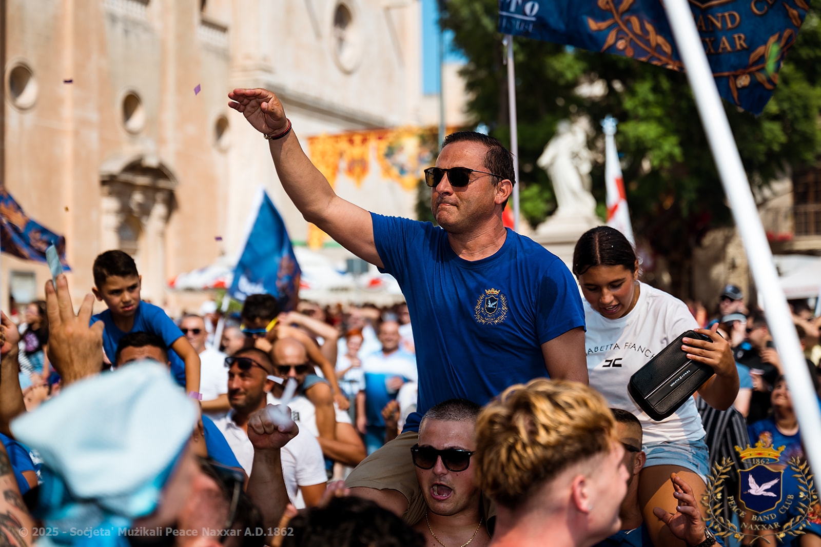 Nhar it-8 ta' Settembru filgħodu f'jum il-Festa ta' Marija Bambina ġewwa l-Pjazza Naxxarijja fost il-ferħ tal-partitarji tas-Soċjeta' Mużikali Peace.