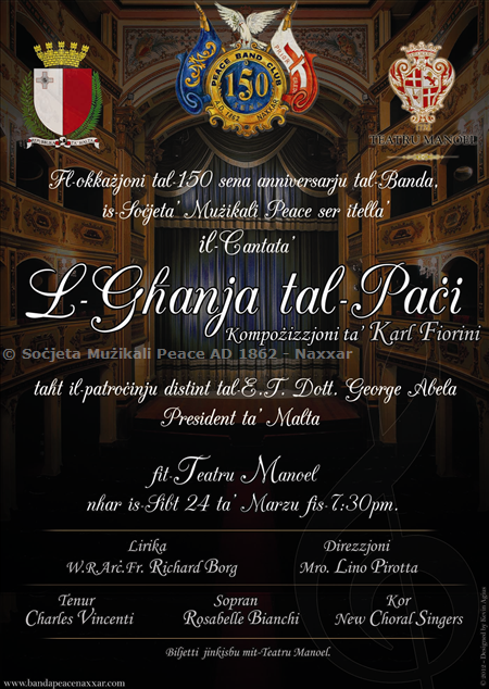 Nixtieq nirringrazja lill kull minn ta' sehmu biex din il-Kantata tkun success. Nirringrazja b'modd specjali lill Mro. Karl Fiorini, lill W.R.Arc Dun Richard Borg (Arcipriet tal-Furjana), u lis-surmast direttur tas-Socjeta' Mro. Lino Pirotta. Nirringrazja lill kull minn attenda ghall din is-serata wisq importanti ghalina fl-anniversarju tal-150 sena banda.