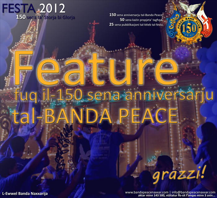 Ghafsu l-link sabiex taraw il-Feature tal- 150 anniversarju tal-Banda taghna li gie mahdum mill-Kummissjoni Zghazagh u ntwera ghall-ewwel darba fil-5 ta' Settembru 2012 fuq Big Screen fil-pjazza ewlenijja, quddiem il-kazin.