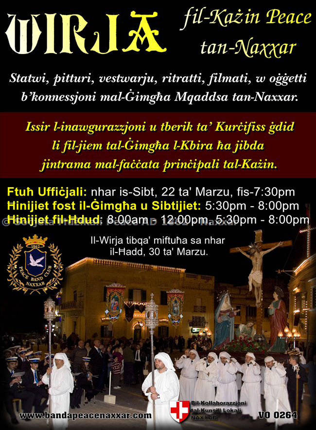 Il-ftuh ufficjali tal-wirja ser isir nhar is-Sibt 22 ta' Marzu fis-7:30pm