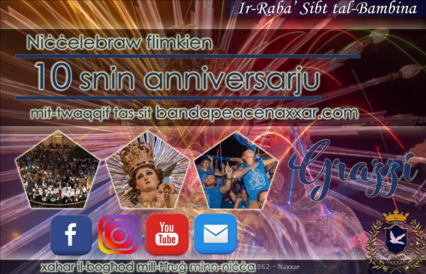 Illum is-Sibt 27 ta' Lulju jaħbat propju r-Raba' Sibt tal-Festa għażiża tagħna ta' Ommna Marija.Dan is-Sibt ser niddedikah għal 10 snin anniversarju mit-twaqqif ta' dan is-sit eletroniku u l-bidu tal-użu tal-midja soċjali f'din is-Soċjeta'.