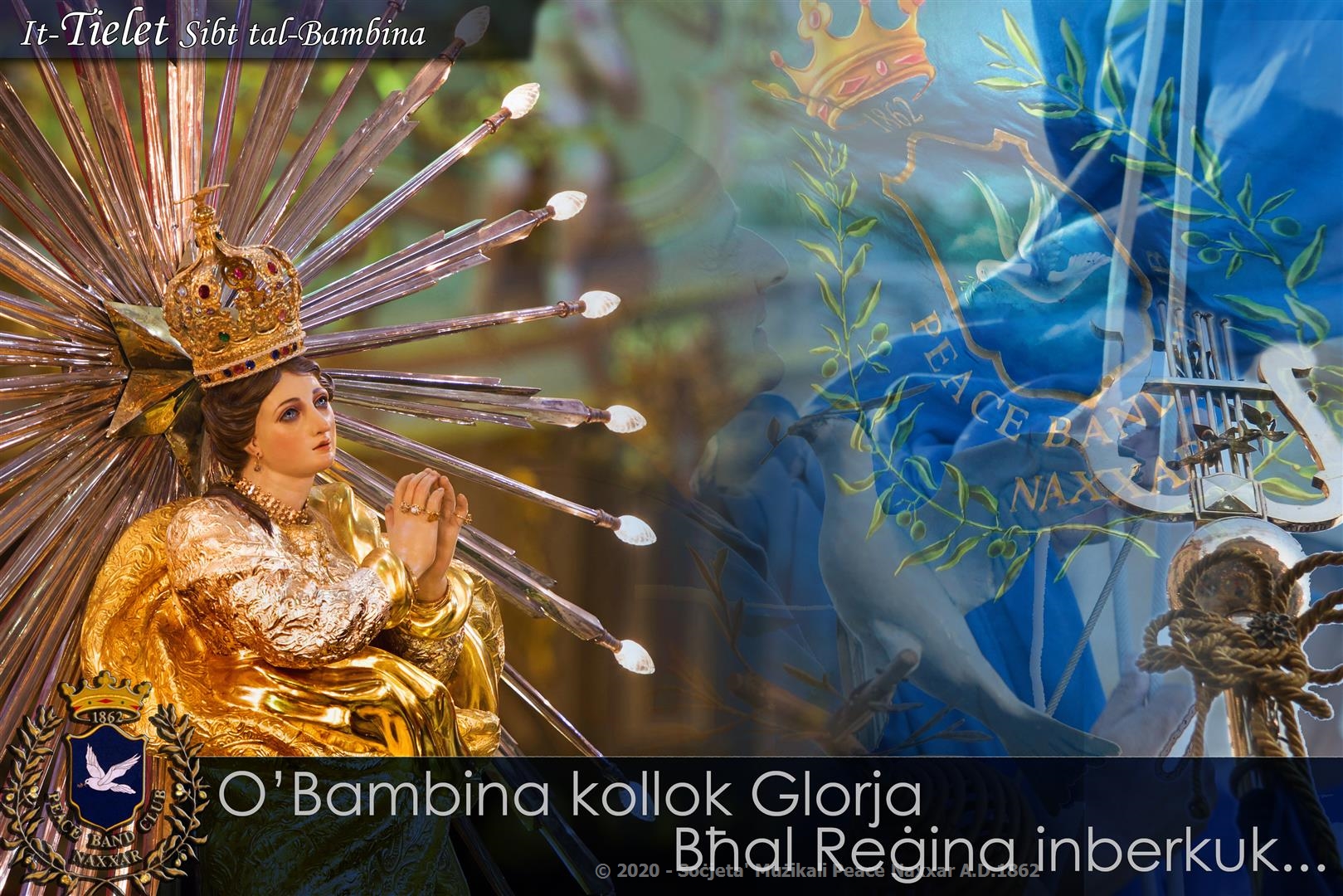 Illum is-Sibt 25 ta' Lulju qiegħdin llkoll flimkien niċċelebraw it-Tielet Sibt tal-Festa ta' Ommna Marija Bambina. Għalina n-Naxxarin, il-Festa hija ferm għażiża u għalhekk nixtiequ bħala Soċjeta' nħeġġu lil kulħadd b'mod speċjali lis-soċji, bandisti u ħbieb ta' din is-Soċjeta' sabiex itellgħu l-bnadar tagħhom u llejla jixgħelu l-globi u festuni blu. Il-kulur blu propju jfakkarna fit-twelid ta' Ommna Marija Bambina. F'dan is-Sibt erġajna nkwadrajna l-ġawrha tagħna n-Naxxarin. Ninsabu ferm kburin li bħala Banda Peace minn kemm ilna mwaqfin dejjem akkumpanjajna l-istatwa titulari ta' Ommna Marija Bambina matul il-purċissjoni f'jum il-Festa. Dan huwa unur u privileġġ kbir li l-Banda Peace minn dejjem kienet tħaddan u temmen fih u ninsabu ferm aktar onorati li l-Bambina ma ċħadniha qatt!